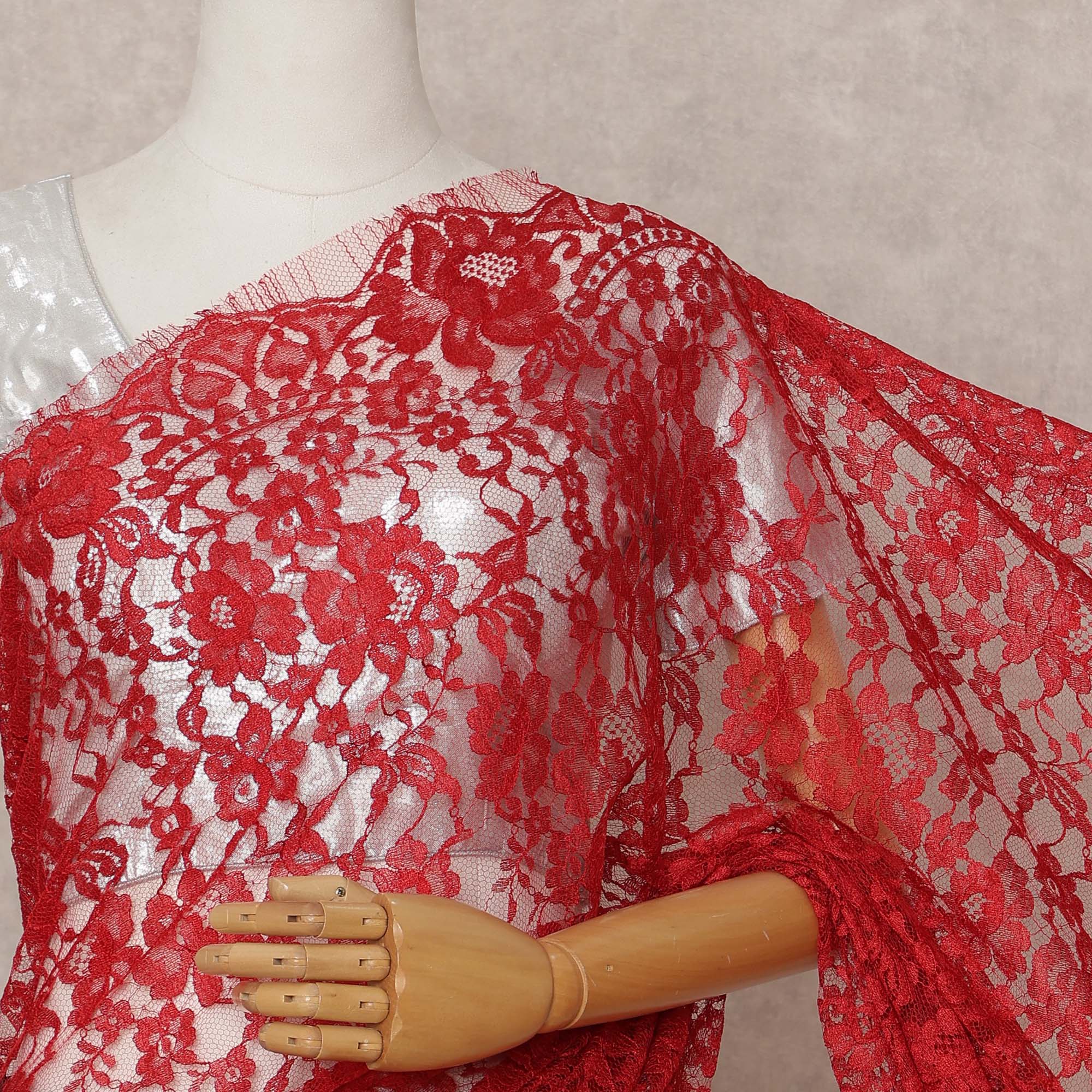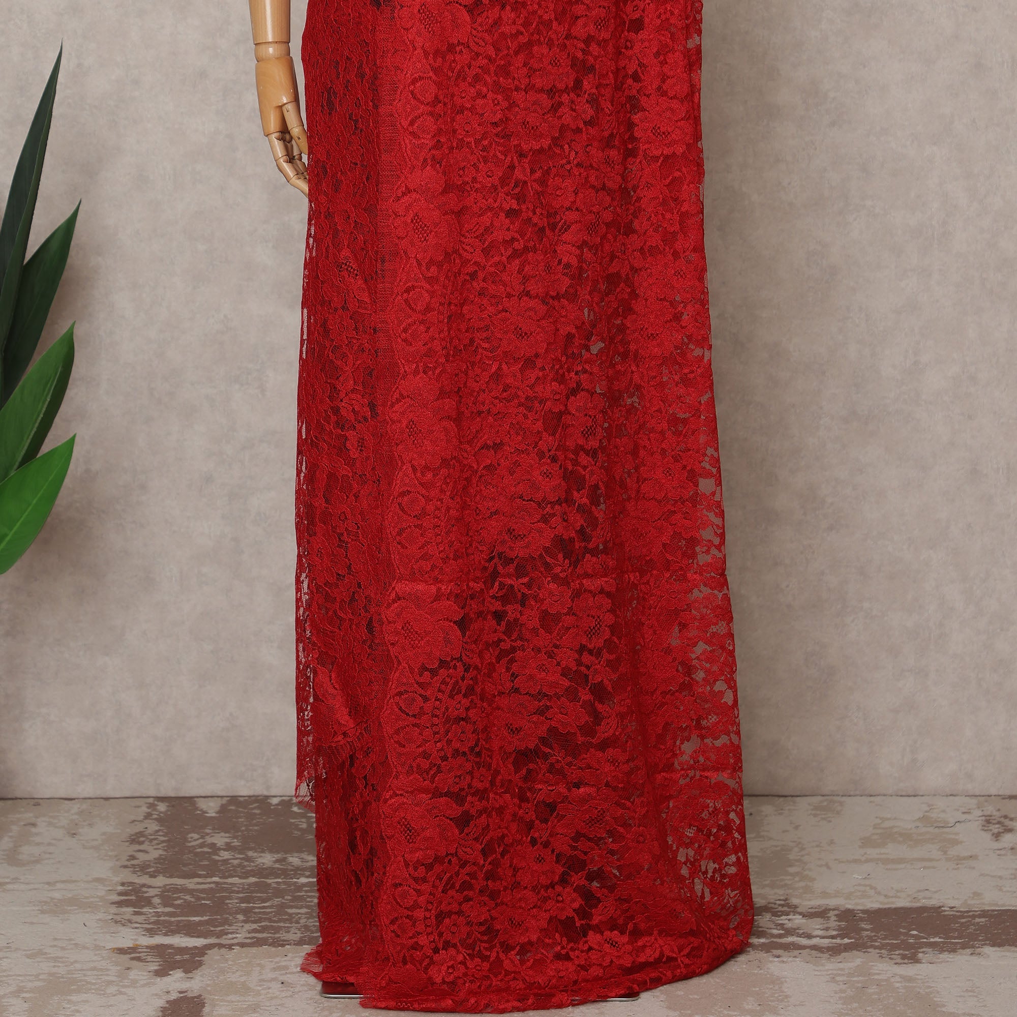 Crimson Red Premium French 2-Tone Chantilly Lace Saree – 5.5 Meters Length, 110 Cms Width, Crafted in France-D26091