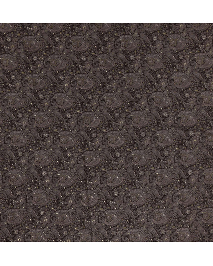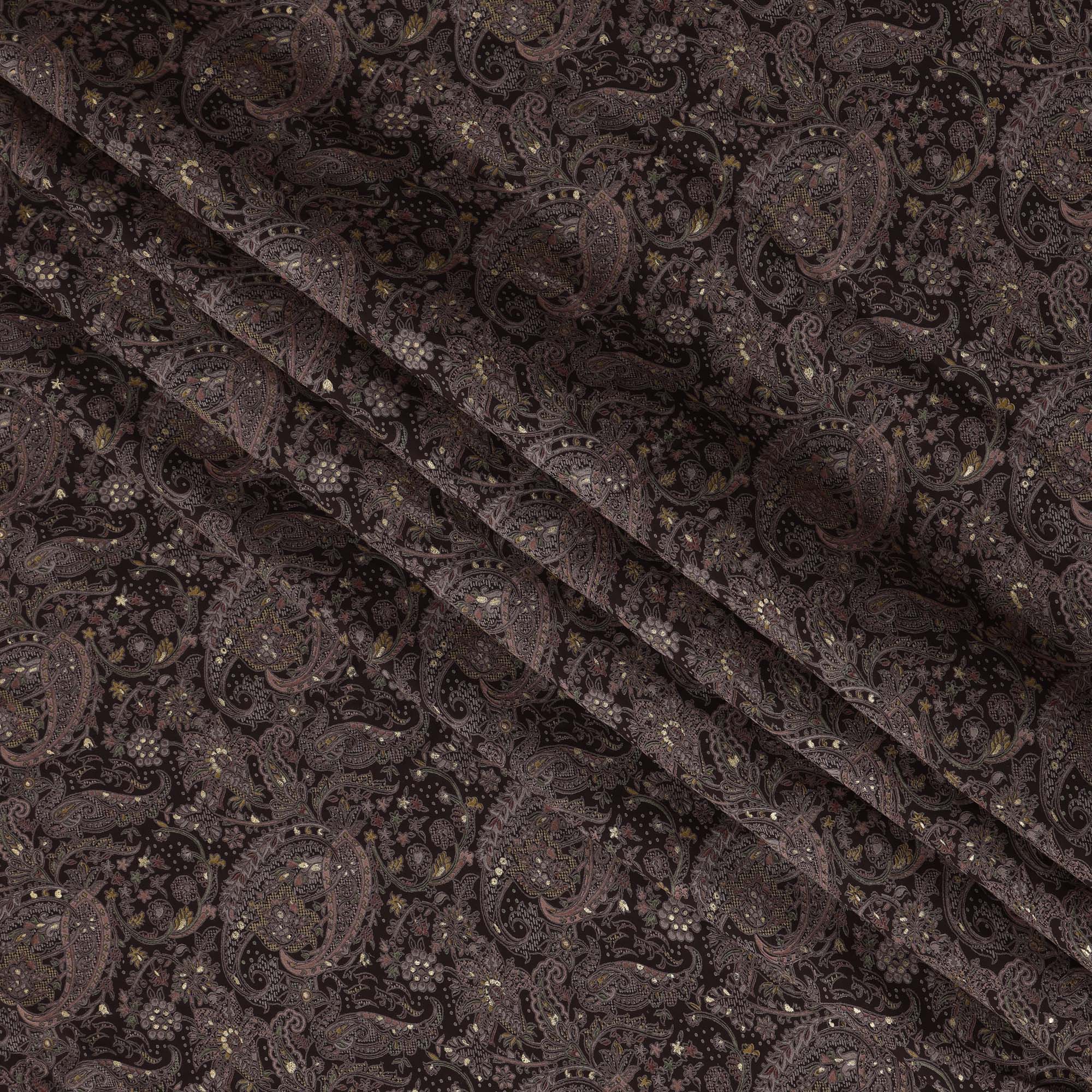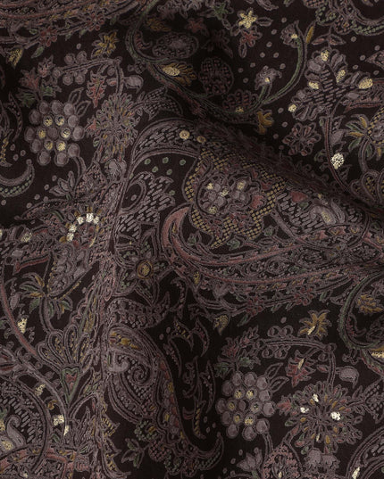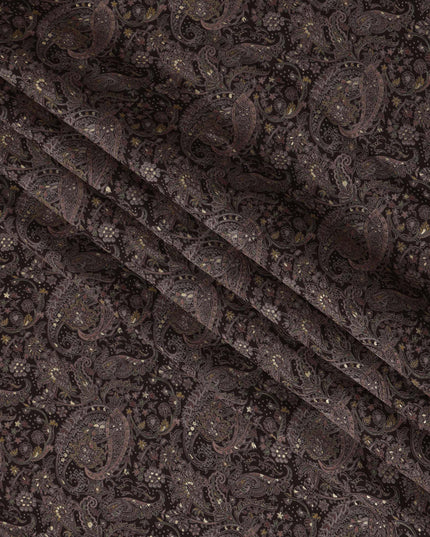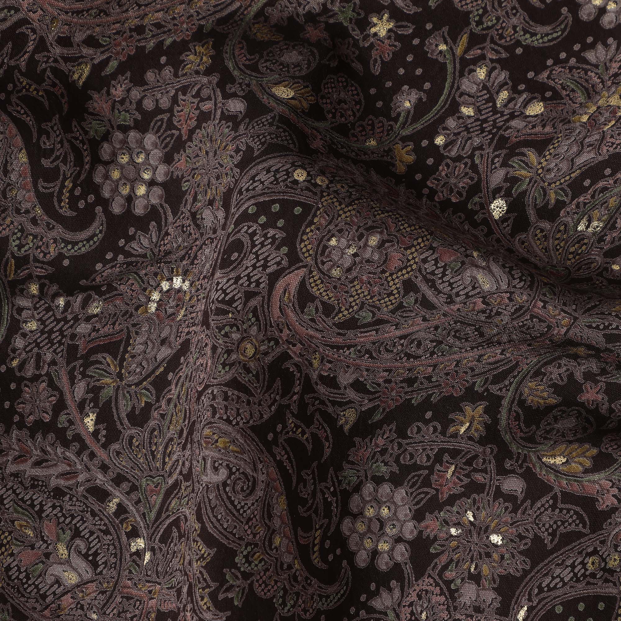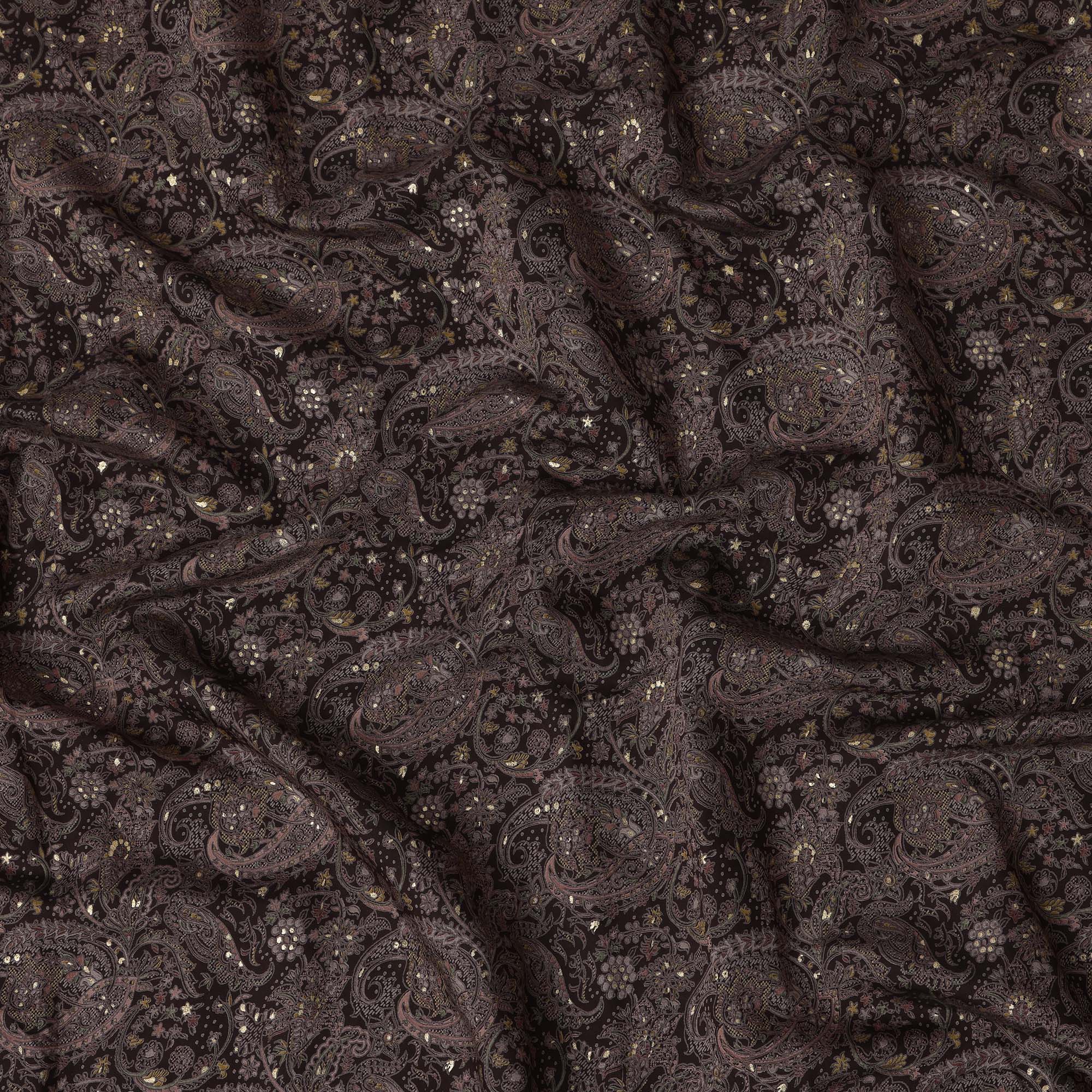 قماش فيسكوز مخلوط بنقشة بيزلي وزهور بلون بني غامق مع لمسات معدنية، عرض 110 سم، صنع في الهند - D22801