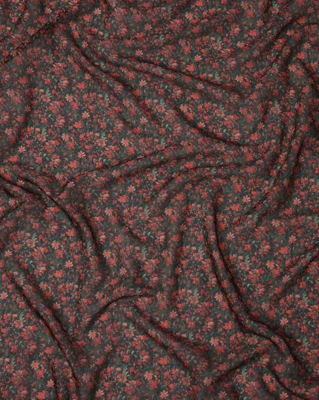 قماش مخملي مخلوط من الحرير الماروني الداكن مع تطريز بنفس اللون، قطيع أسود به أعمال حجرية بتصميم فاخر-D15093