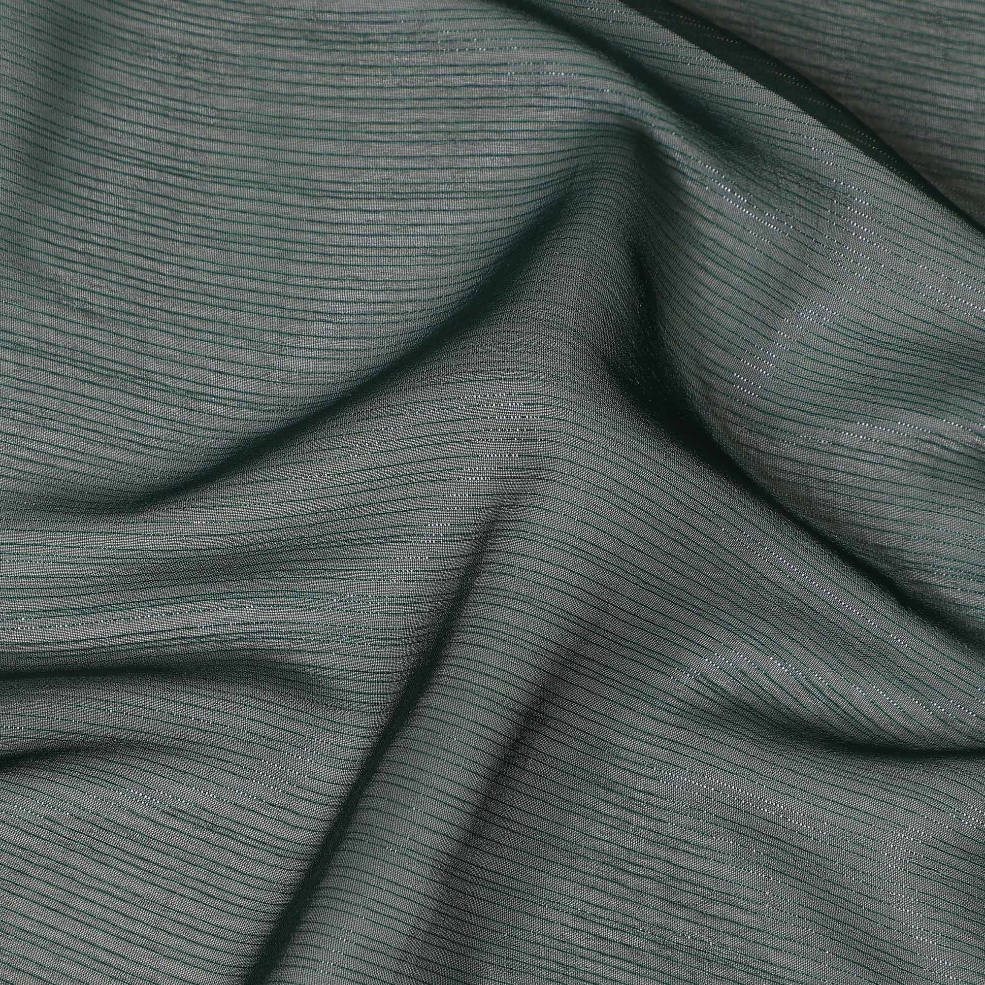 This dark olive green synthetic chiffon fabric features a rich earthy tone enhanced with a subtle self-textured linear sheen that adds depth and refined elegance. The deep olive green shade offers a sophisticated and contemporary appeal, making it ideal for evening wear, festive outfits, sarees, dupattas, gowns, and stylish overlays. Lightweight and airy, this chiffon drapes effortlessly to create graceful flowing silhouettes with a soft and fluid finish. Its sheer texture gives a delicate look while remaining breathable and comfortable for extended wear. With a width of 110 cms, it provides generous material for creative tailoring and layered designs. Made in India, this fabric combines smooth texture, durability, and easy maintenance for versatile fashion applications.