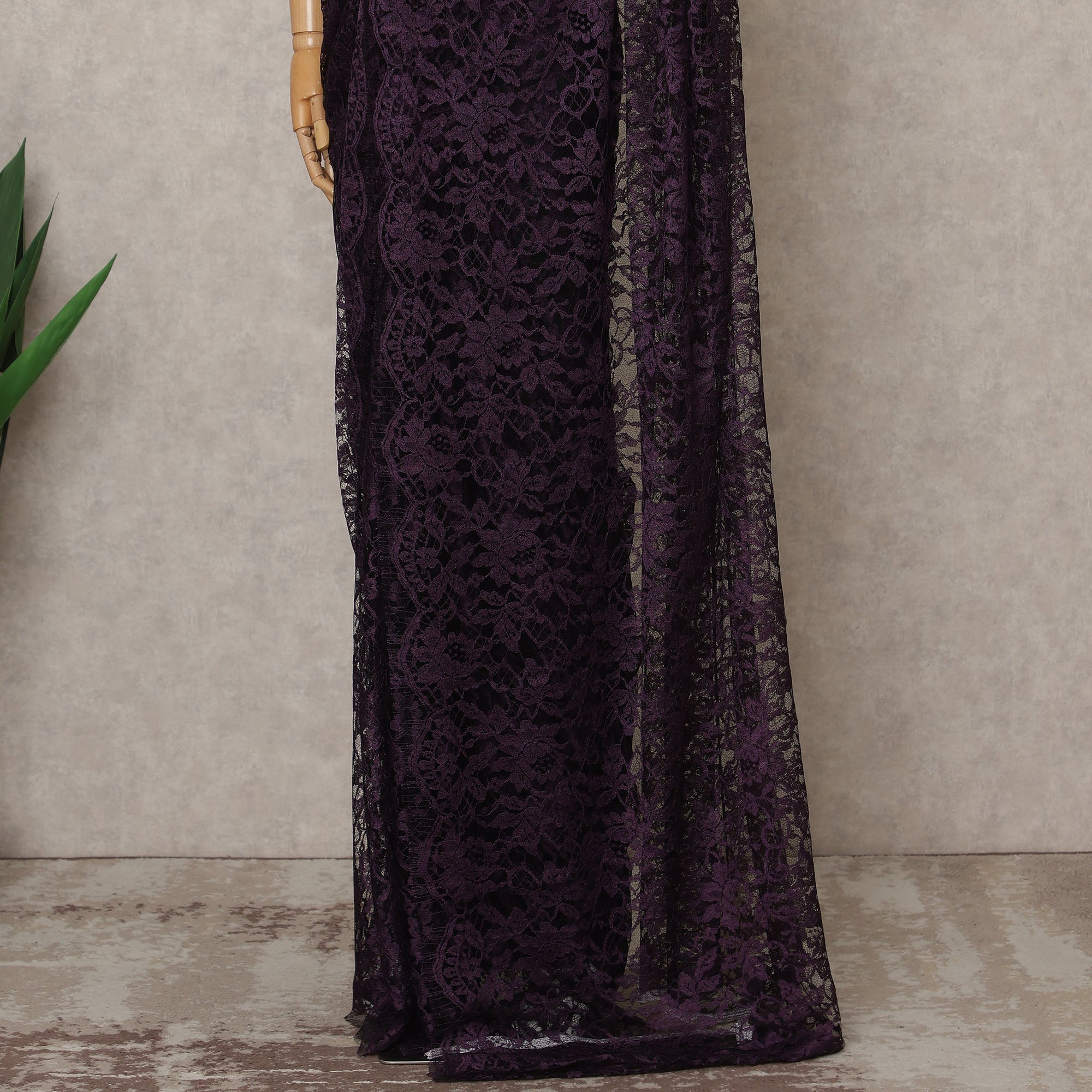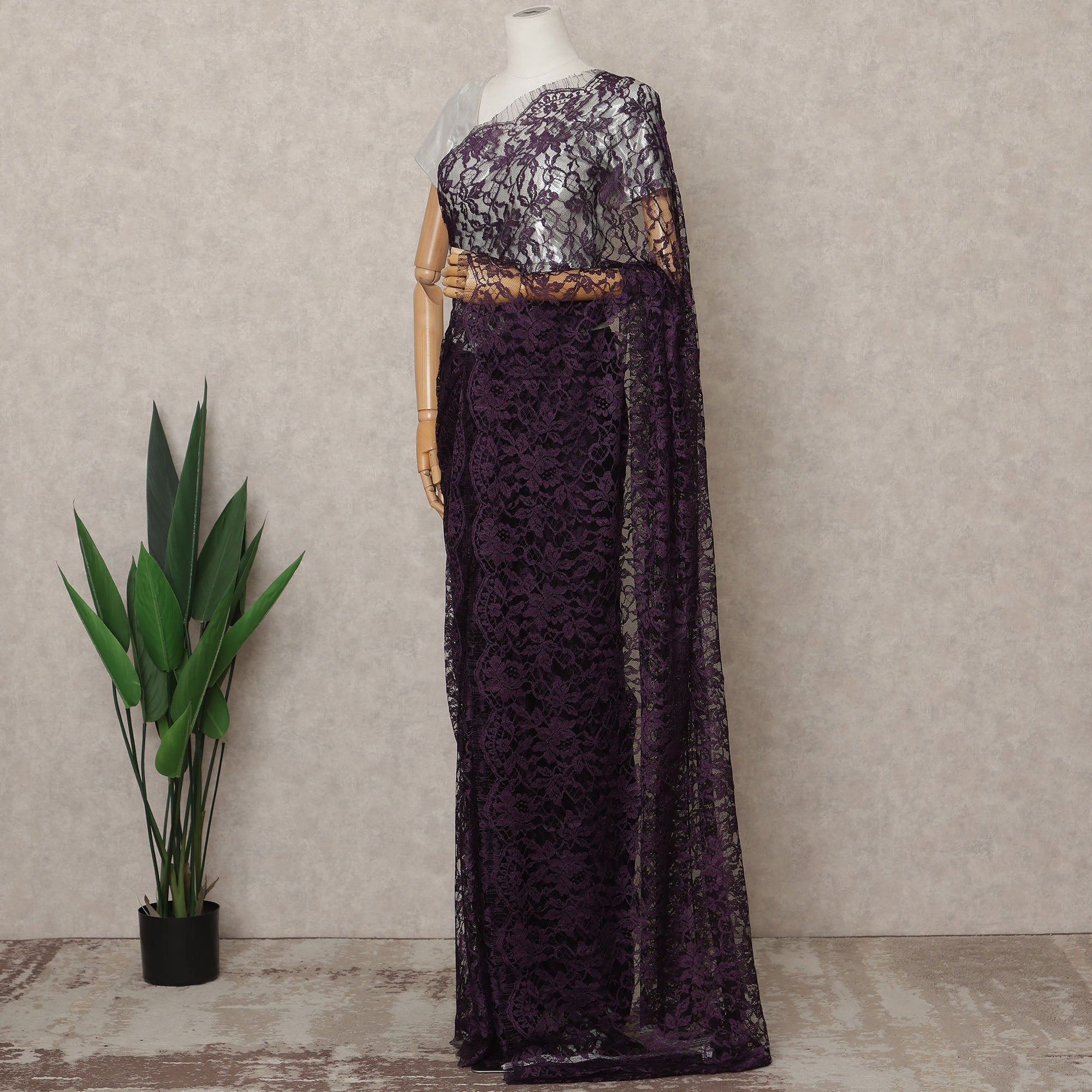 Dark Purple Premium French 2-Tone Chantilly Lace Saree Fabric – 5.5 Meters Length, 110 Cms Width, Imported from France-D25705