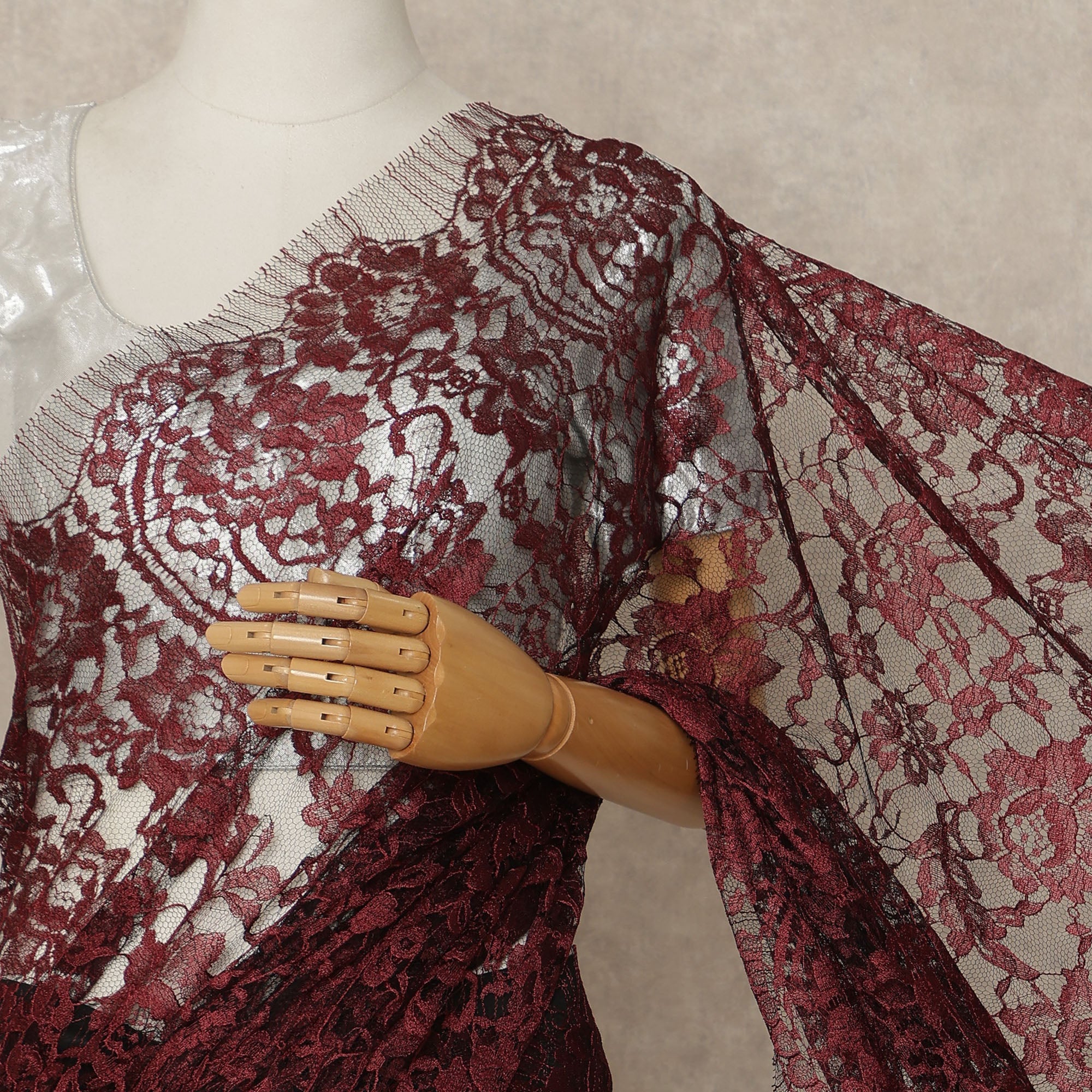 Premium French Chantilly lace crafted in a deep maroon shade for a regal and elegant look