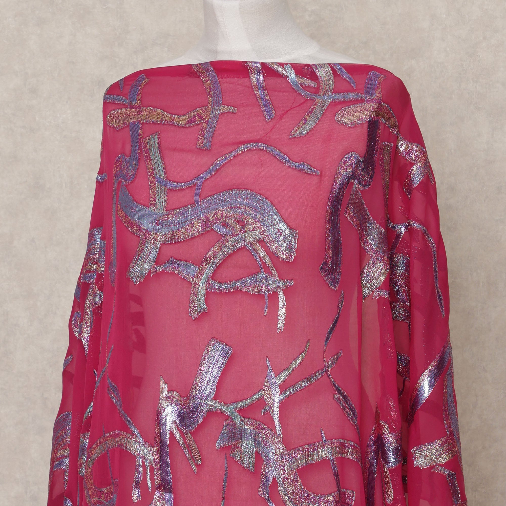 Deep maroon silk chiffon dirac fabric with soft, elegant drape