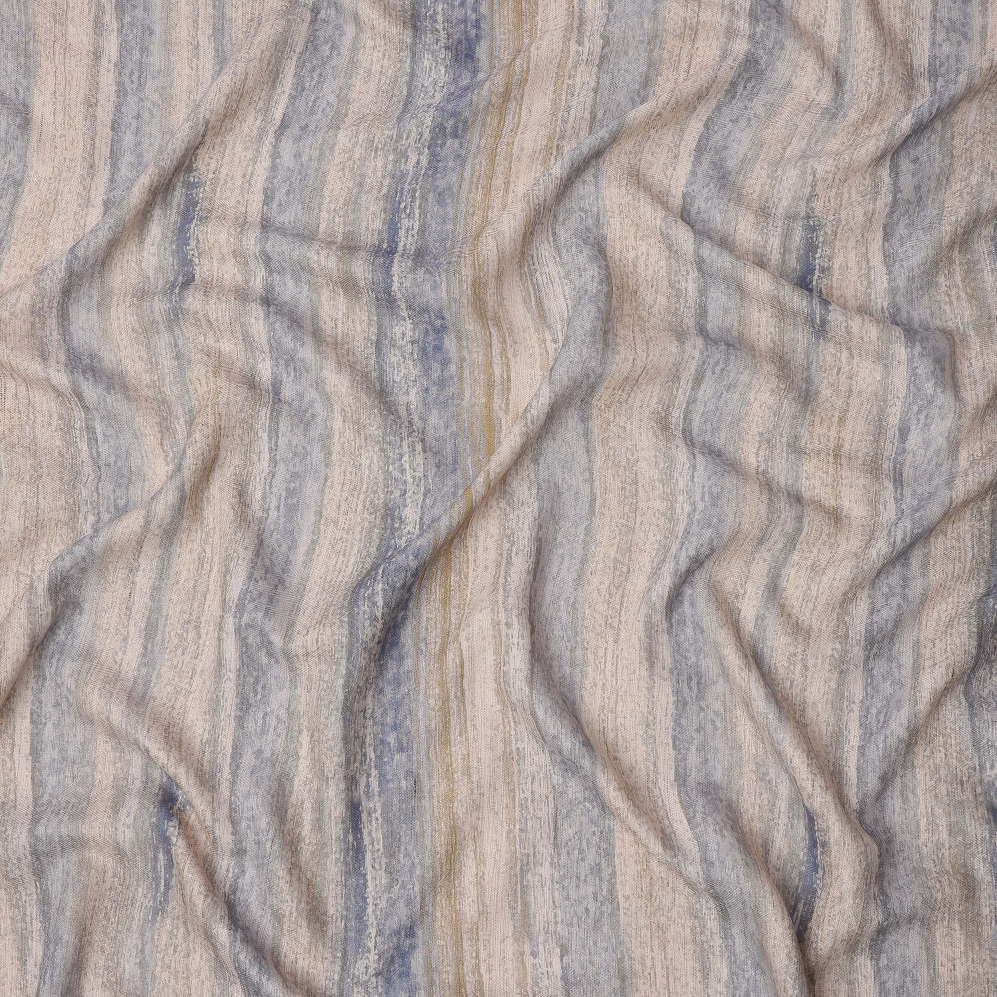 قماش فوال قطني بيج باهت بطباعة رقمية بخطوط مائية، 110 سم، الهند - D23859