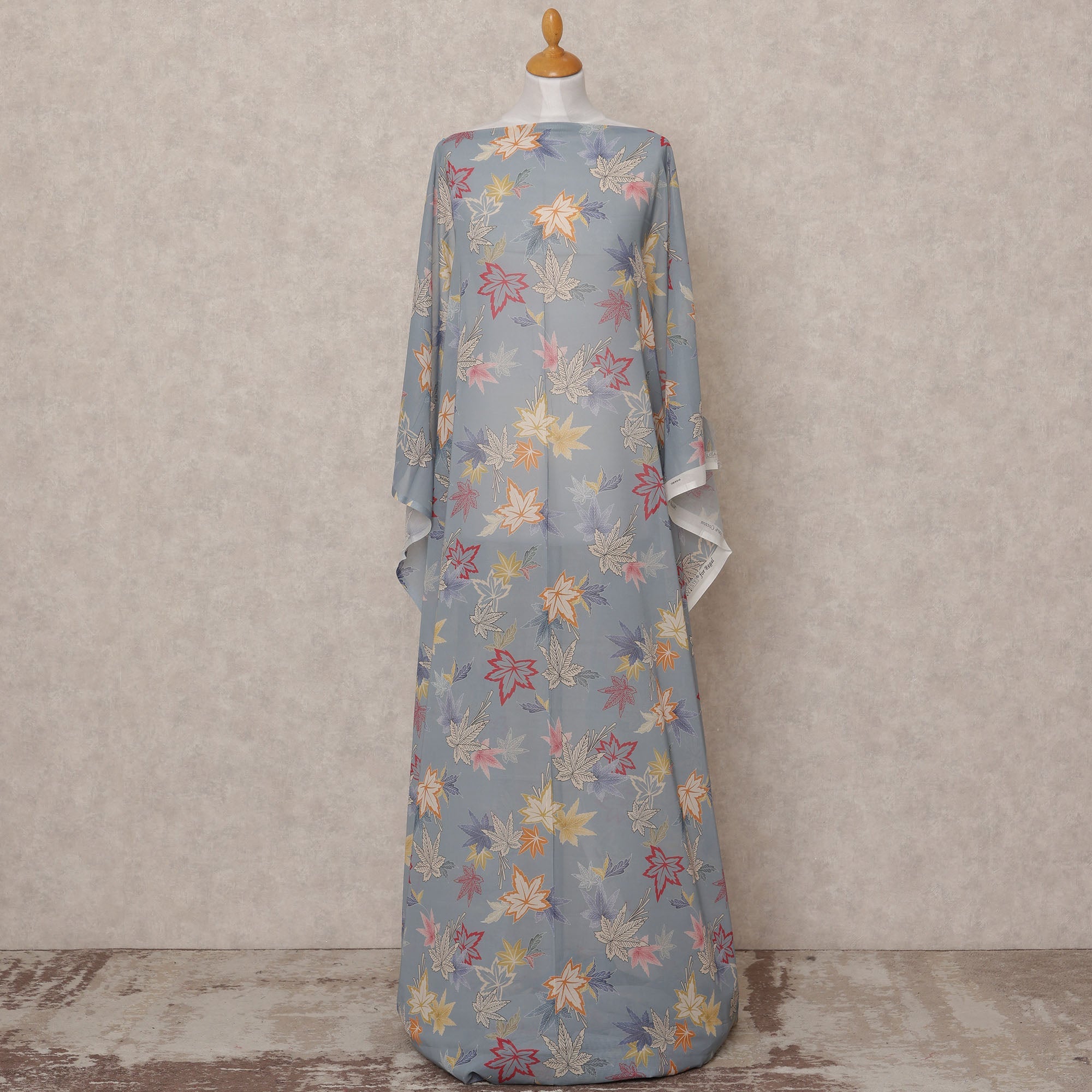 قماش ديراك صومالي قطني فوال أزرق باهت، مزين بنقشة أوراق القيقب، يتميز بقاعدة زرقاء باهتة هادئة، مزينة بزخارف أوراق القيقب... اقرأ أكثر اقرأ أكثر