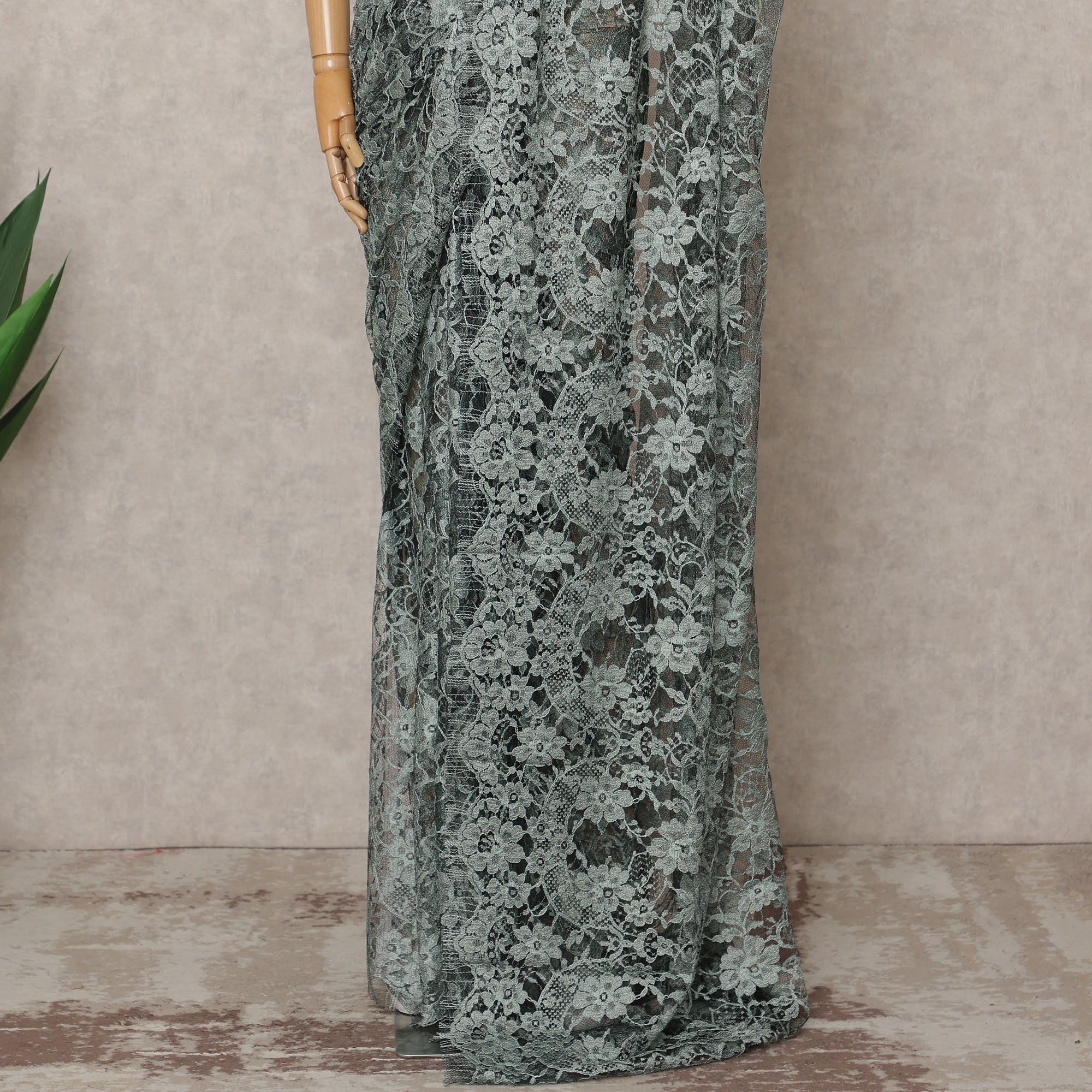 Dusty Green Premium French Chantilly Lace Saree Fabric 5.5 Mtrs with 110 Cms Width – Imported from France-D25647