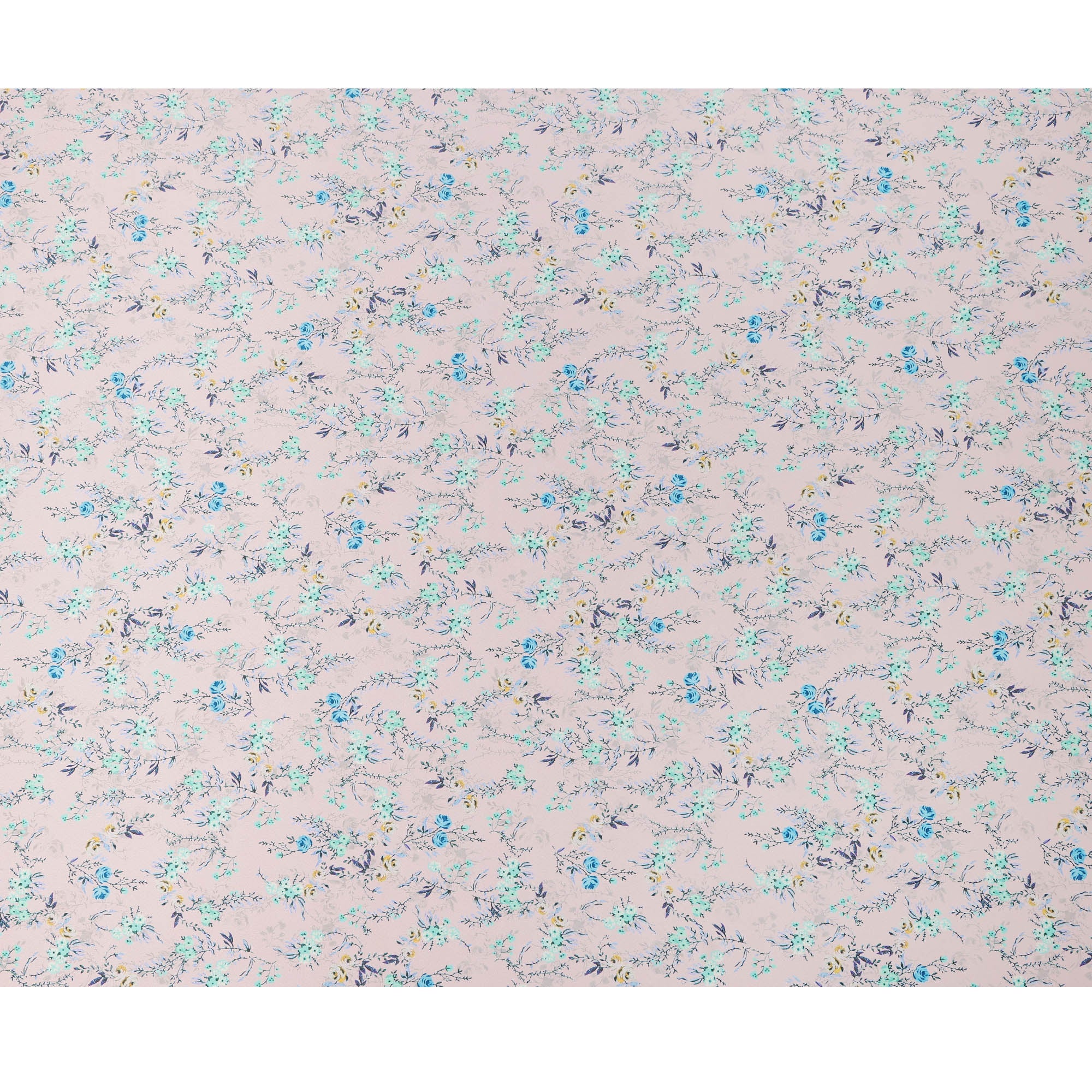قاعدة باللون الوردي الباهت مع طبعة زهور صغيرة رقيقة بألوان الأزرق والأصفر والأزرق المائي