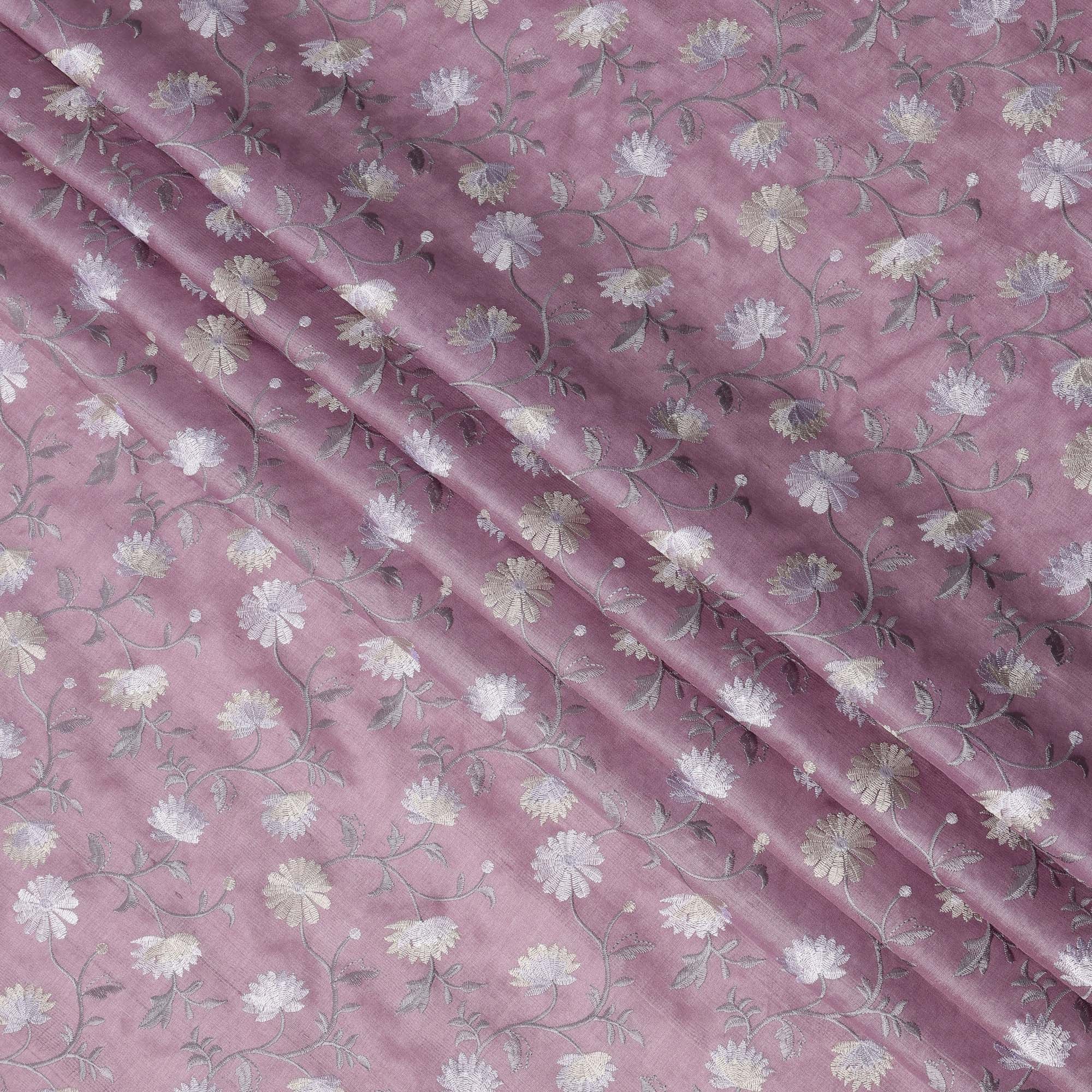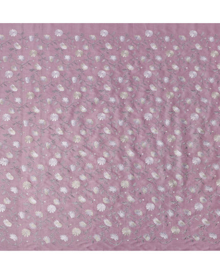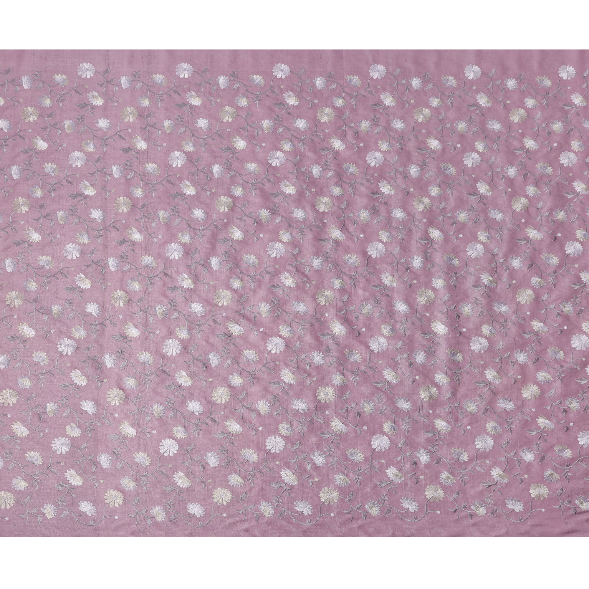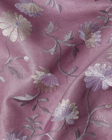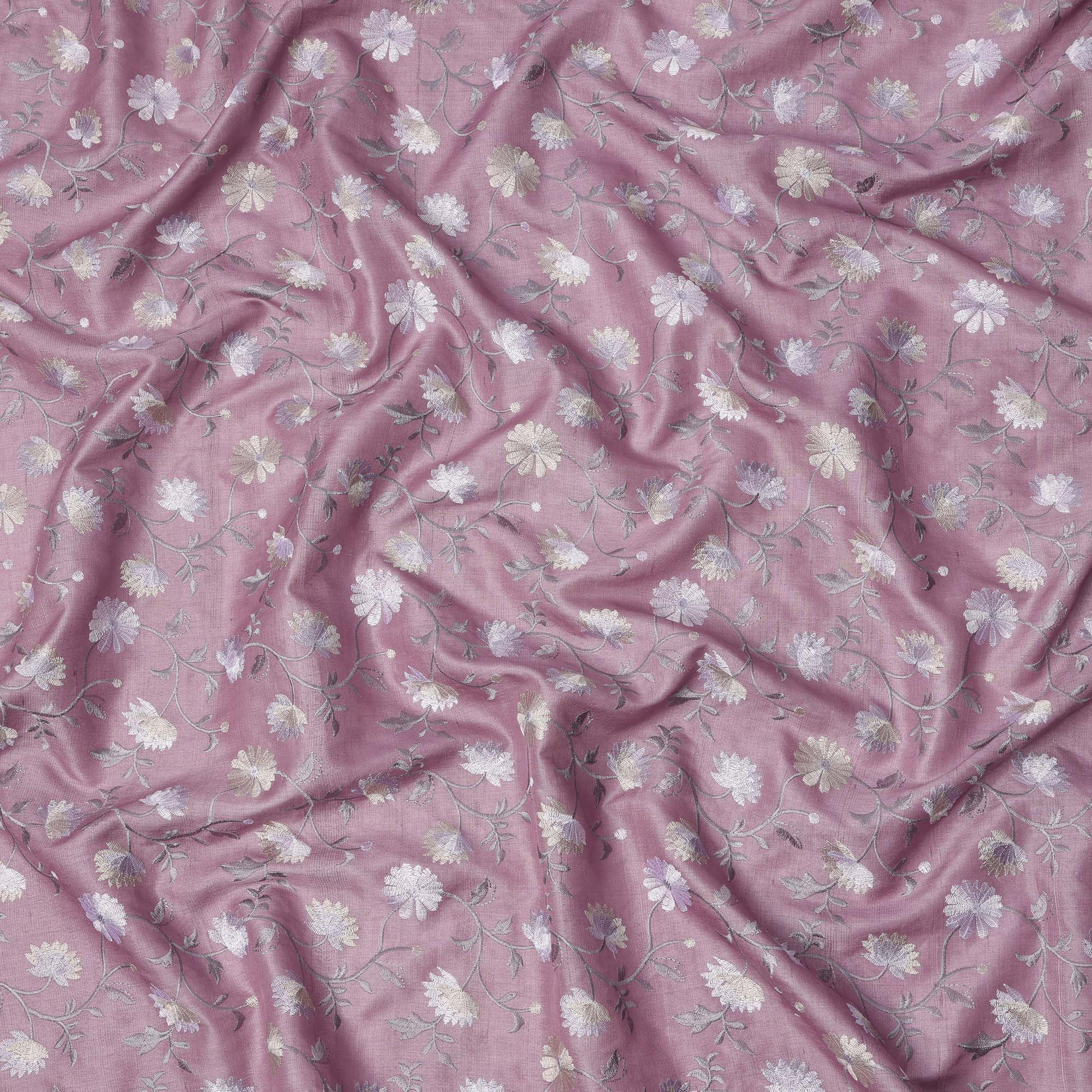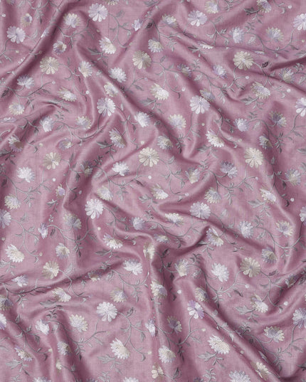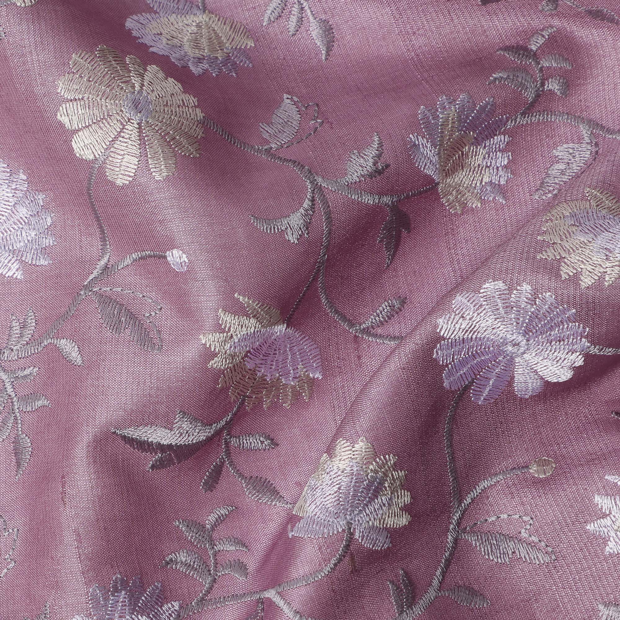 قماش حرير توسار مطرز بنقشة زهور وردية باهتة، عرض 110 سم، منشأ الهند - D23374