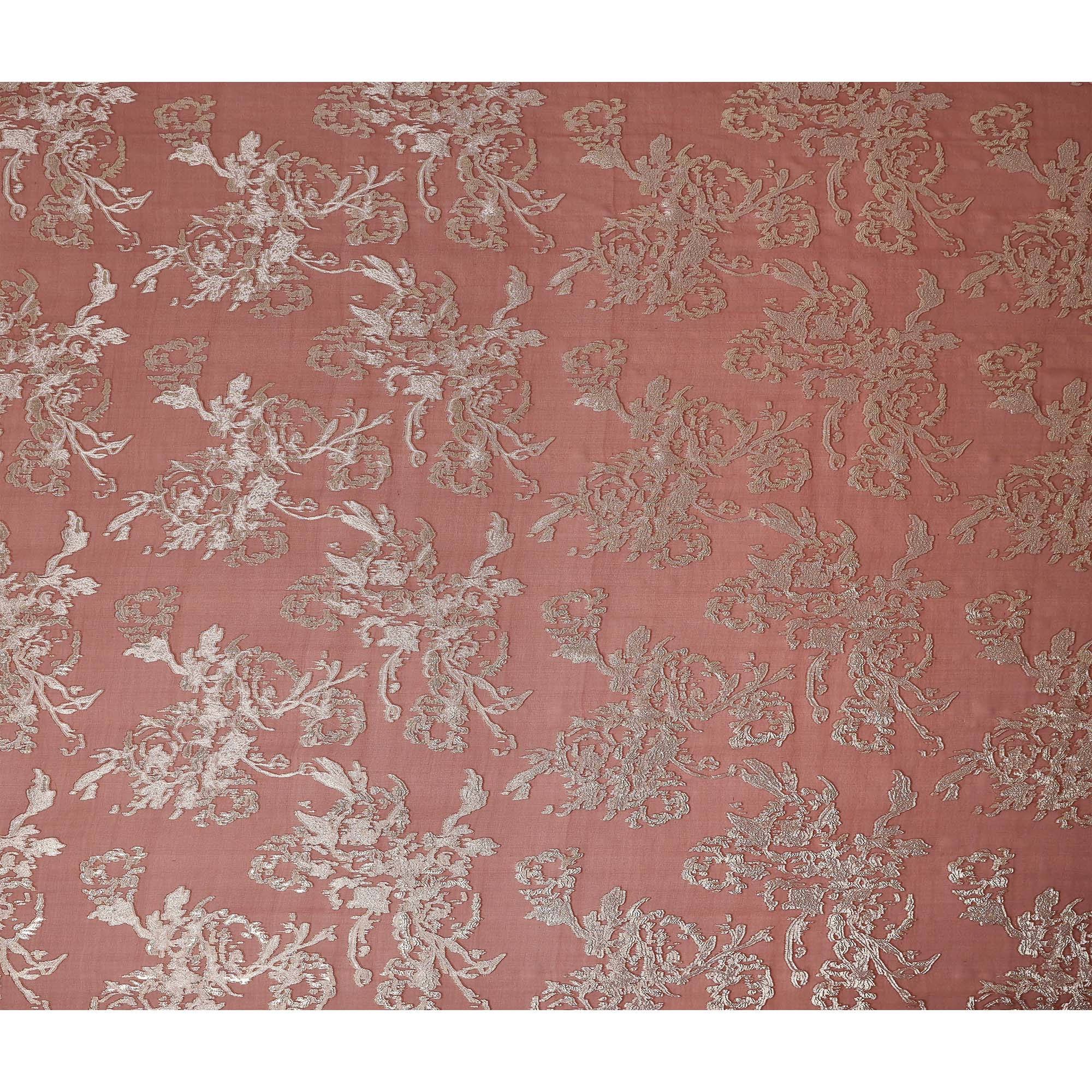 Dusty Rose Pink Silver Floral Metallic Lurex Silk Chiffon Fabric 110 Cms Wide, Made in South Korea-D27539