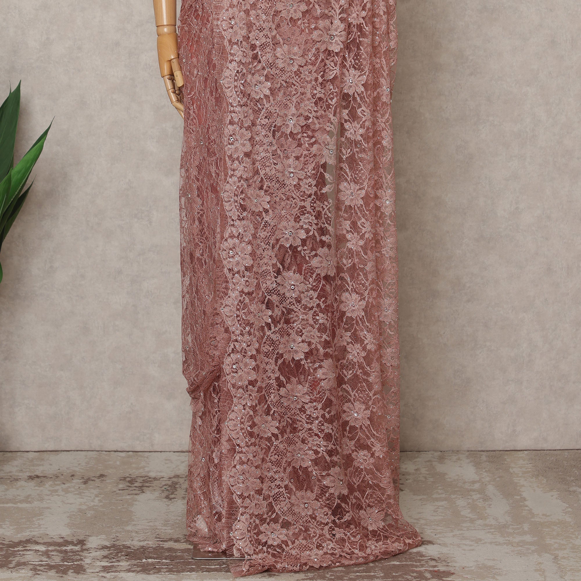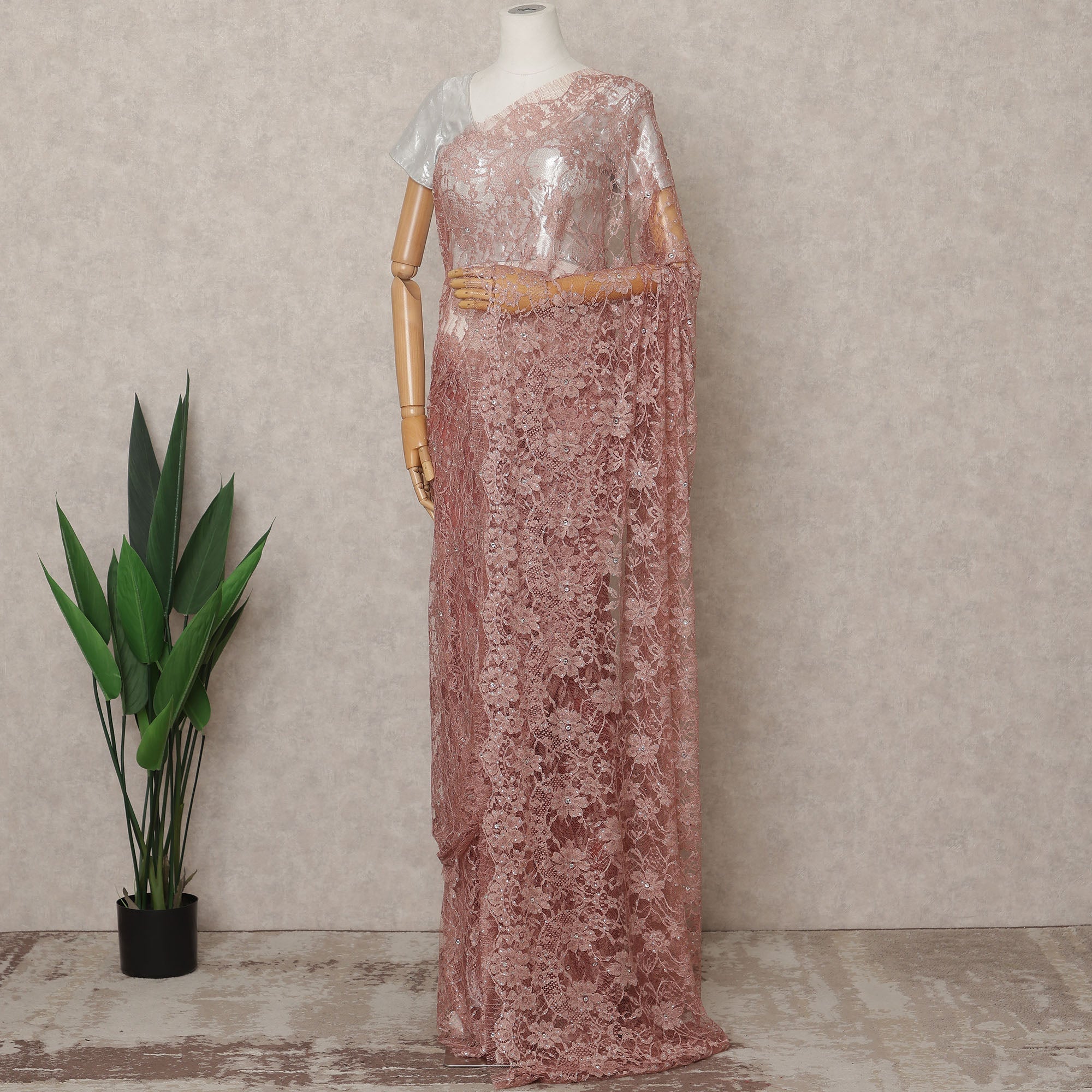 Dusty Rose Premium French 2Tone Chantilly Lace Saree Fabric with Stone Work – 5.5 Meters Length, 110 Cms Width, Imported from France-D25726