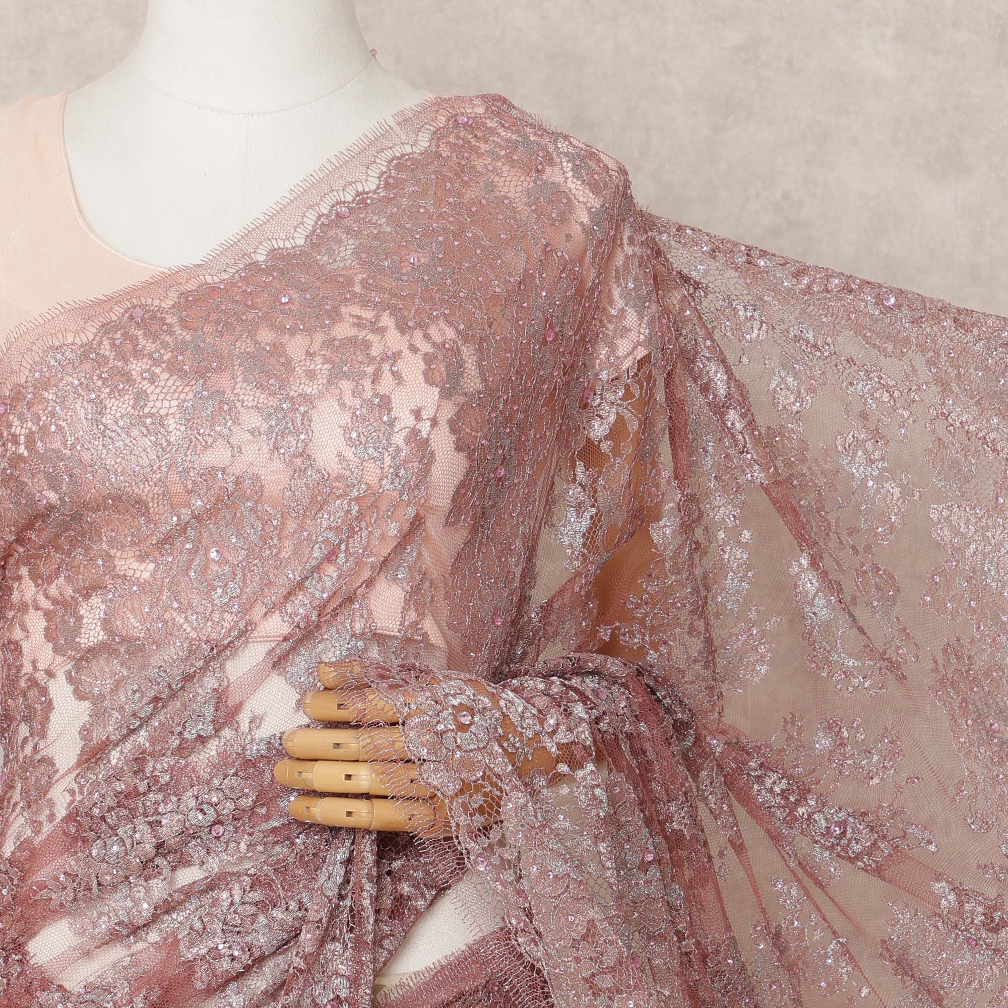 مصنوع من دانتيل شانتيلي الفاخر من فرنسا بلون وردي باهت أنيق