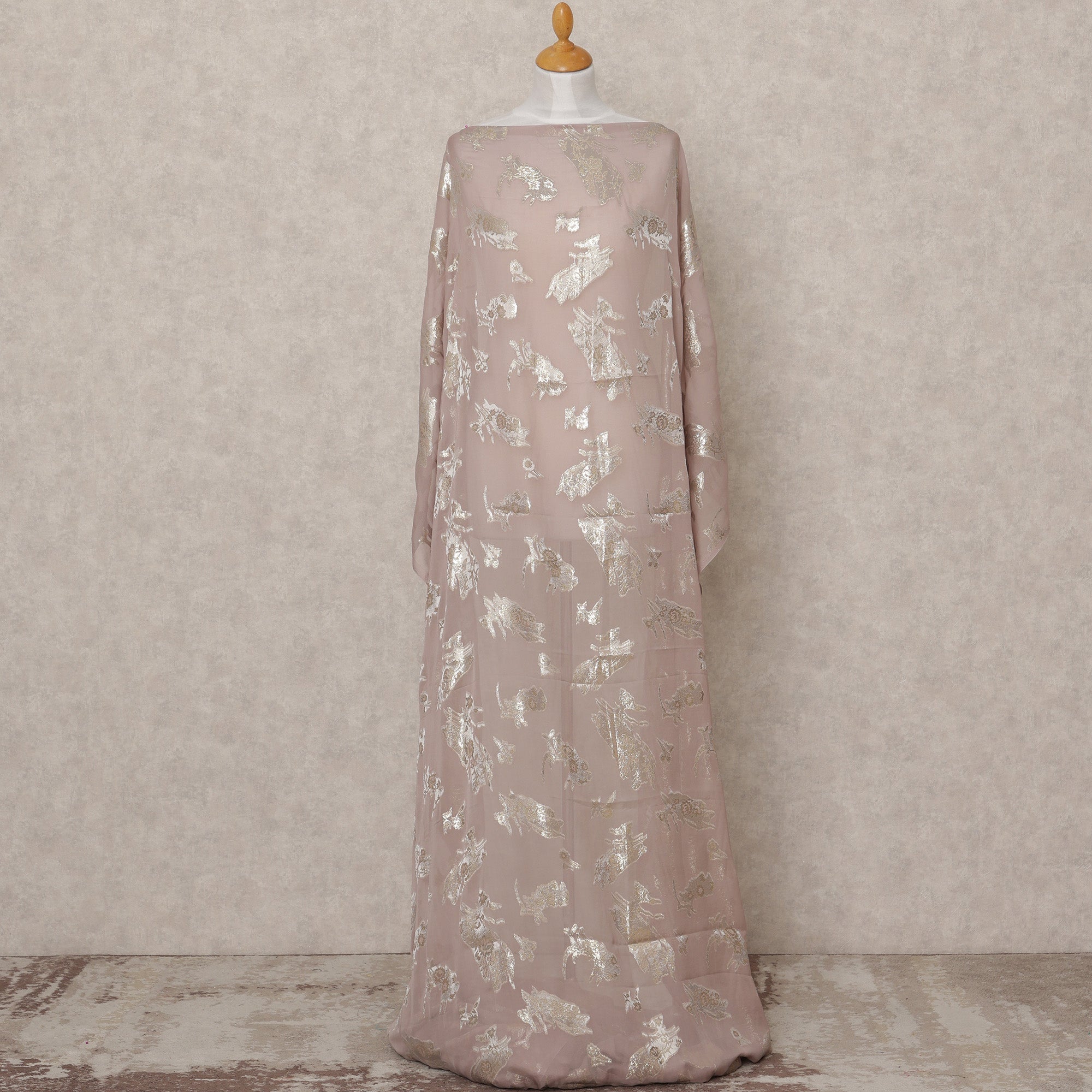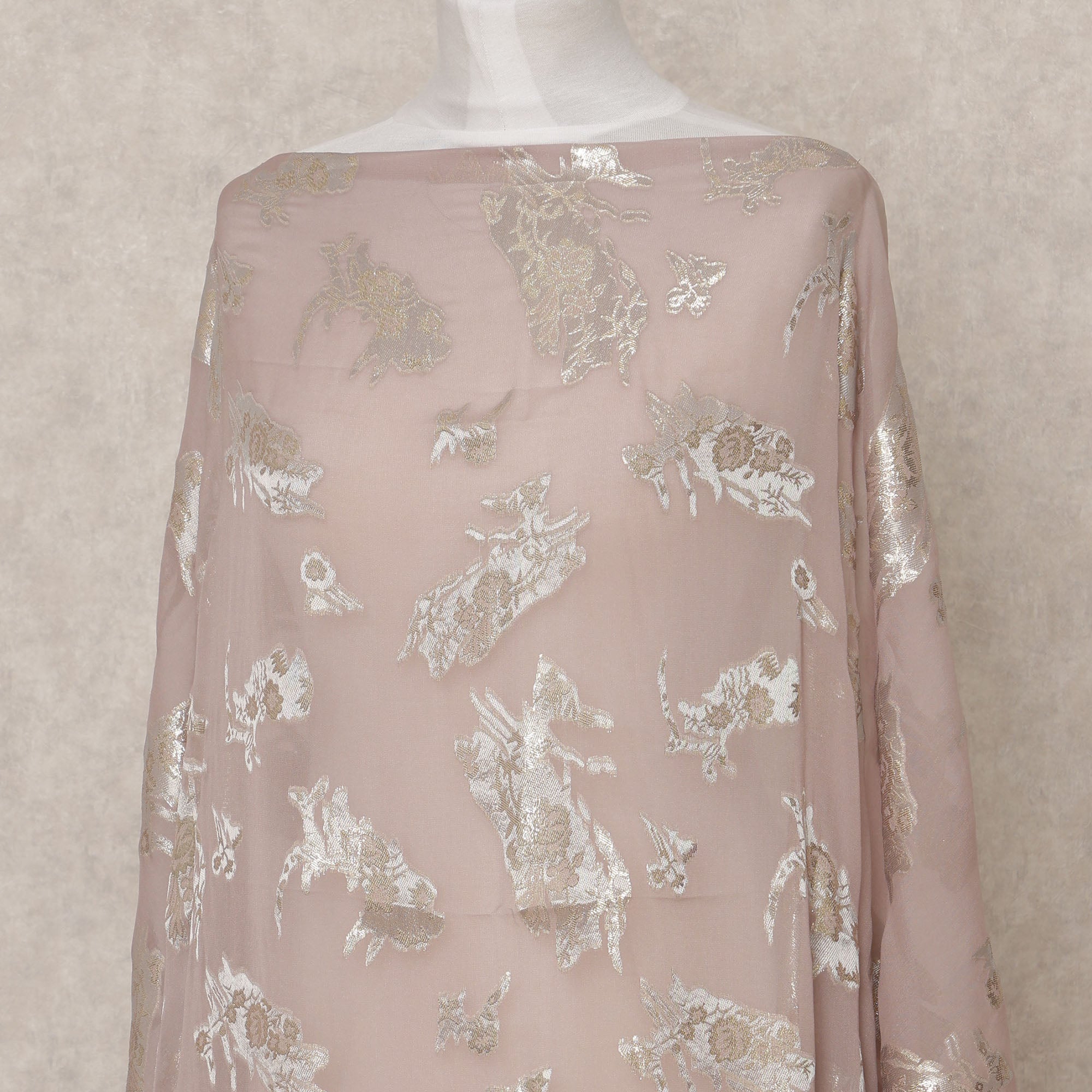 قماش ديراك شيفون حريري صومالي بلون داستي روز مع لوركس فضي معدني - 3.5 متر، عرض 140 سم، صنع في كوريا الجنوبية - D24552