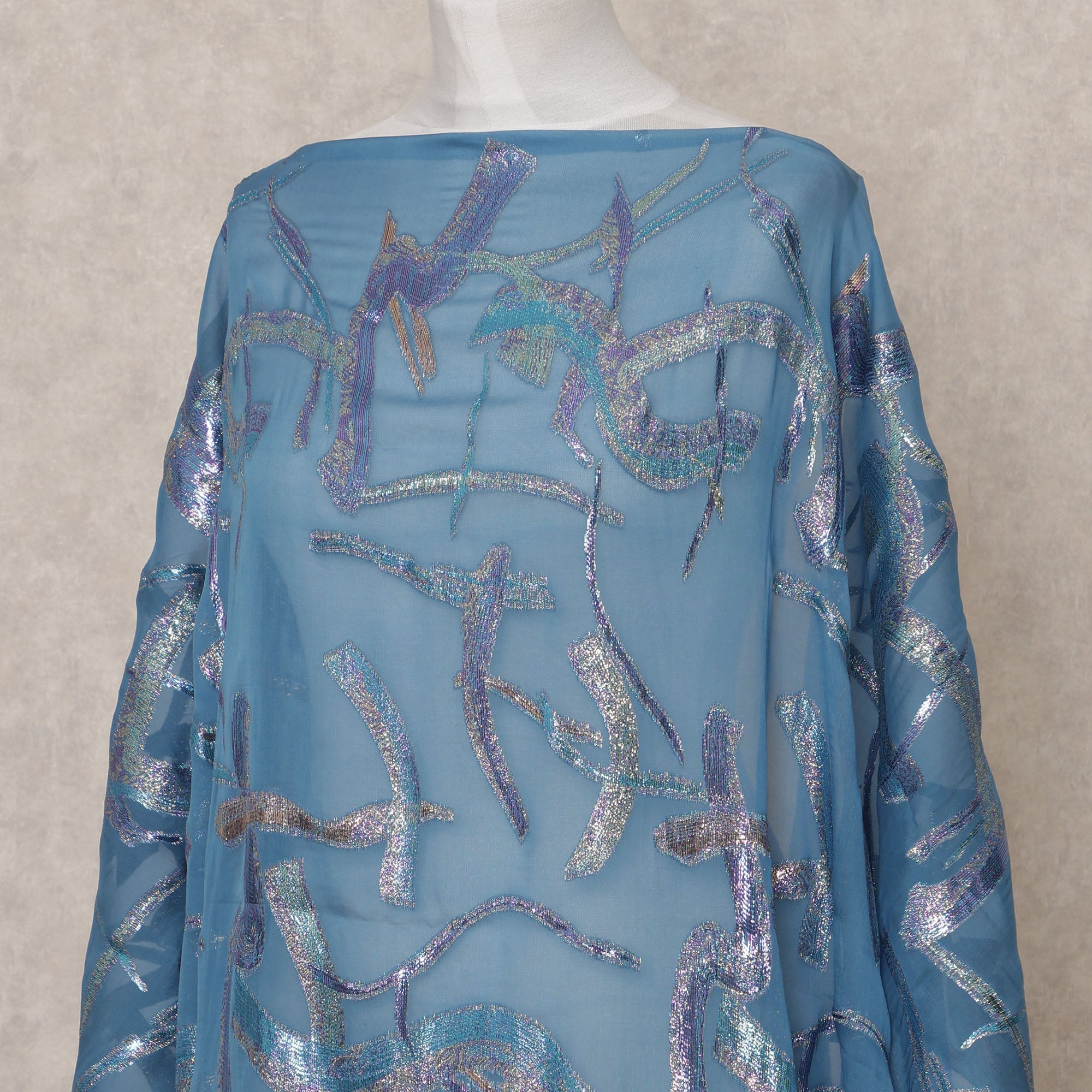 ارتقِ بمجموعتك العرقية مع قماش ديراك الحريري الصومالي الشيفون باللون الأزرق المخضر الباهت، والمُزين بزخارف لوريكس معدنية تجريدية عصرية لامعة... اقرأ أكثر اقرأ أكثر
