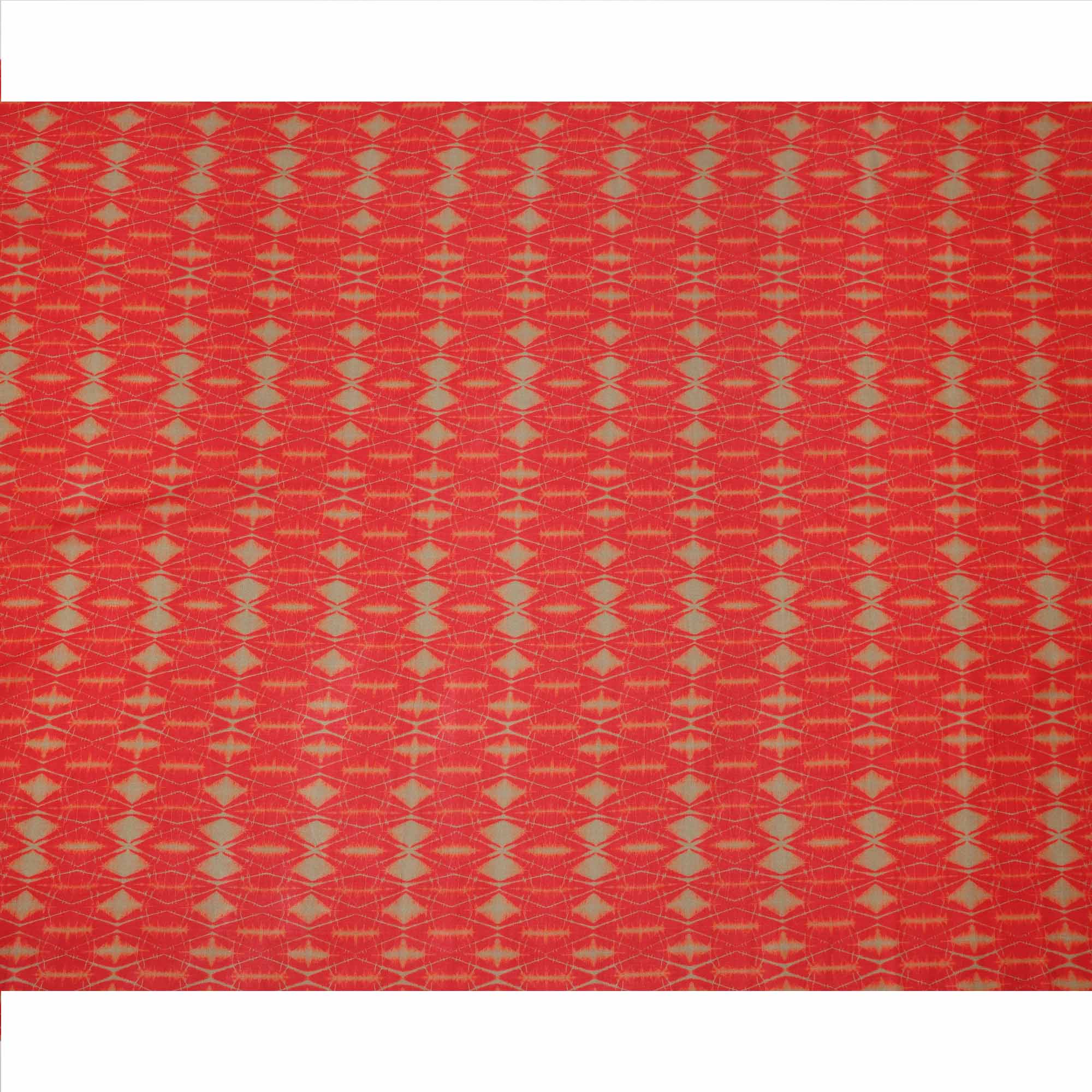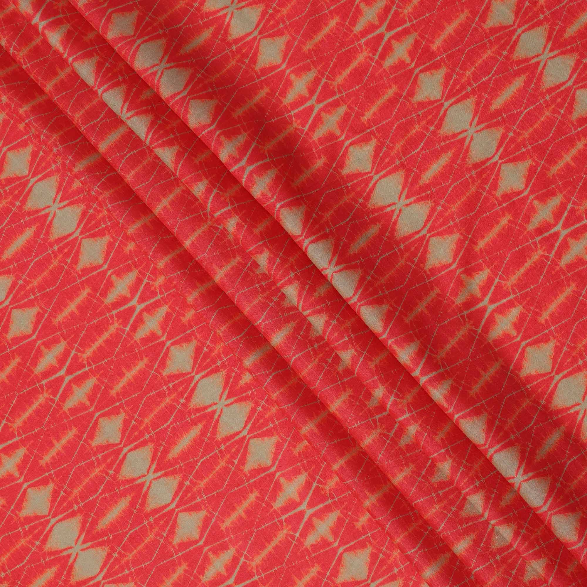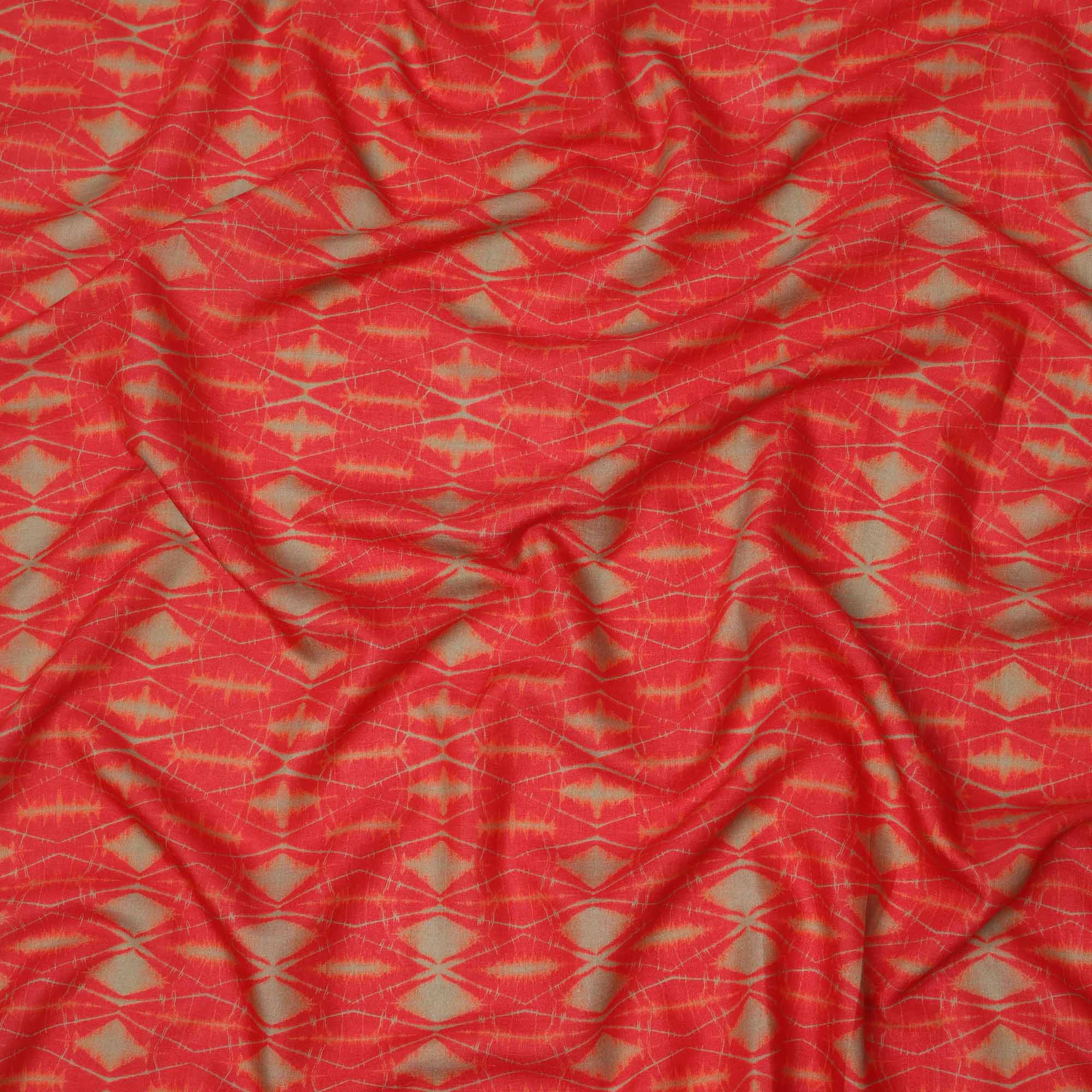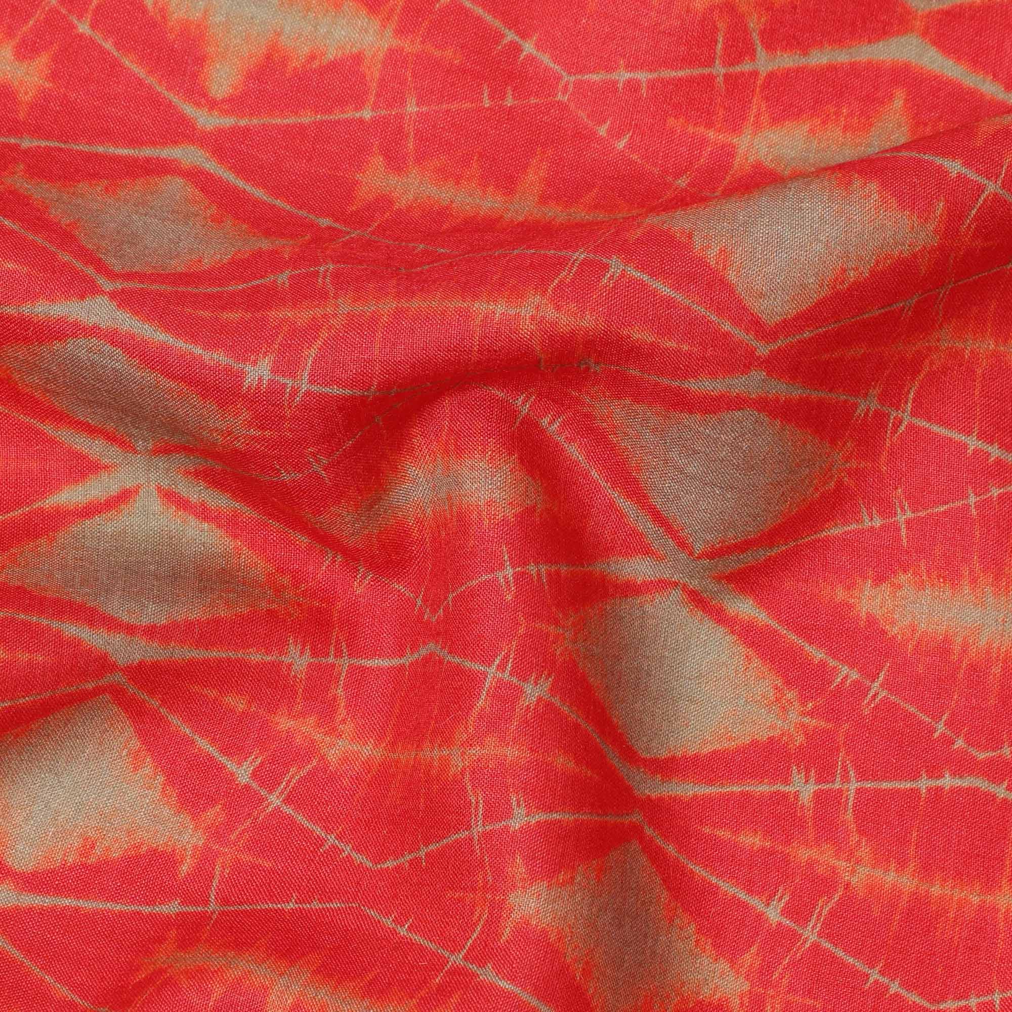 قماش كريب فيسكوز بطبعة تجريدية مستوحاة من شيبوري باللونين الأحمر الناري والأخضر الزيتوني، عرض 110 سم، صنع في الهند - D23576