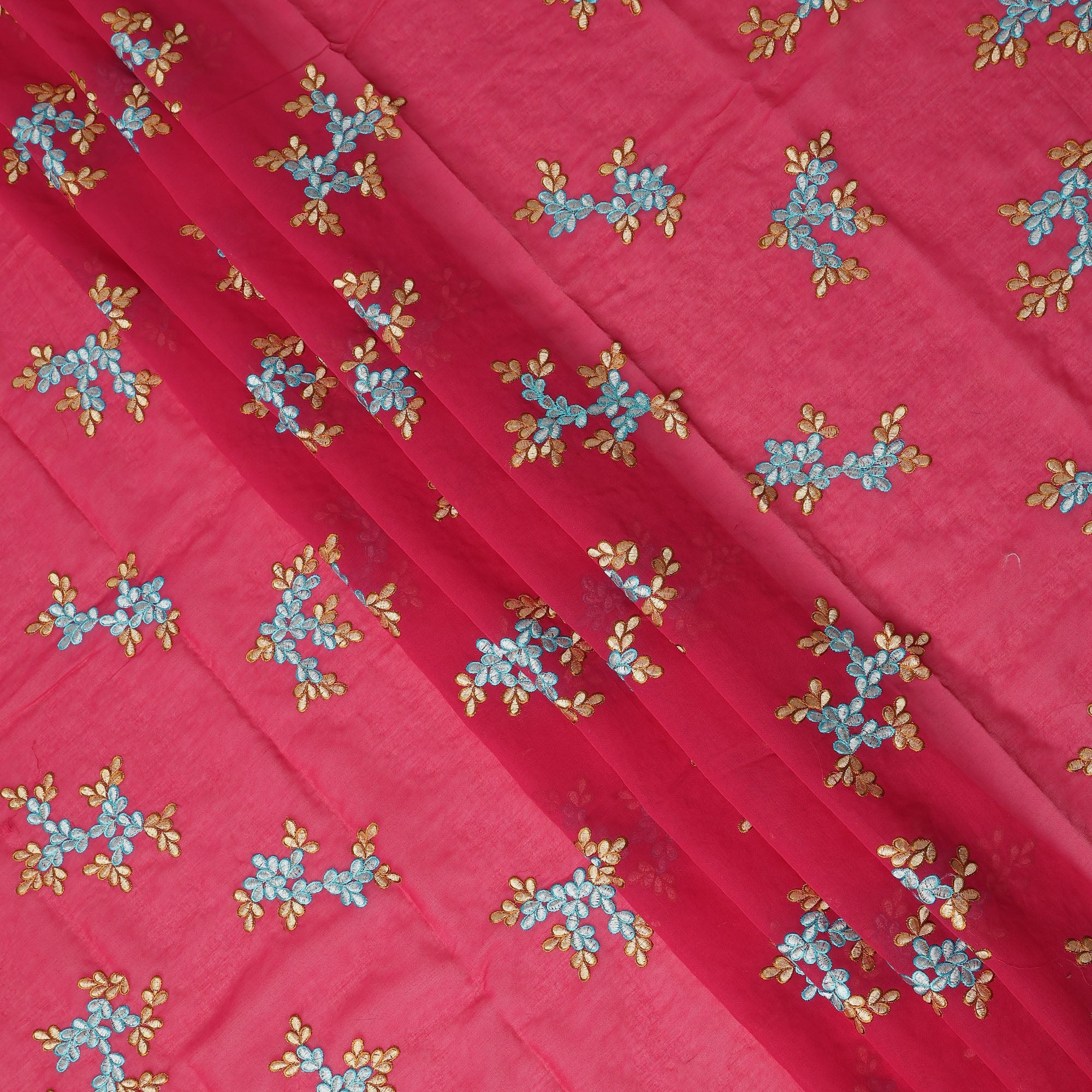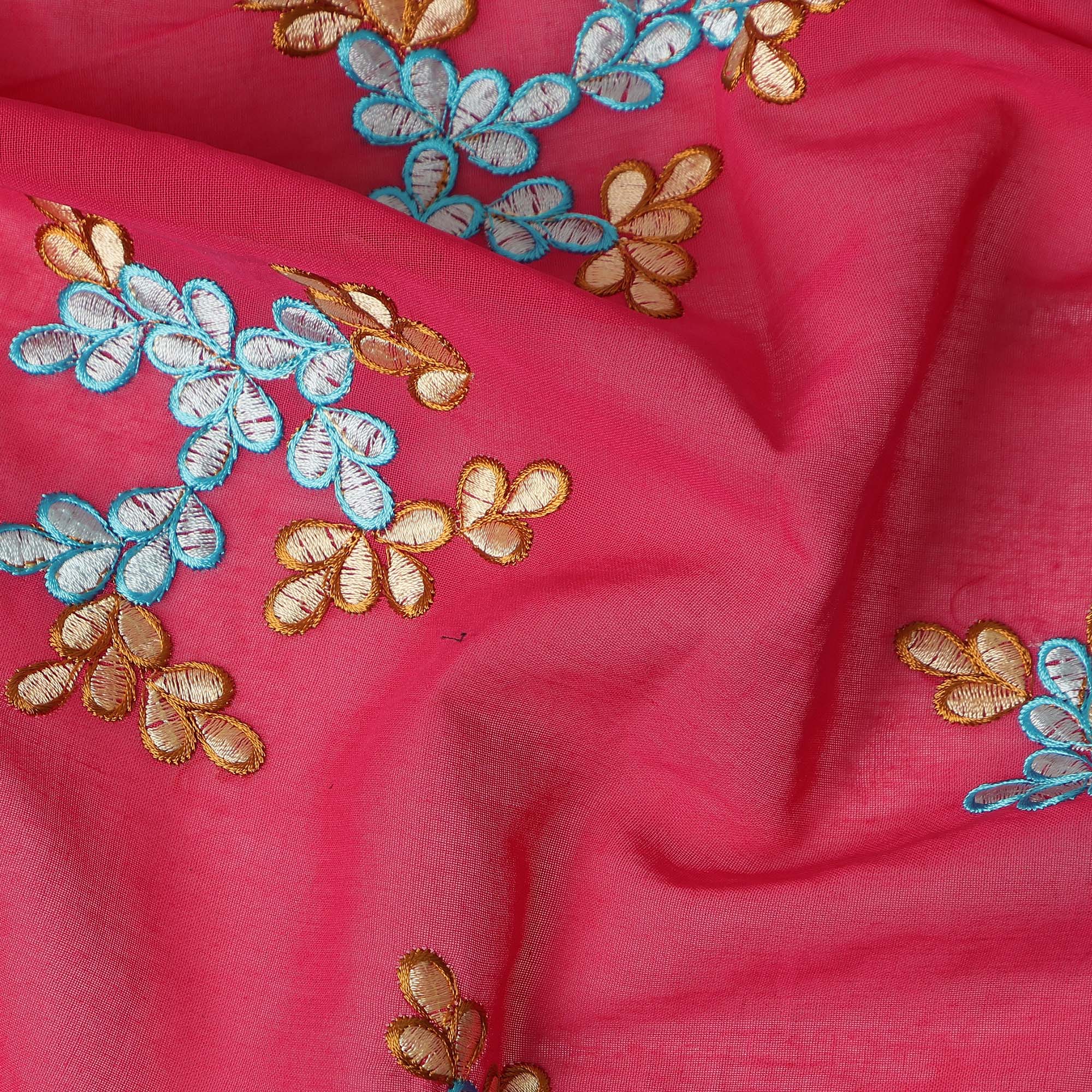 • Fuchsia Pink Traditional Sudanese Thobe Fabric Pure Cotton Voile 4.5 Meters Piece Width 140 Cms Soft Breathable Ethnic Wear Material with Elegant Floral Embroidery Made in India-D27607