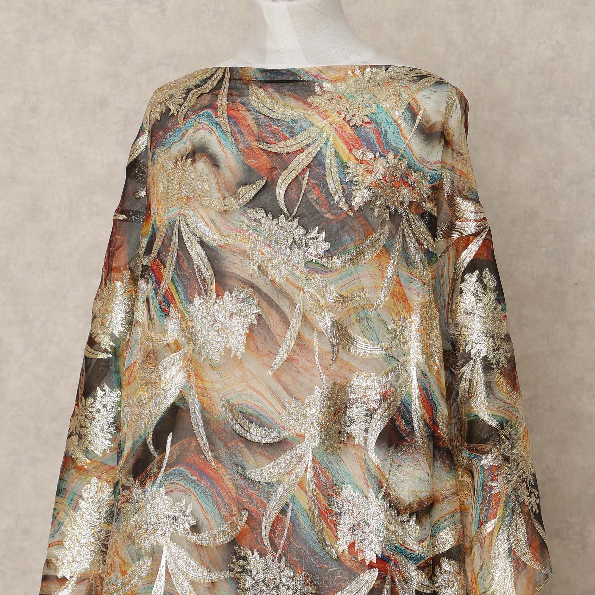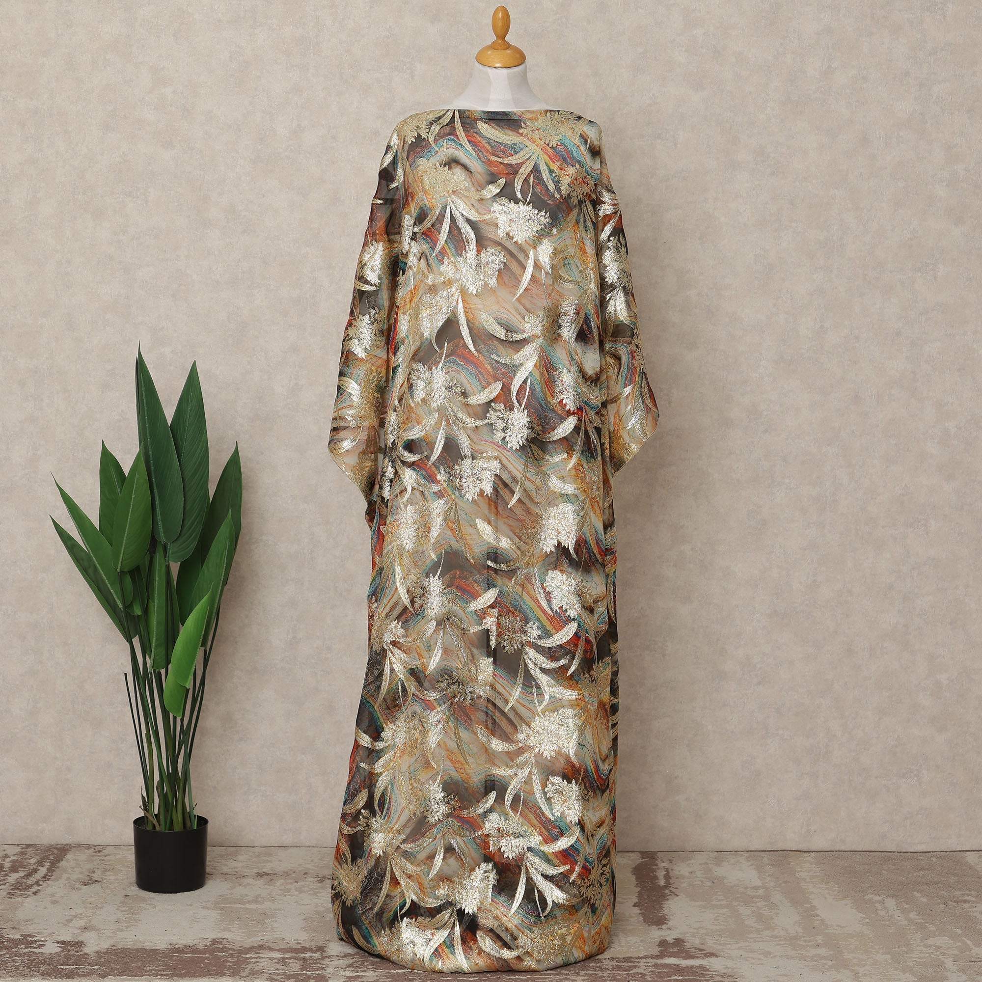 Gold Brown Multicolor Traditional Somali Silk Chiffon Dirac Fabric with Metallic Lurex, 3.5 Mtrs Length, 140 Cms Width, Made in South Korea-D26405