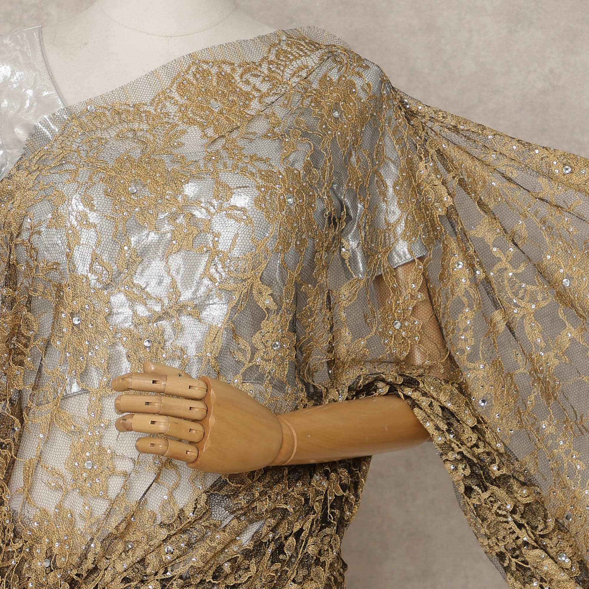 Made using premium French Chantilly lace with metallic detailing