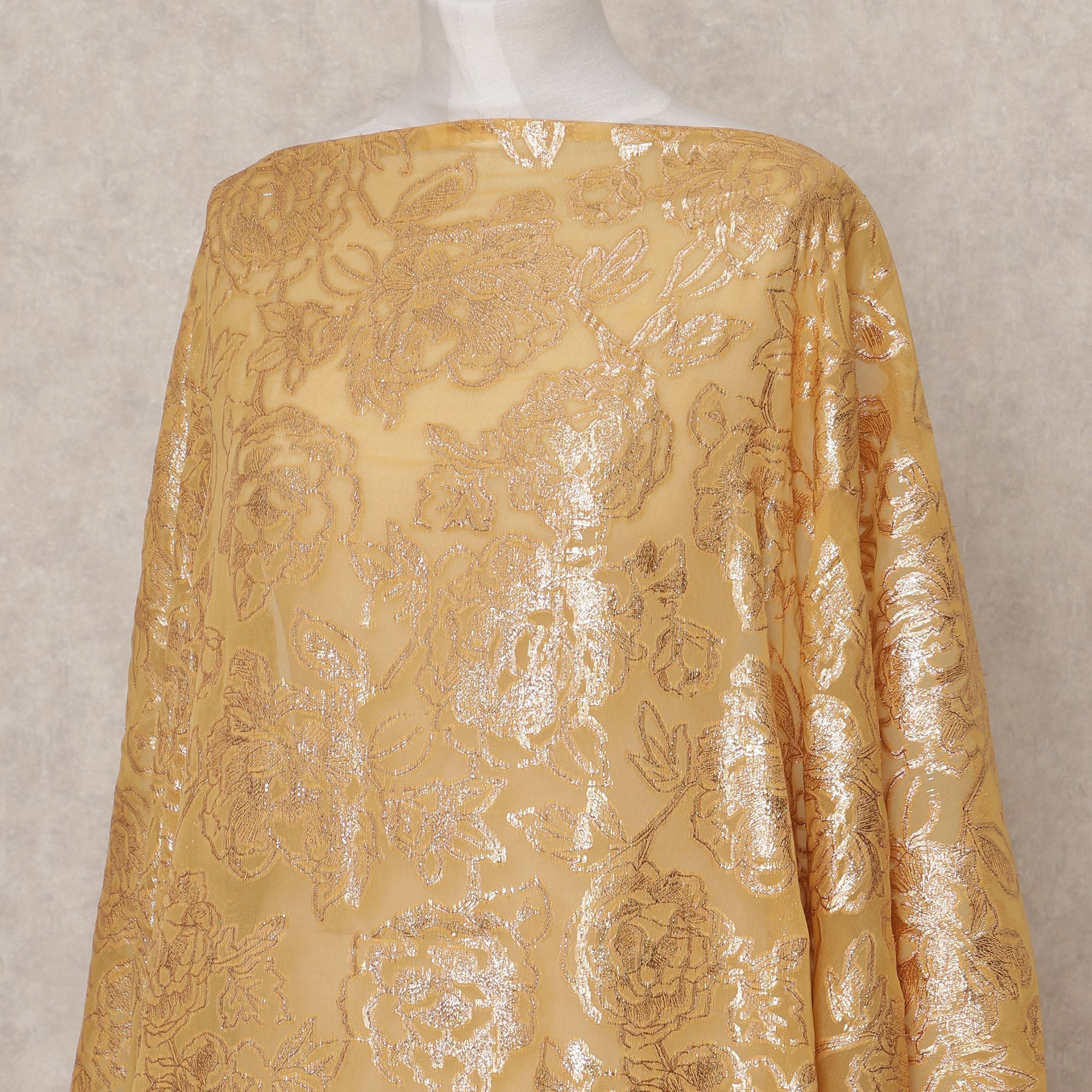شيفون حريري ذهبي غني مع لمسات لوريكس معدنية فاخرة