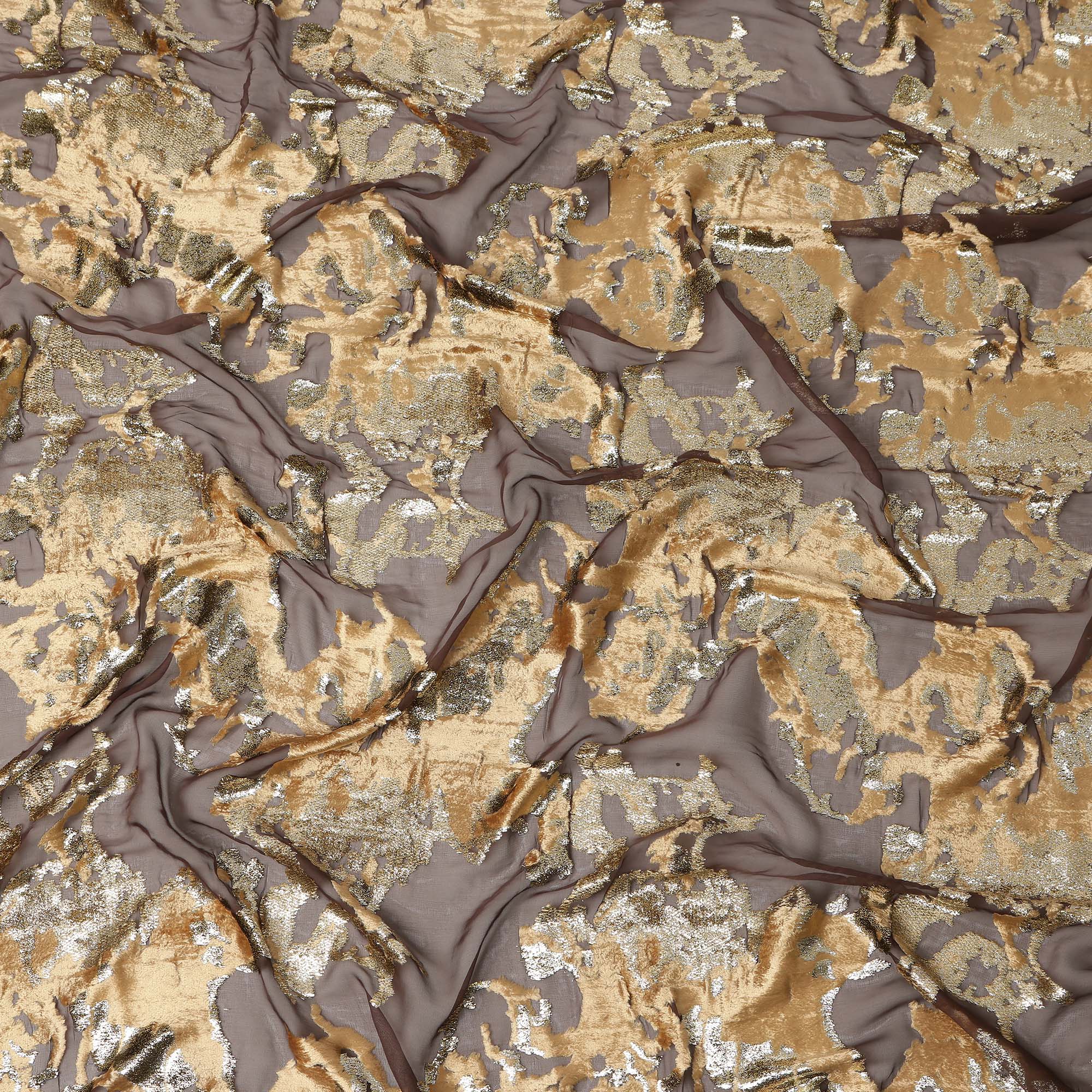 Golden Brown Traditional Somali Silk Chiffon Velvet Makmal Dirac Fabric, 140 Cms Width, 3.5 Mtrs Piece, Made in South Korea-D26163