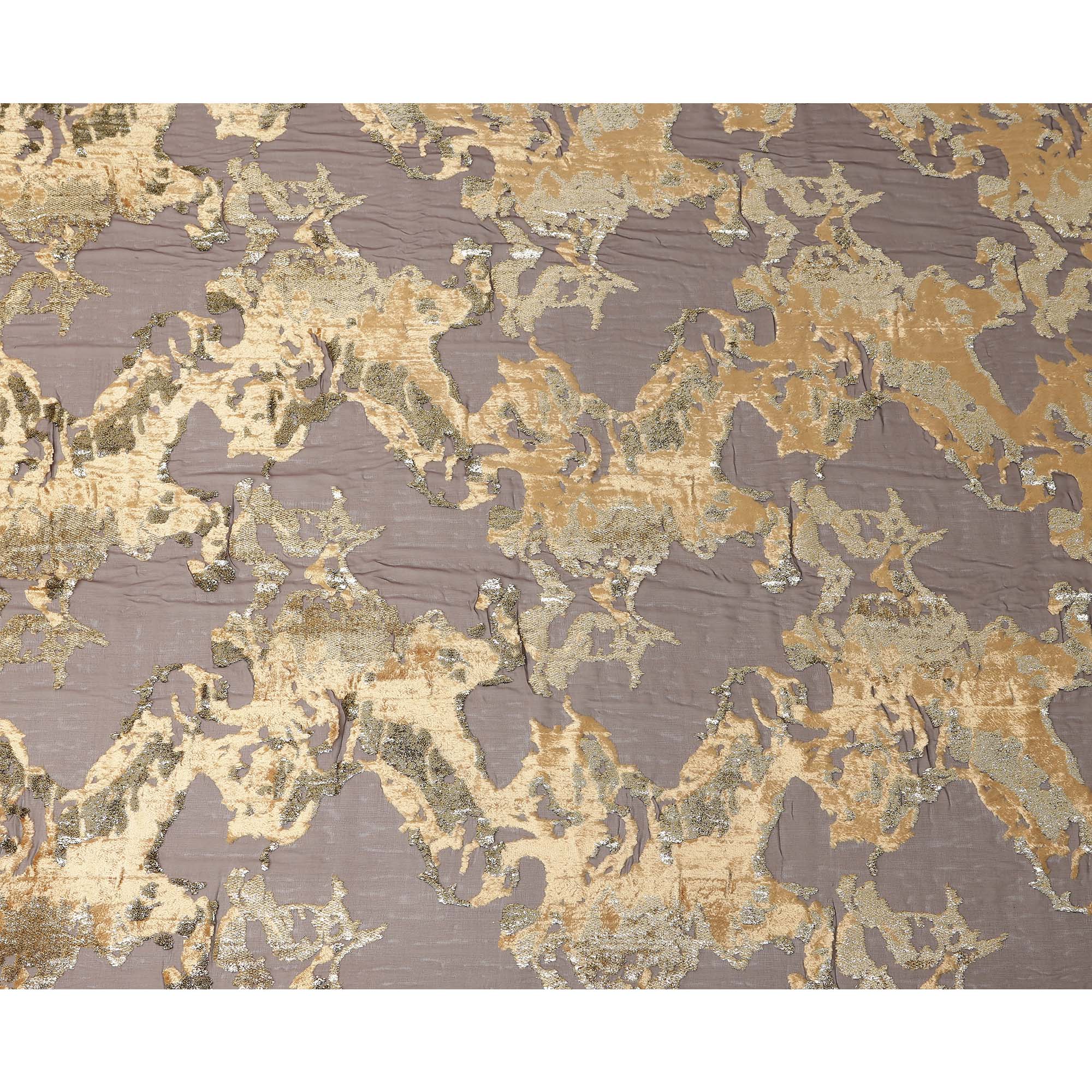 Velvet texture enhances richness with intricate metallic highlights