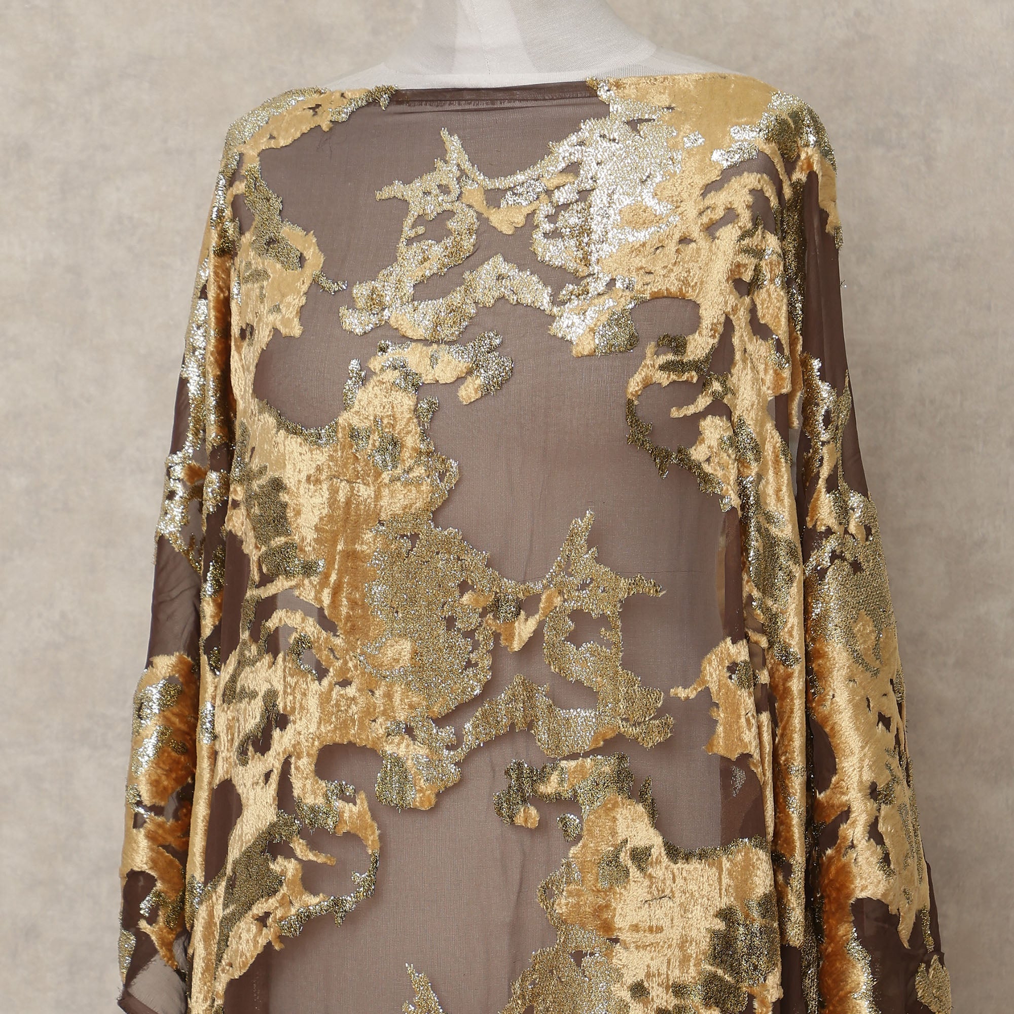 Elegant golden brown hue with shimmering velvet makmal detailing