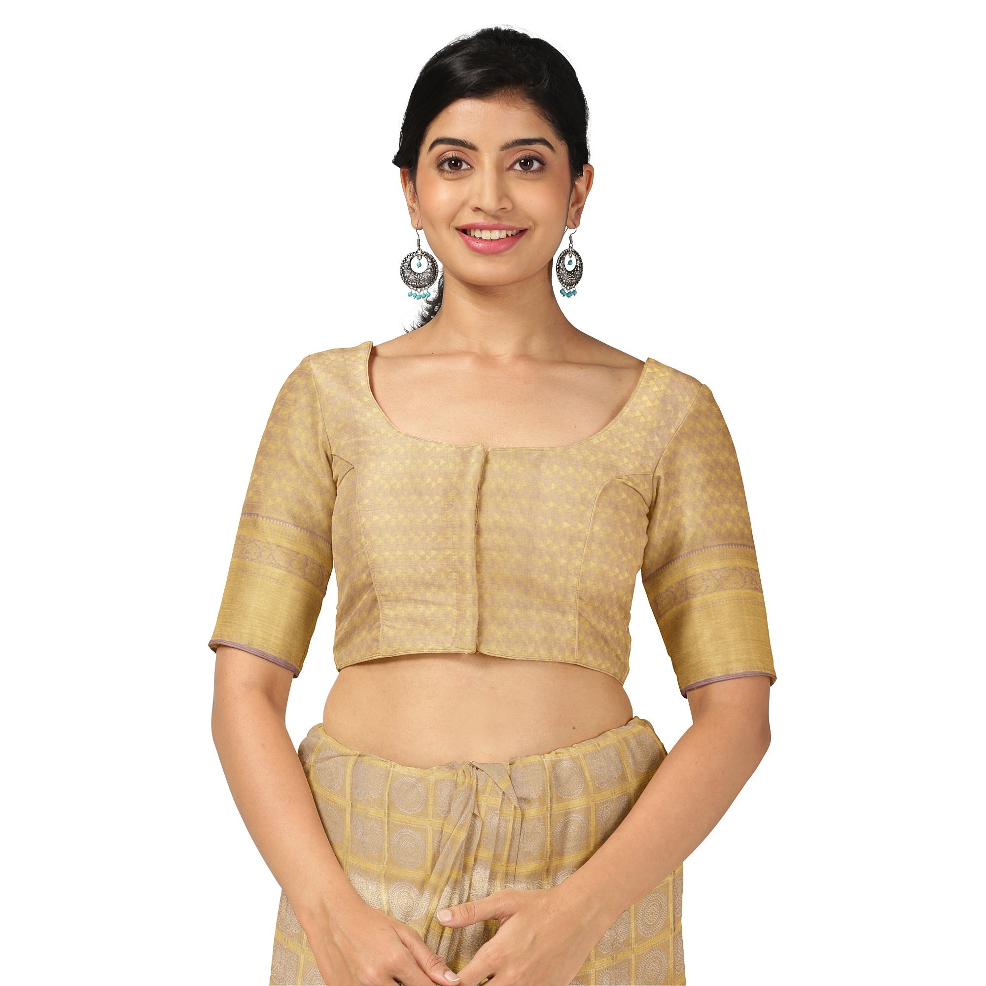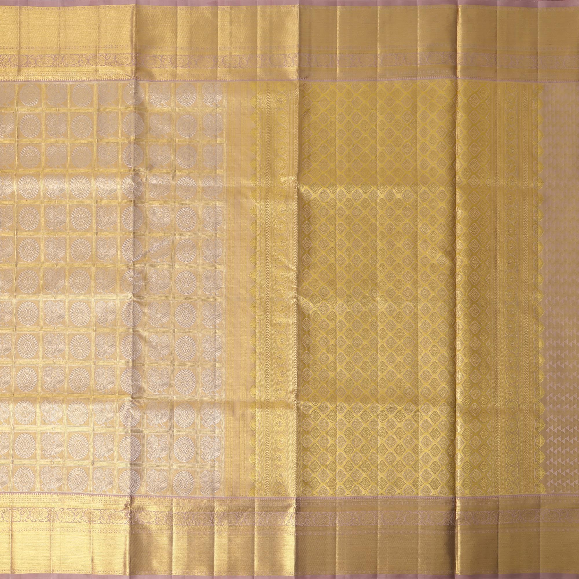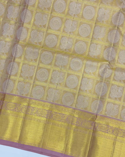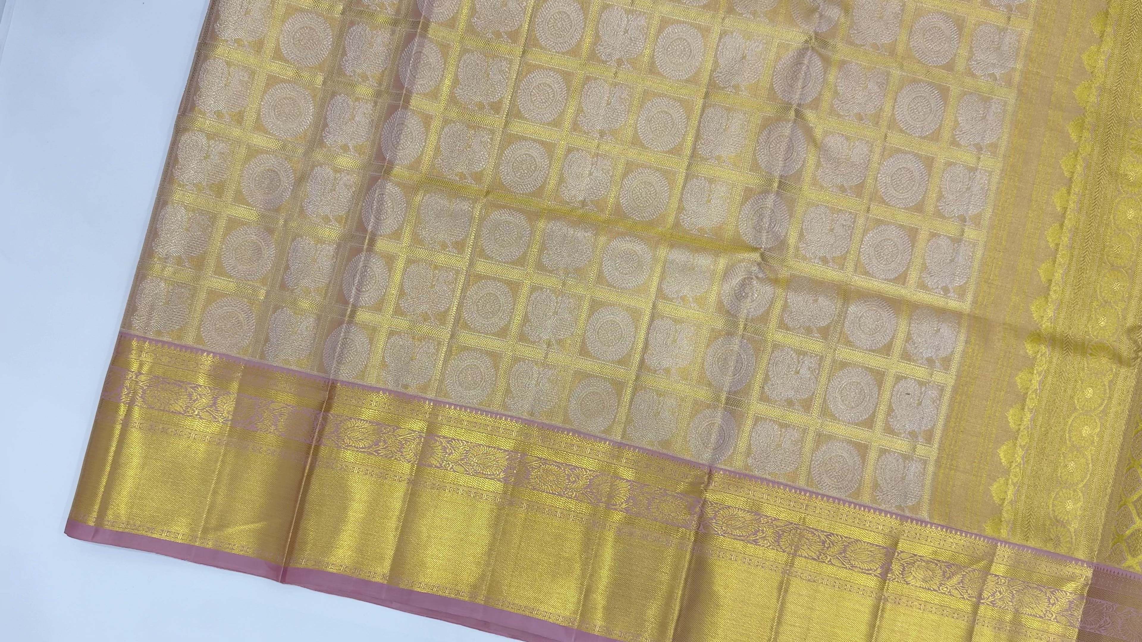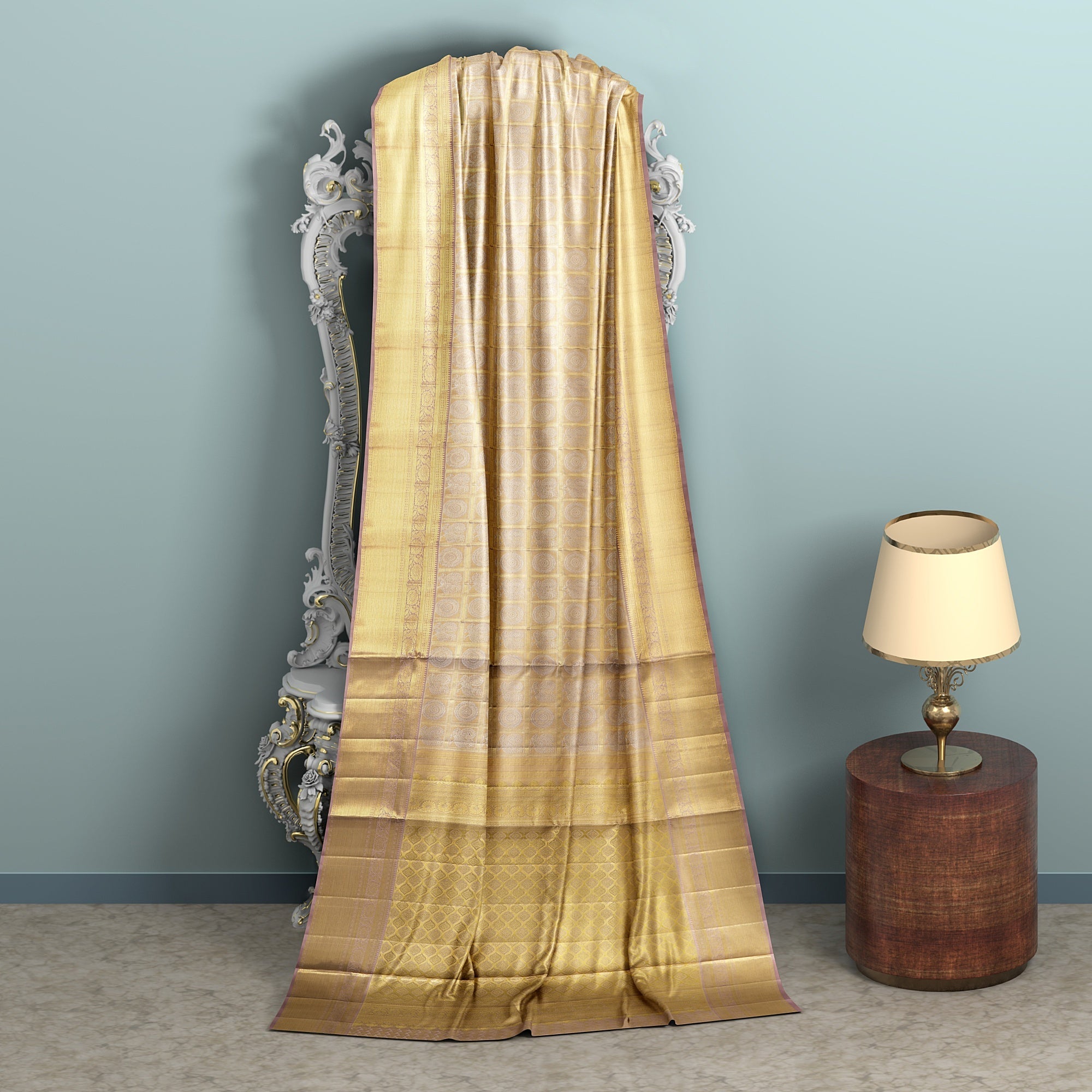ساري كانجيفارام من الحرير الخالص، منقوش بنقشة مربعات ذهبية، بطول 5.5 متر مع قطعة بلوزة، منسوج يدويًا من الهند - D22739