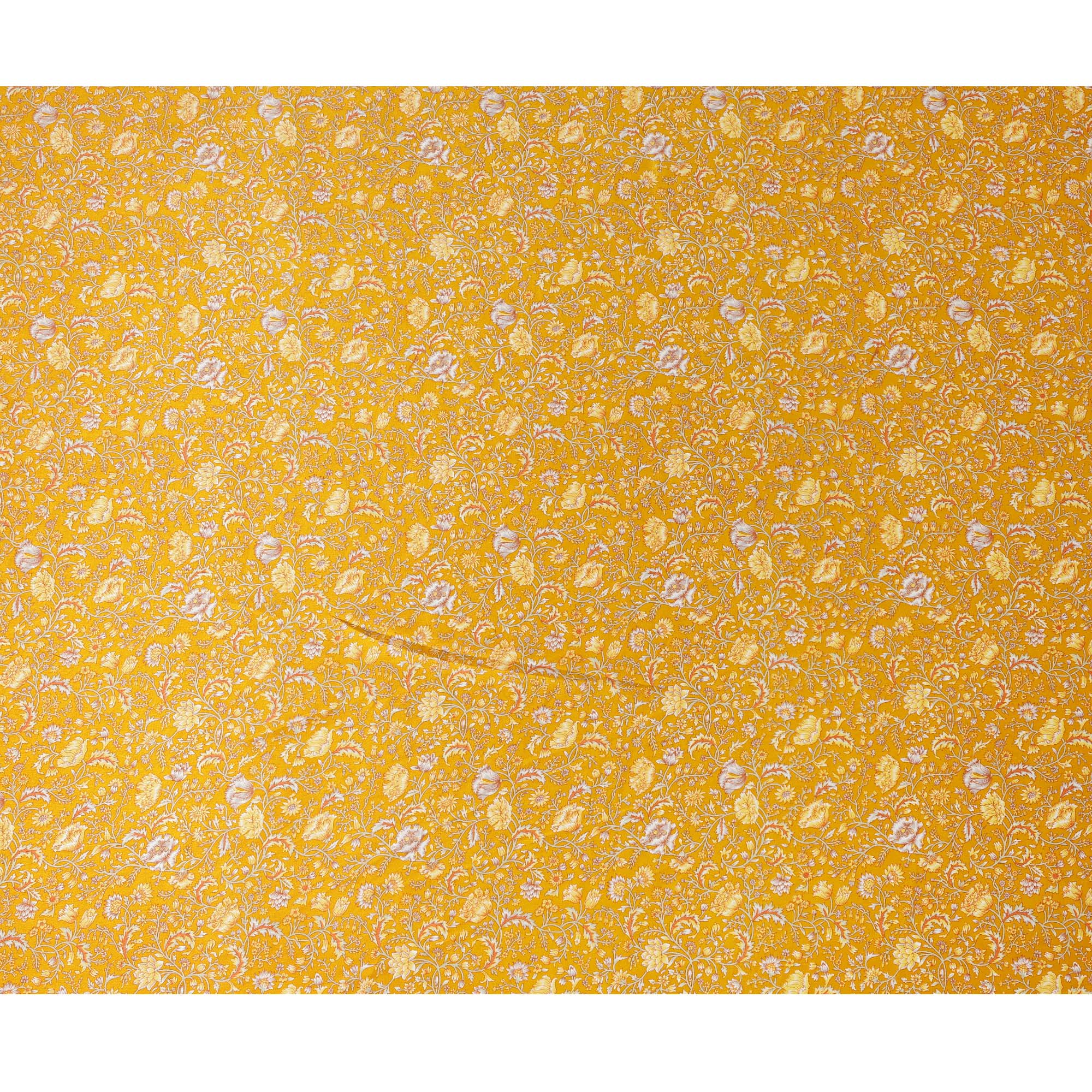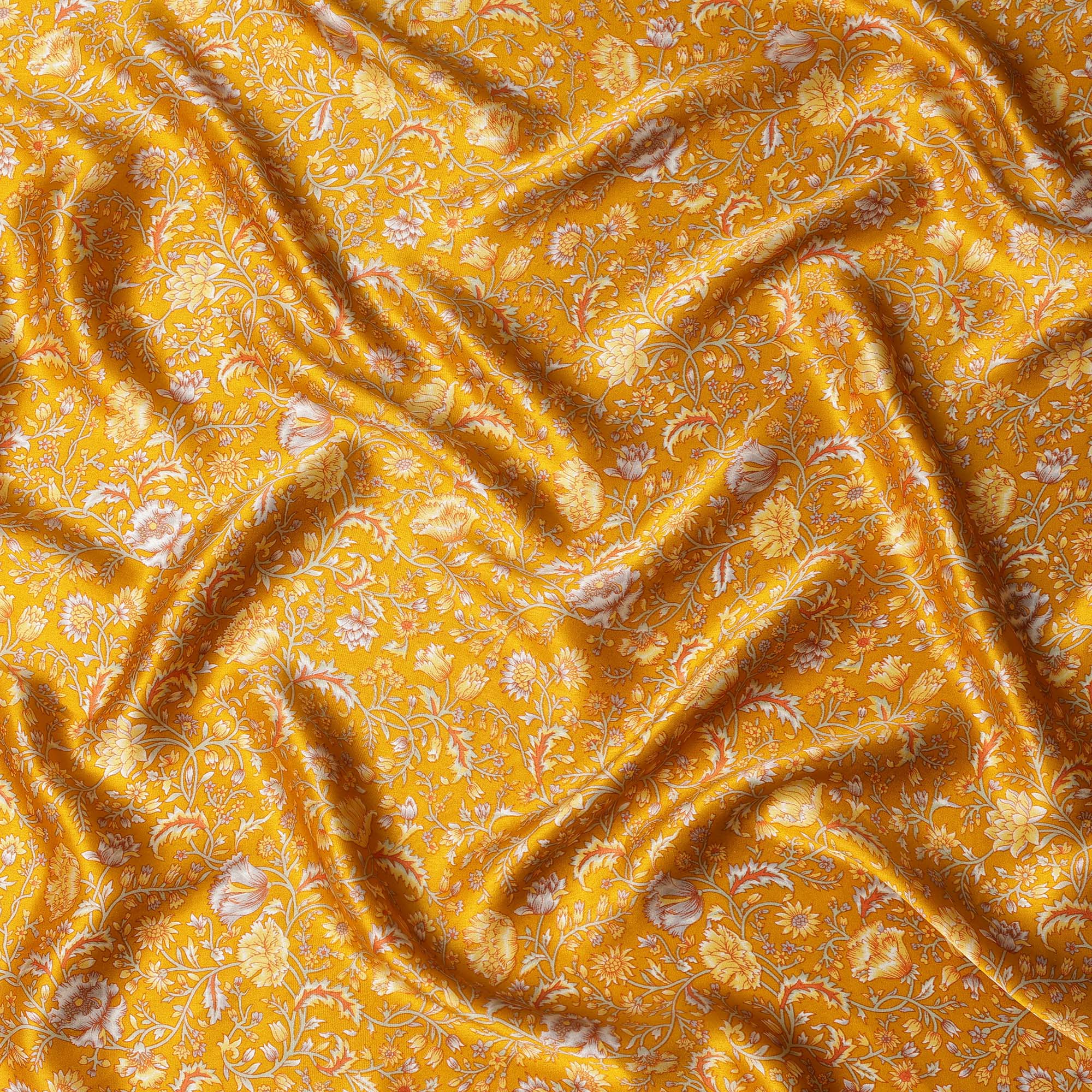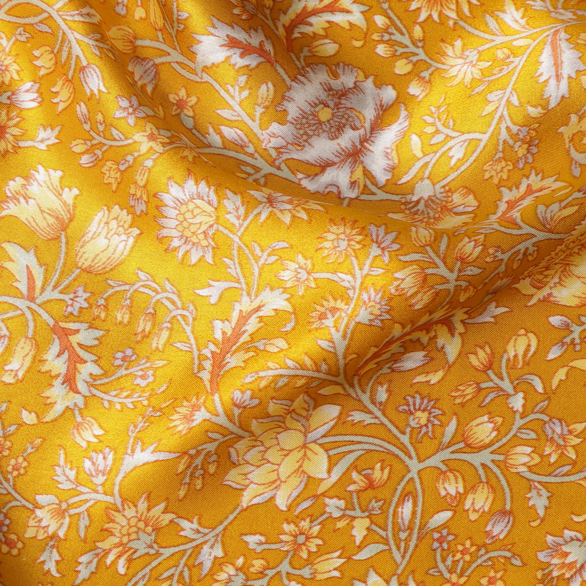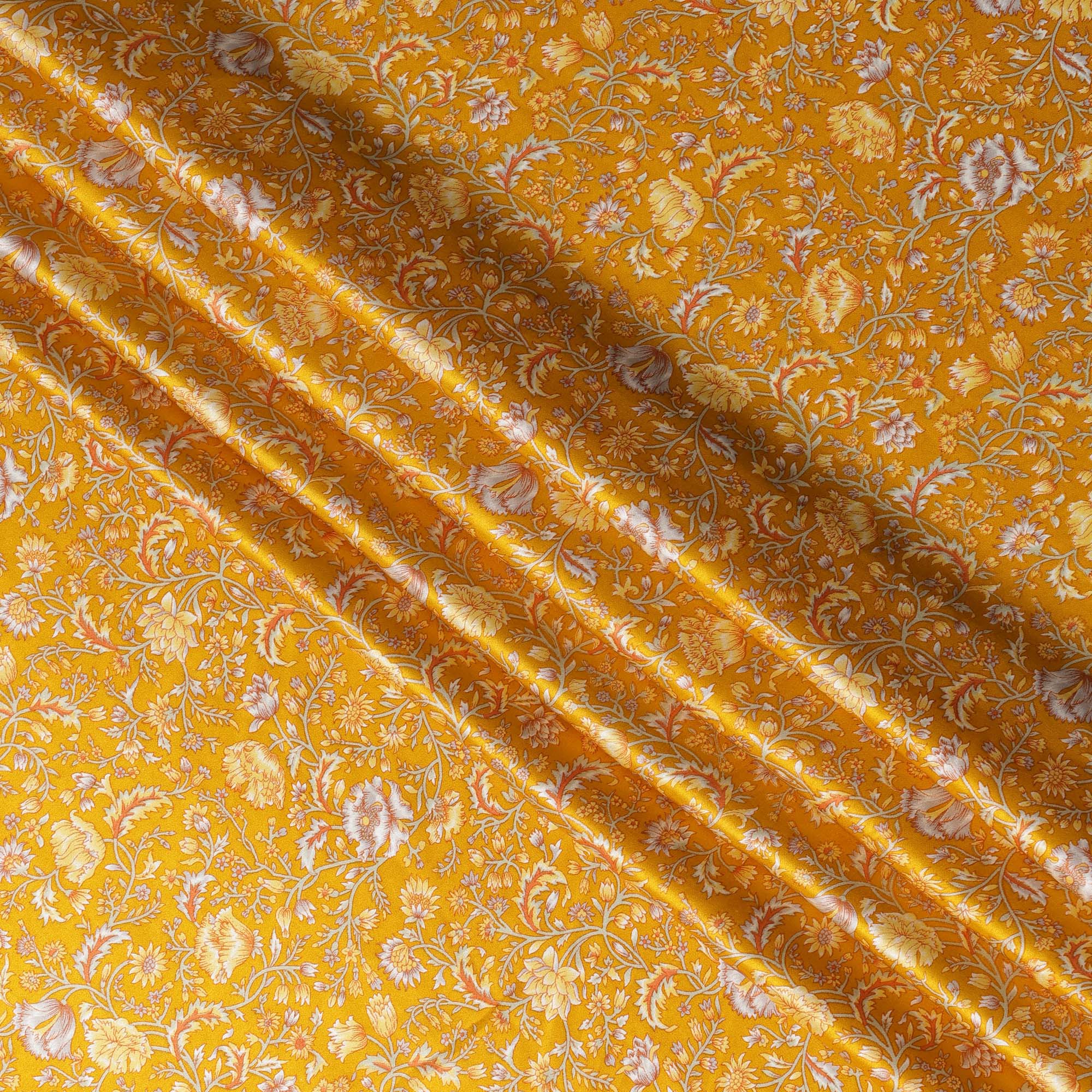 قماش حرير ساتان مطبوع عليه زهور باللون الأصفر الذهبي بتصميم مستوحى من الطراز القديم، عرض 110 سم، صنع في الهند - D23262