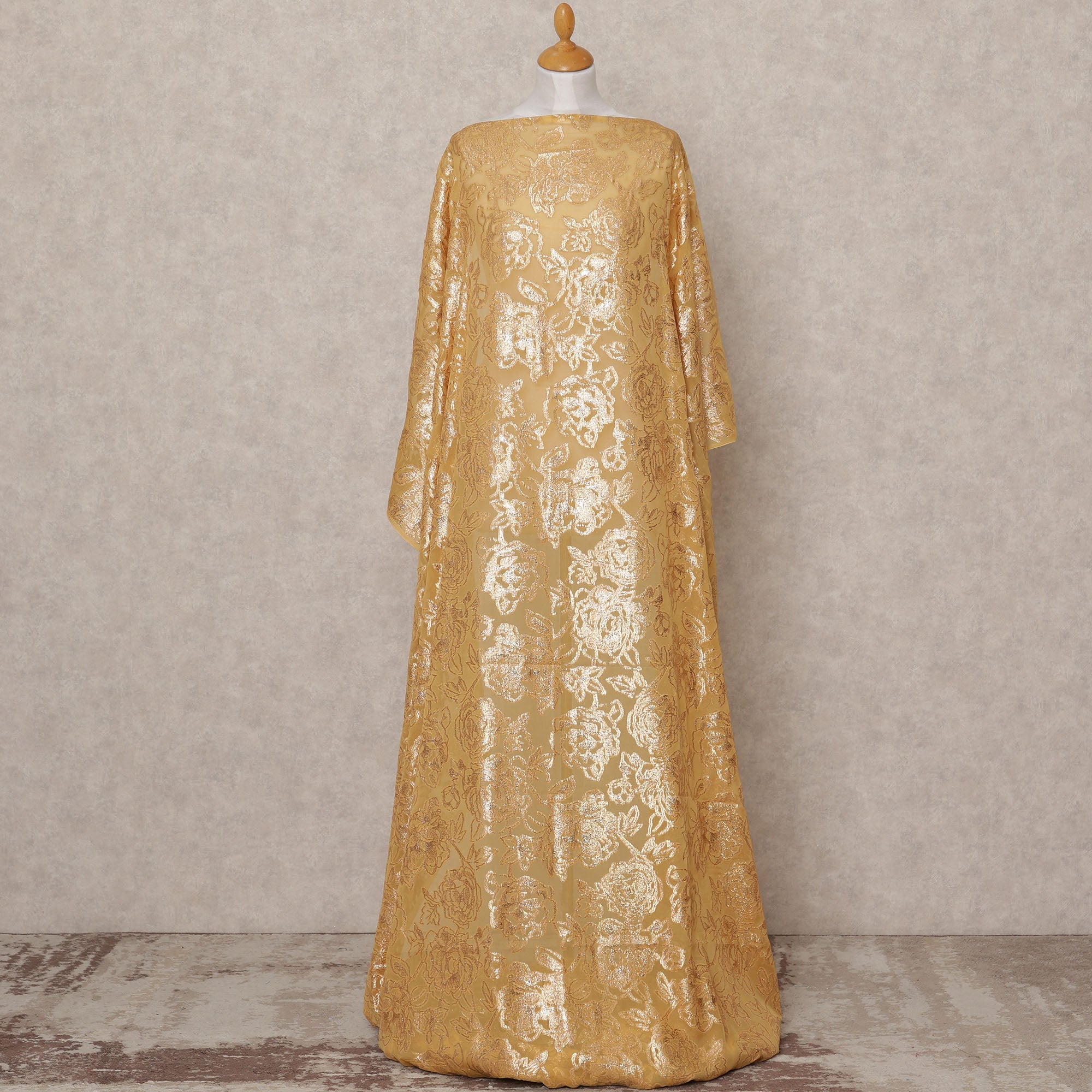 Golden Yellow Traditional Somali Silk Chiffon Dirac Fabric with Metallic Lurex, 3.5 Mtrs Piece, Width 140 Cms, Made in South Korea-D26517