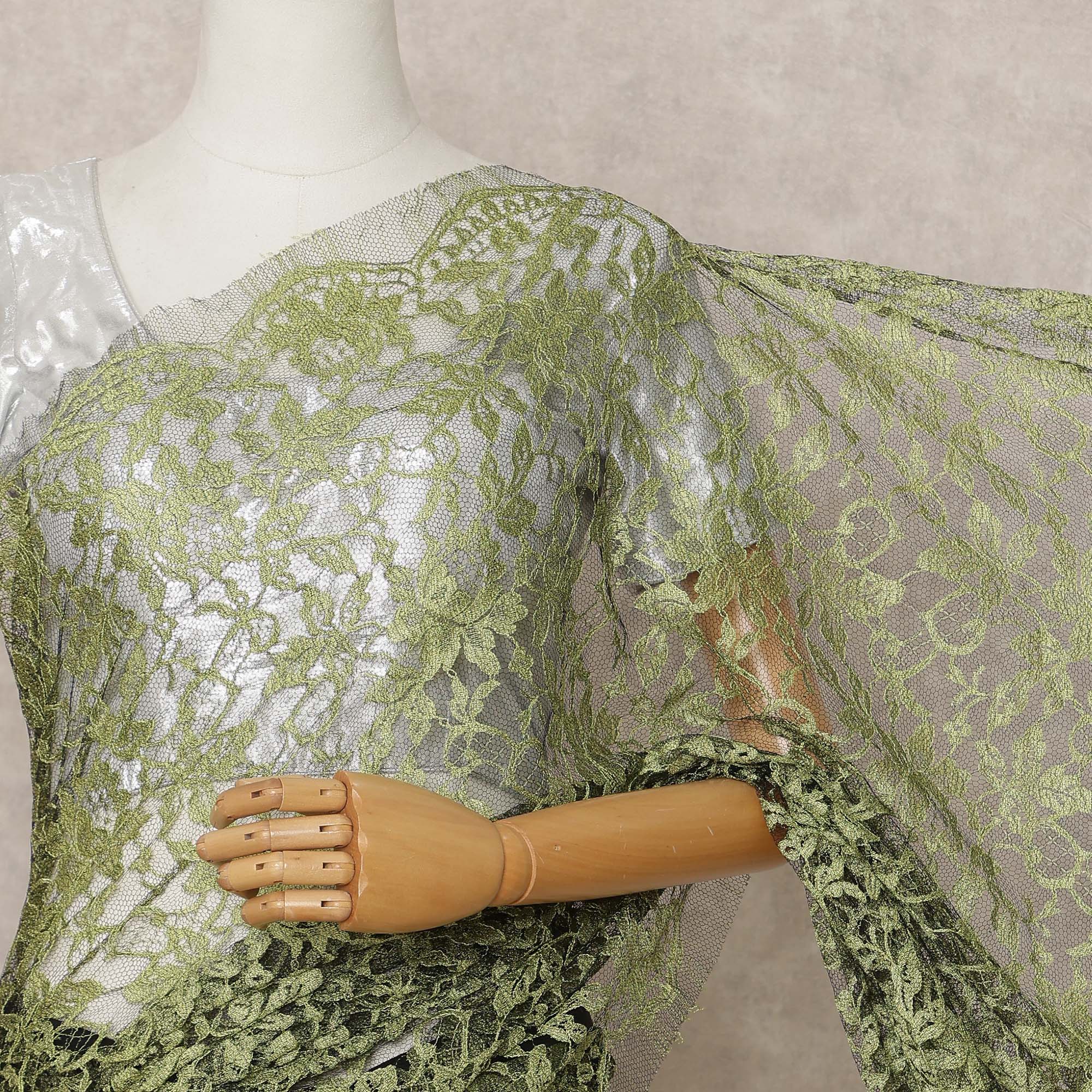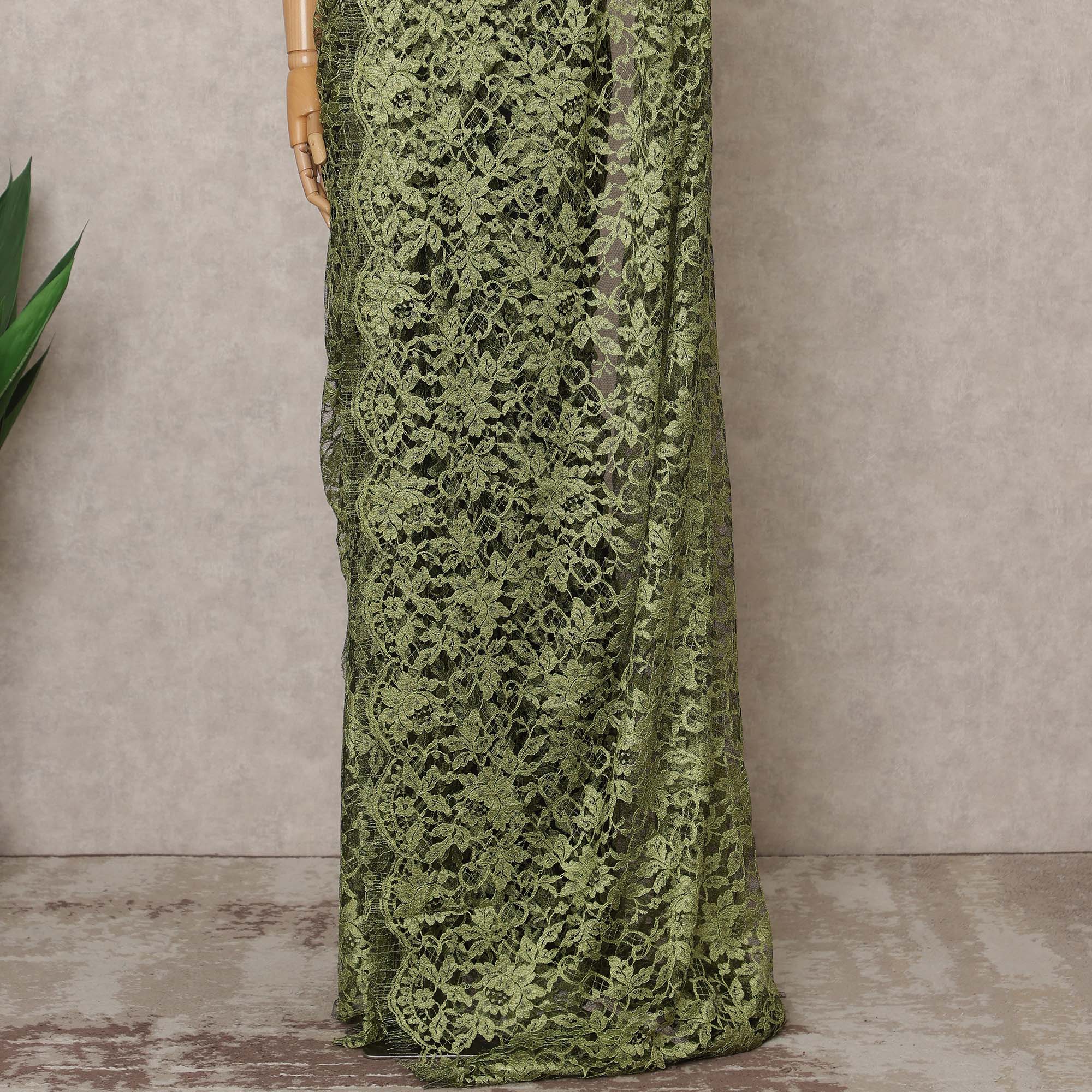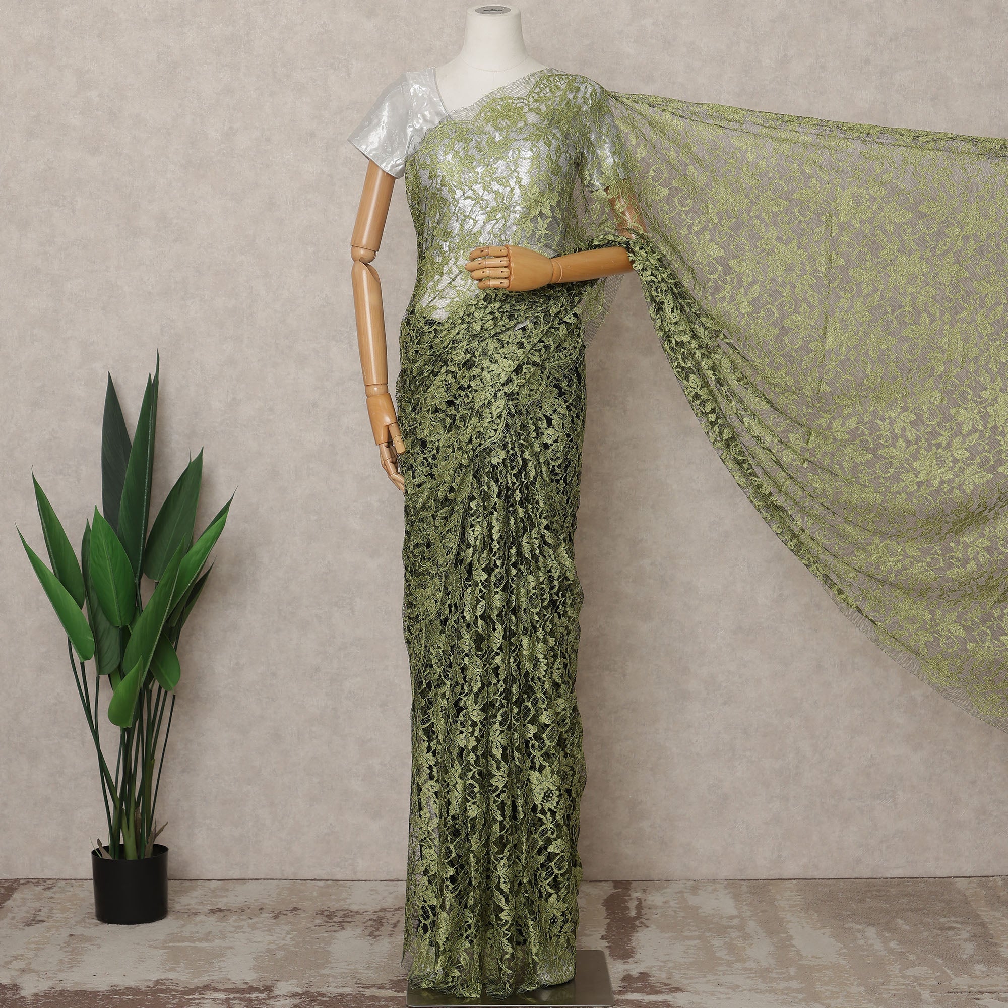 Green & Black Premium French 2-Tone Chantilly Lace Saree Fabric – 5.5 Meters Length, 110 Cms Width, Imported from France-D25706
