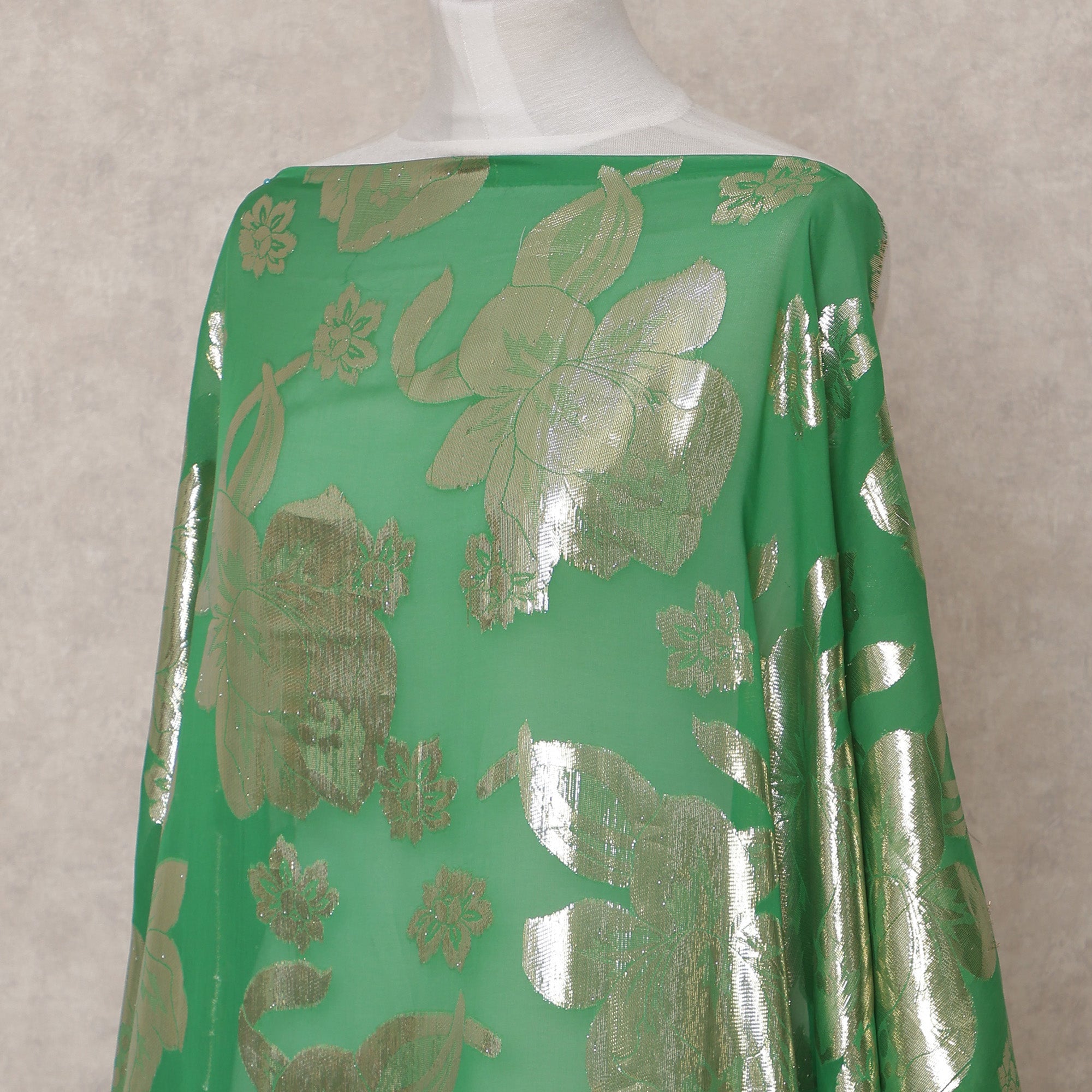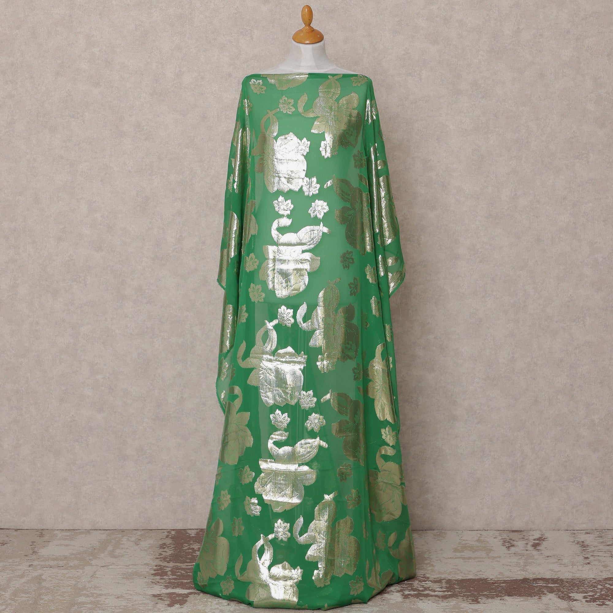 قماش ديراك شيفون حرير صومالي تقليدي أخضر مع لوركس معدني، 3.5 متر، عرض 140 سم، صنع في كوريا الجنوبية - D25063