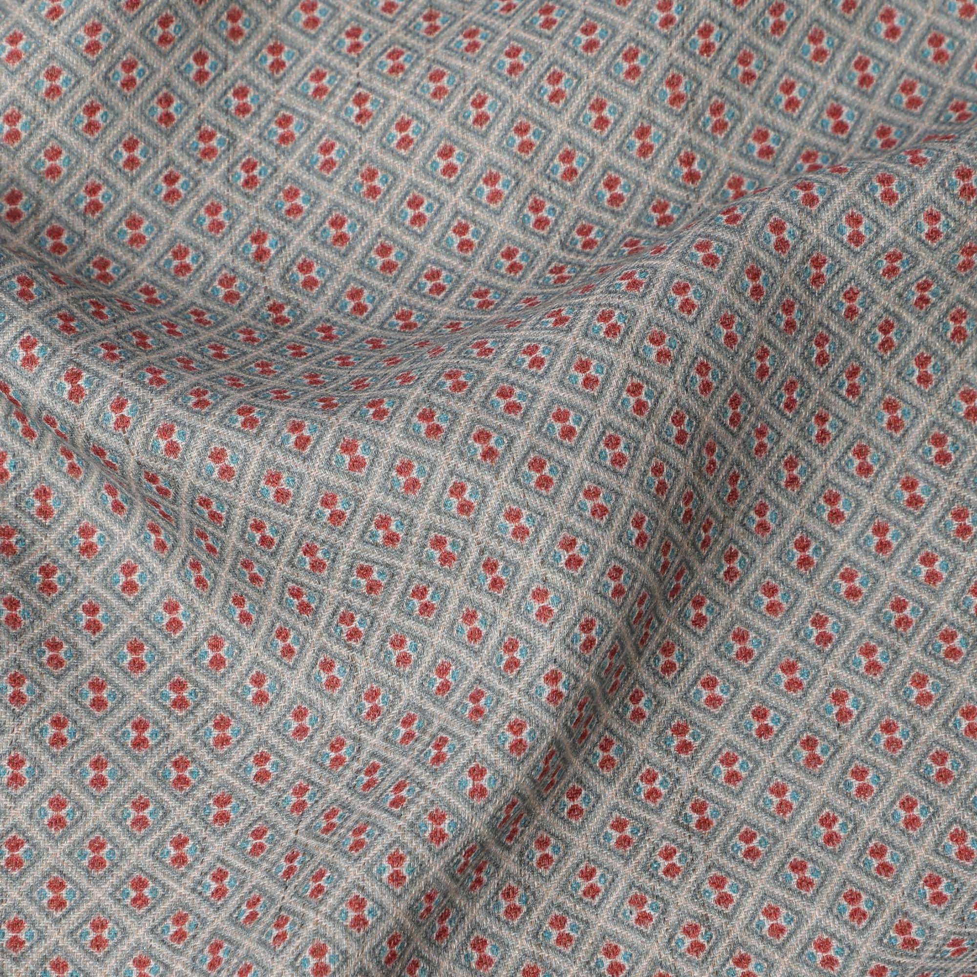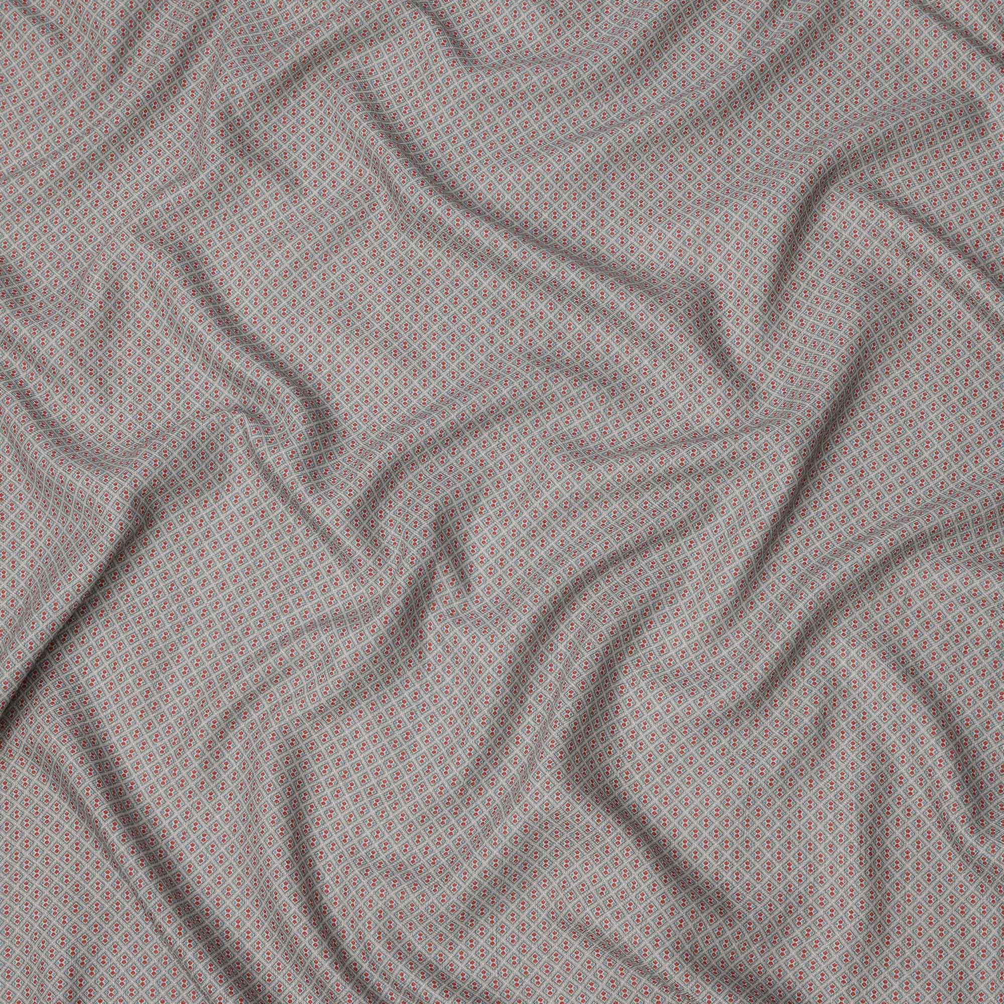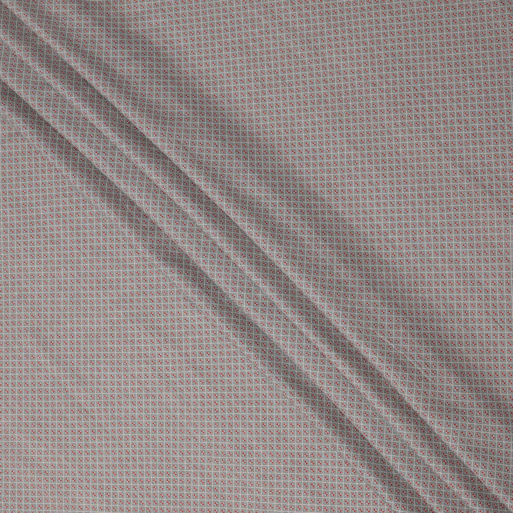 قماش فوال قطني رمادي بطبعة زهور عرقية صغيرة باللونين الأحمر والأبيض، 110 سم، الهند - D23861