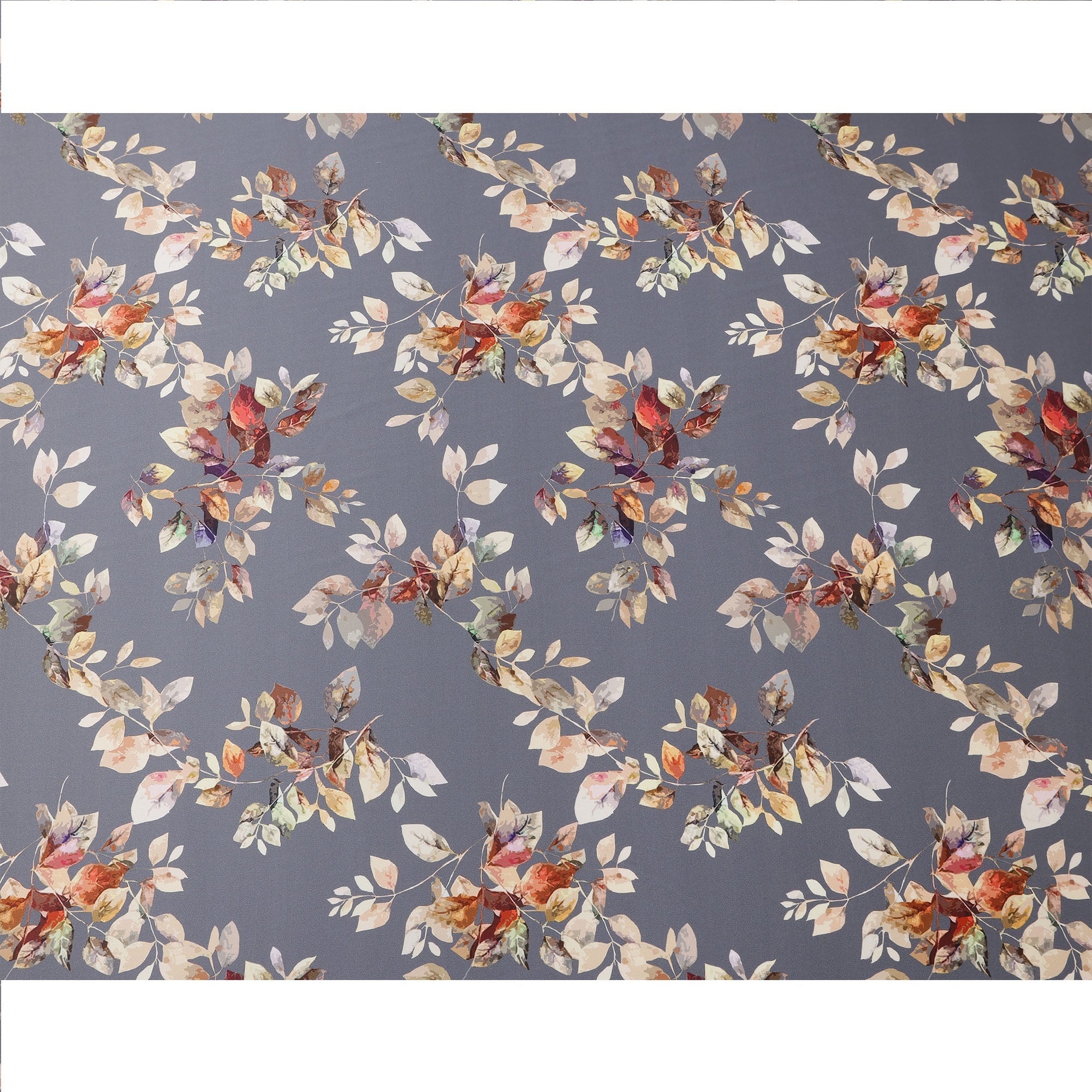 Grey base enhanced with delicate multicolor leaf prints in warm earthy tones