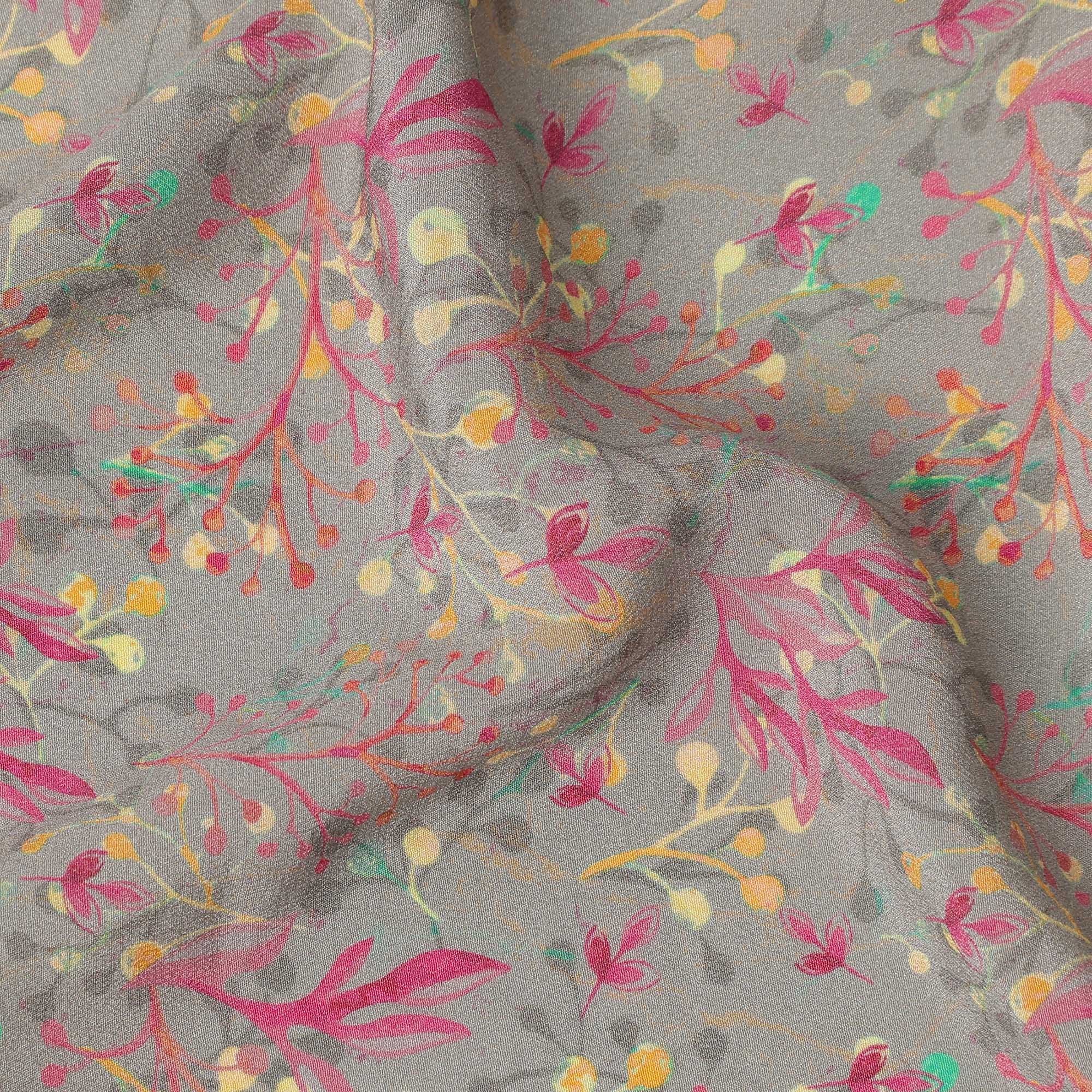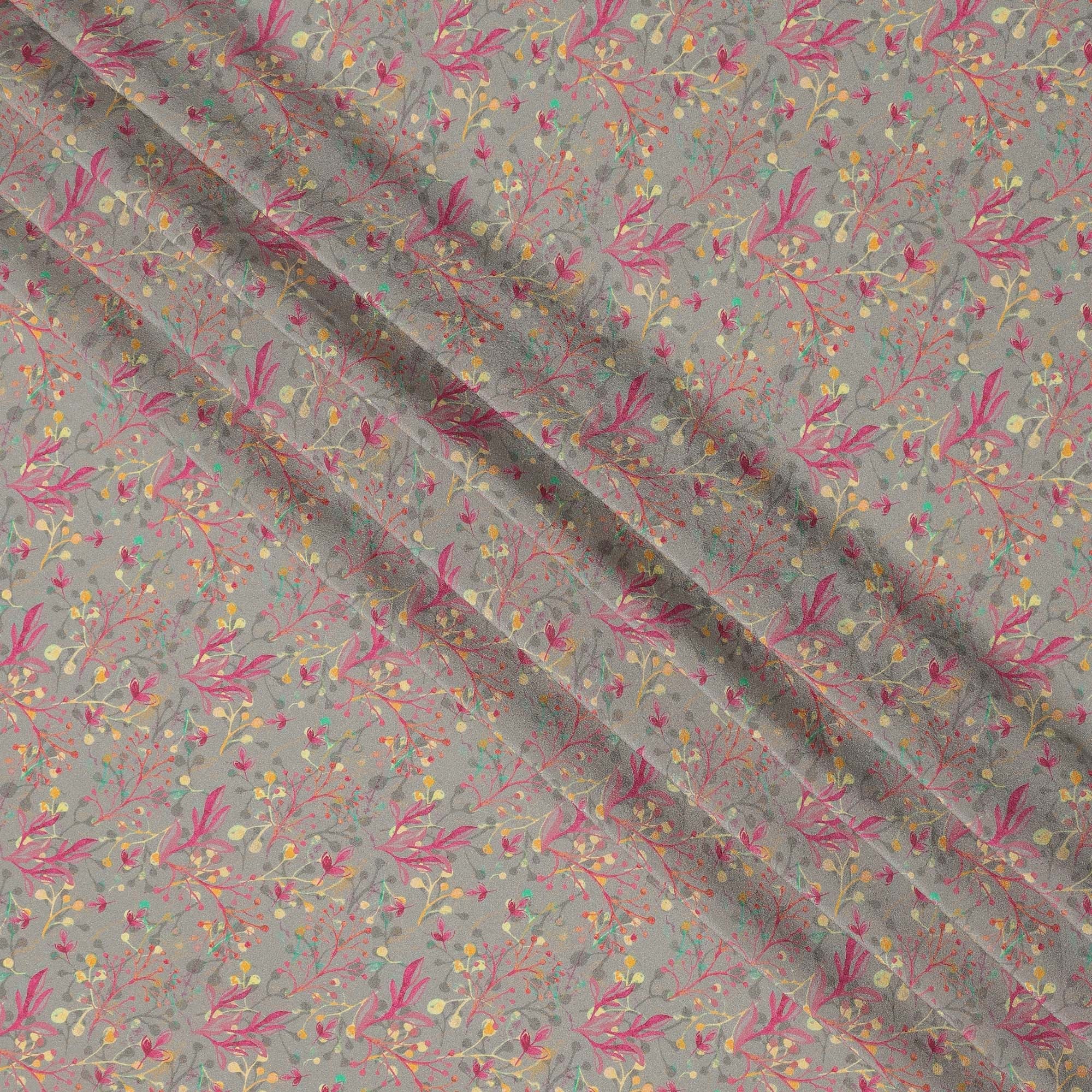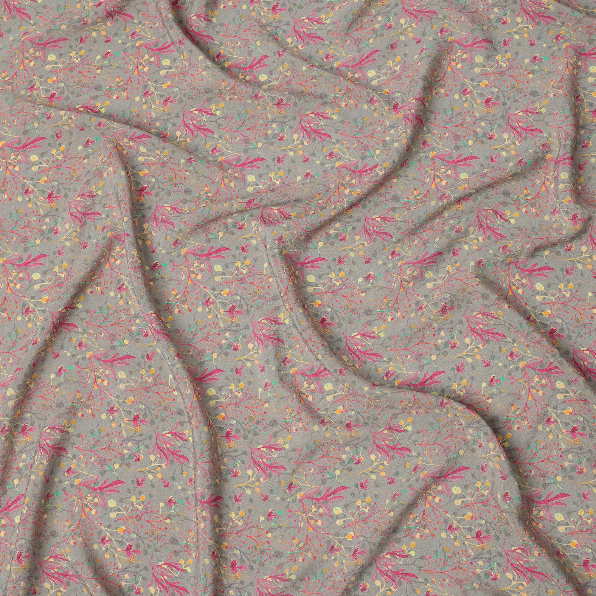 Grey Pastel Botanical Vine Allover Print Premium Silk Crepe Fabric, 110 Cms, India-D26887