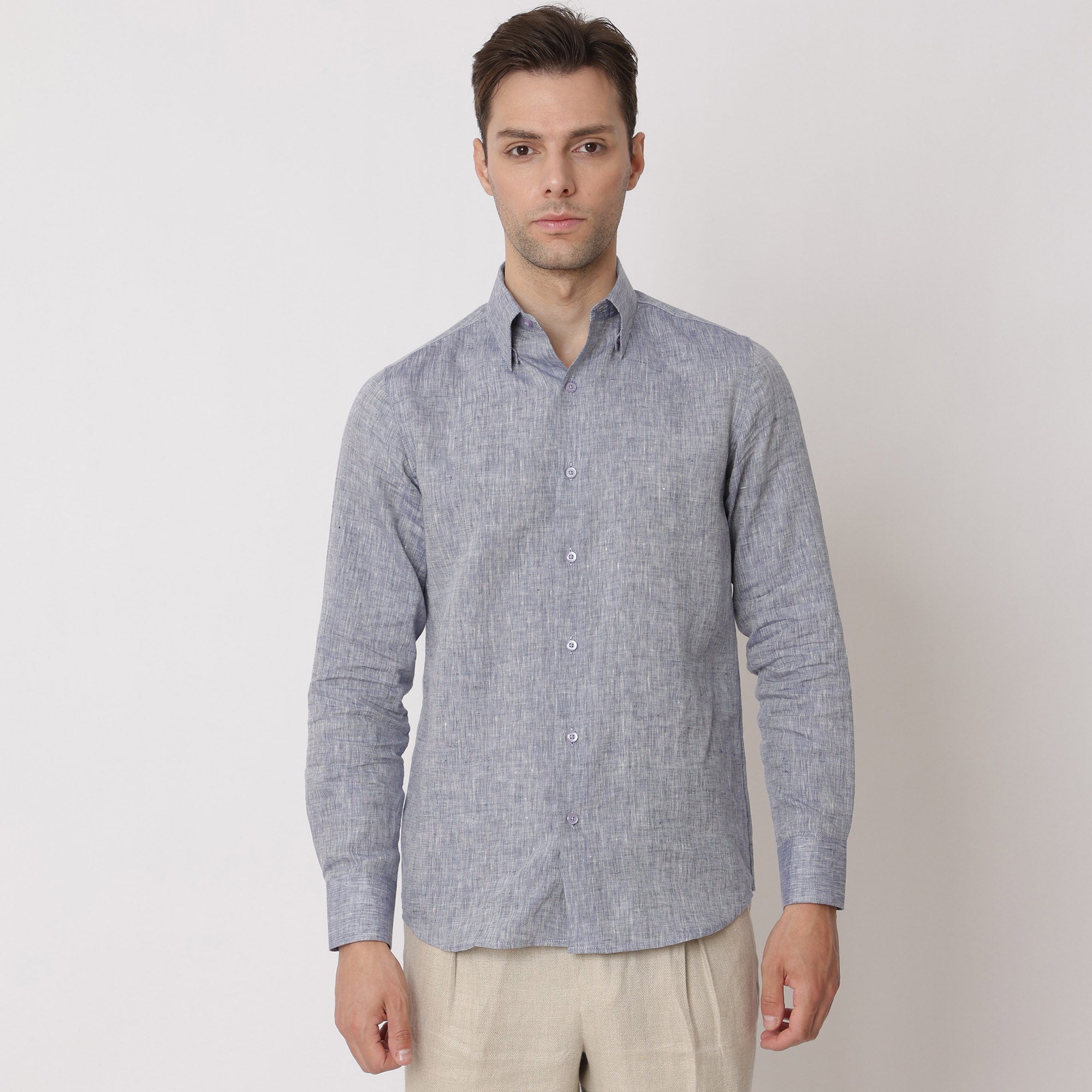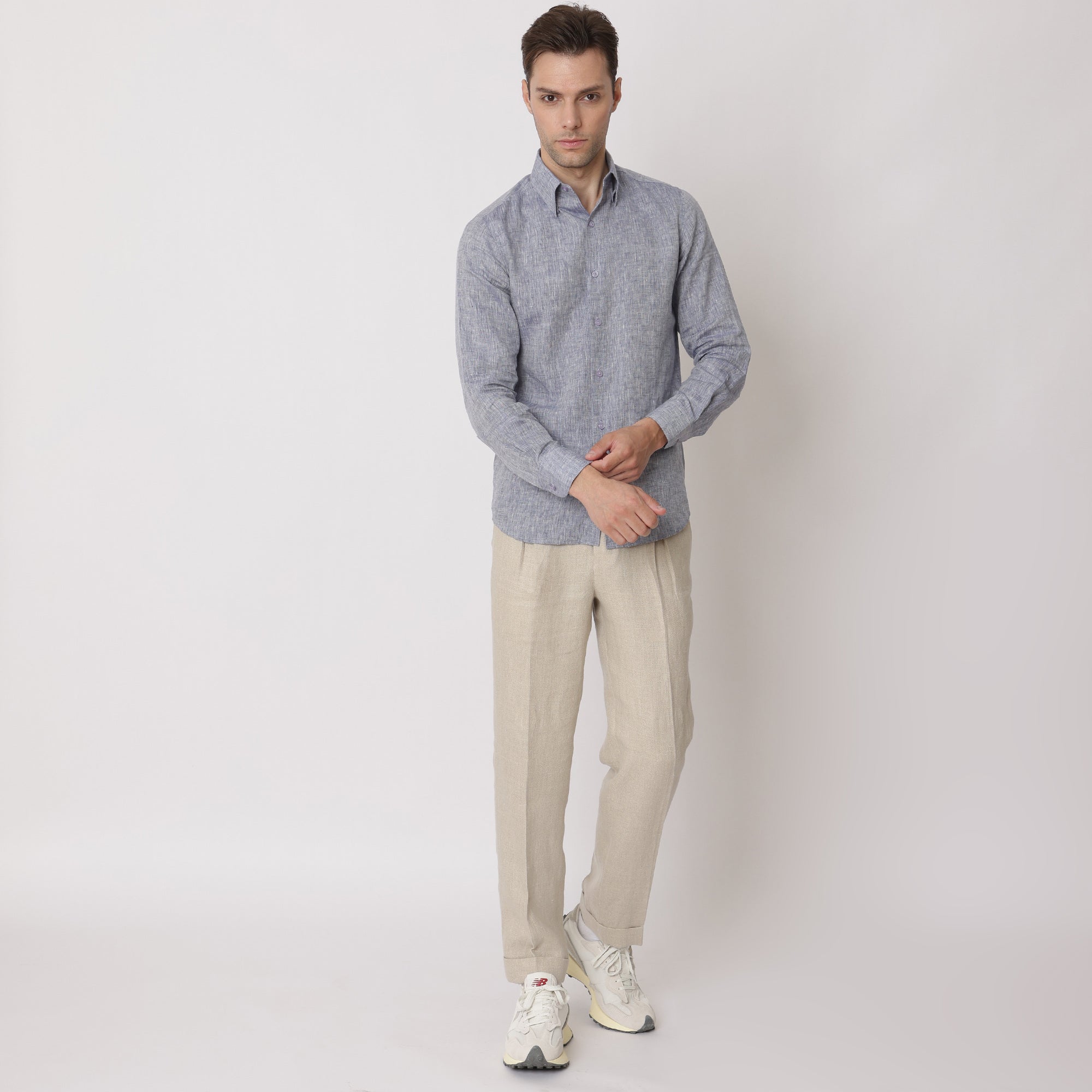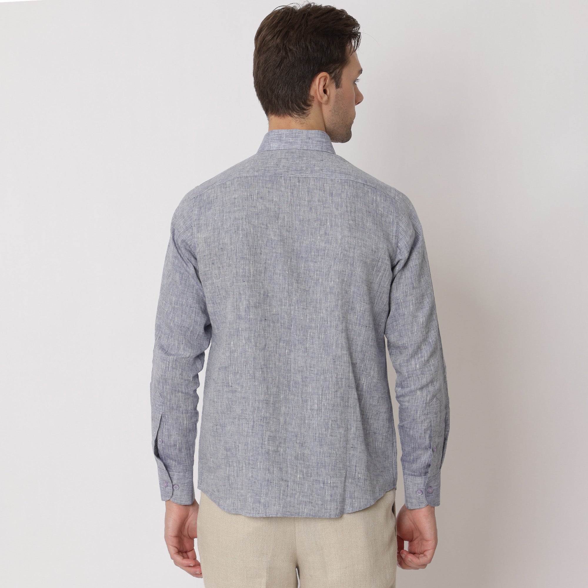 • أُوكَازيُون -50% قميص كتان نقي فاخر رمادي اللون، قصة كلاسيكية، صنع في الإمارات العربية المتحدة - D22007