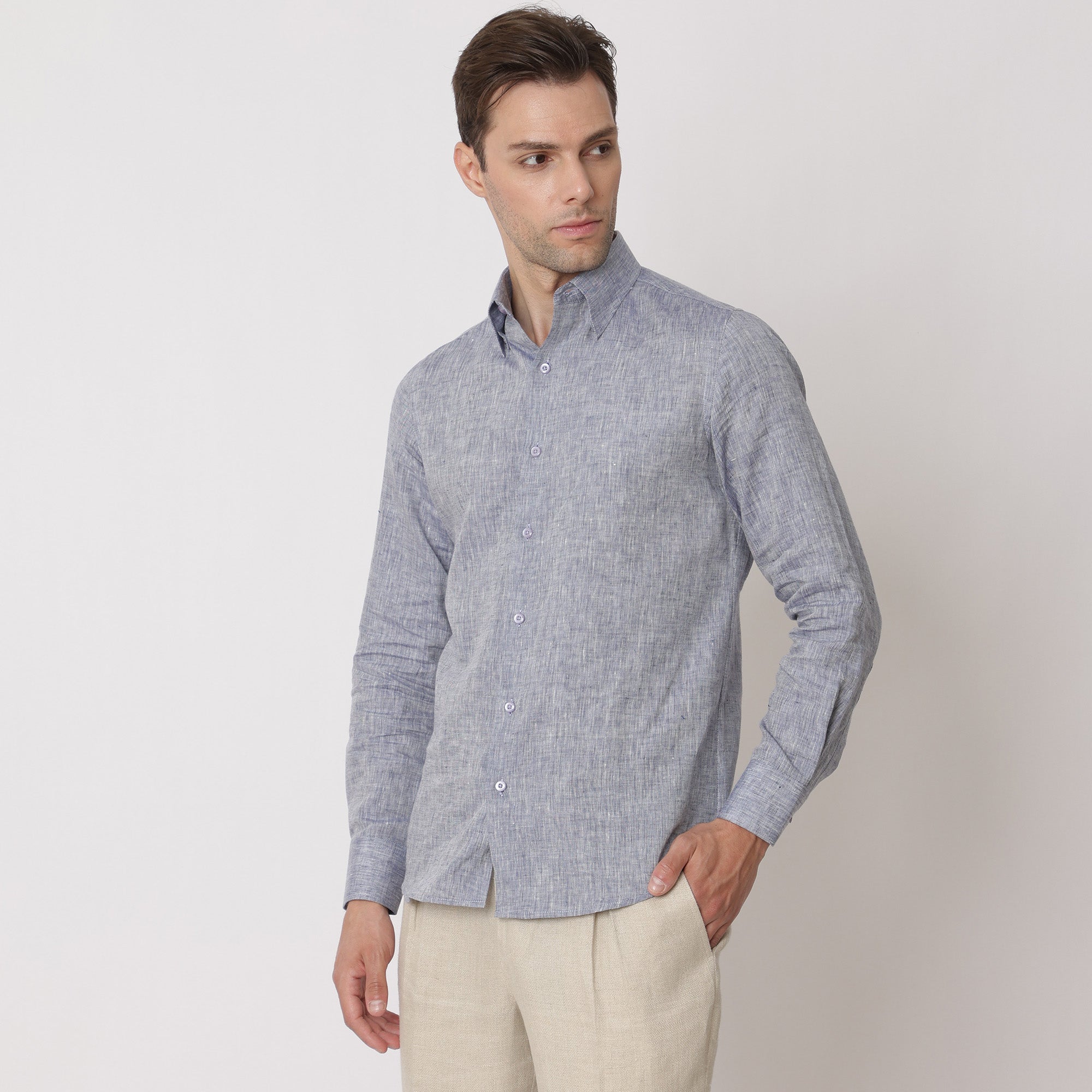 قميص كتان نقي فاخر رمادي اللون، قصة كلاسيكية، صنع في الإمارات العربية المتحدة - D22007