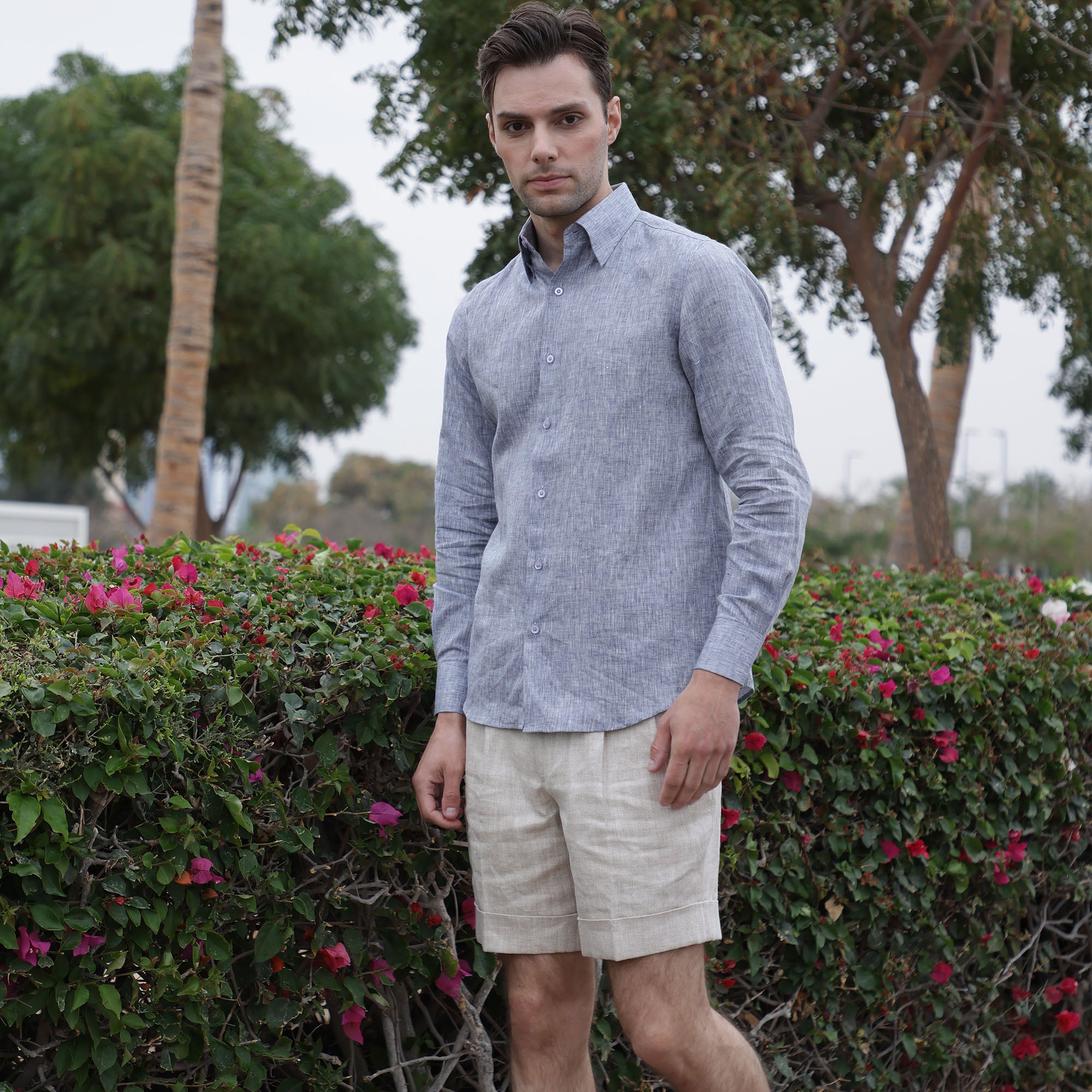 • قميص كتان نقي فاخر رمادي اللون، قصة كلاسيكية، صنع في الإمارات العربية المتحدة - D22007