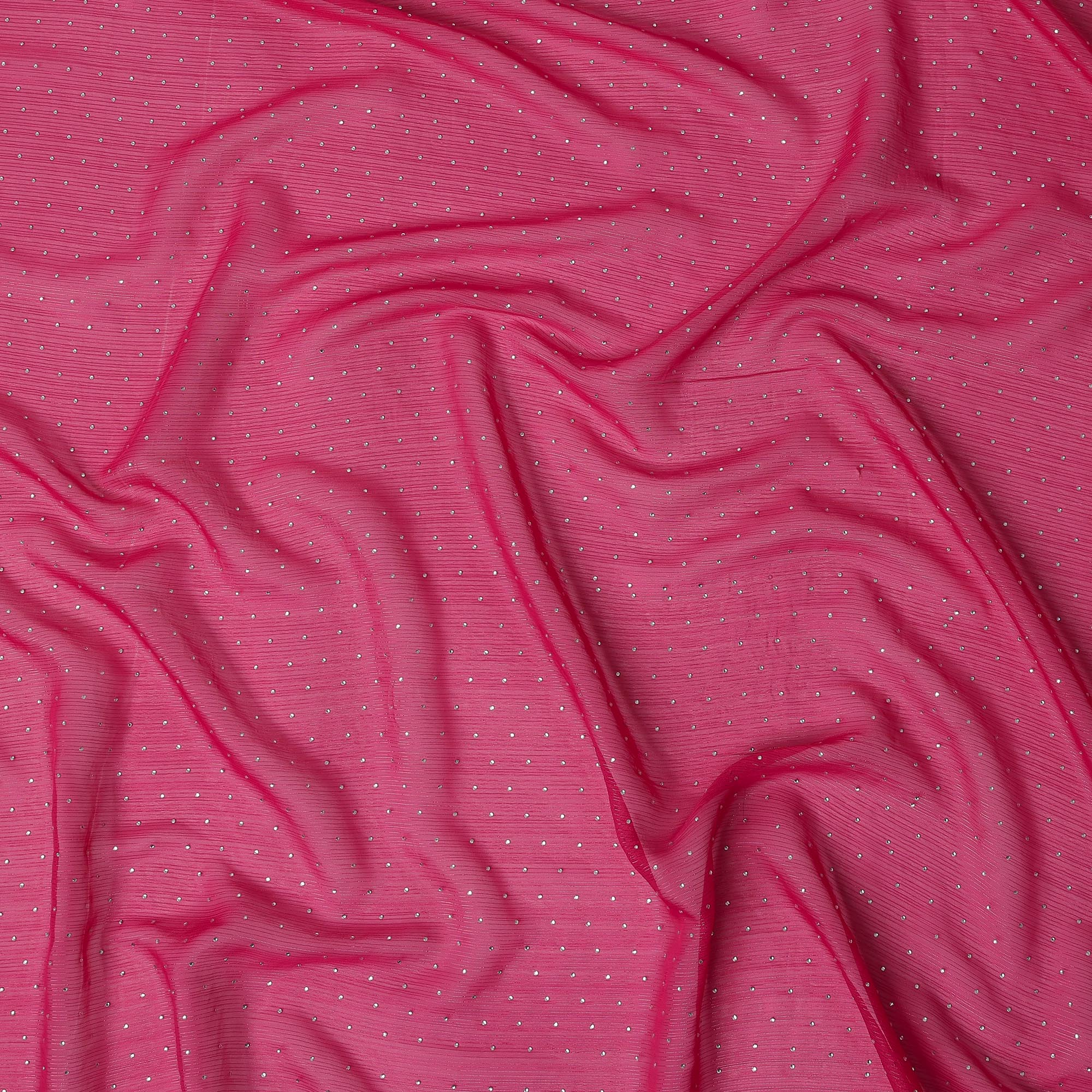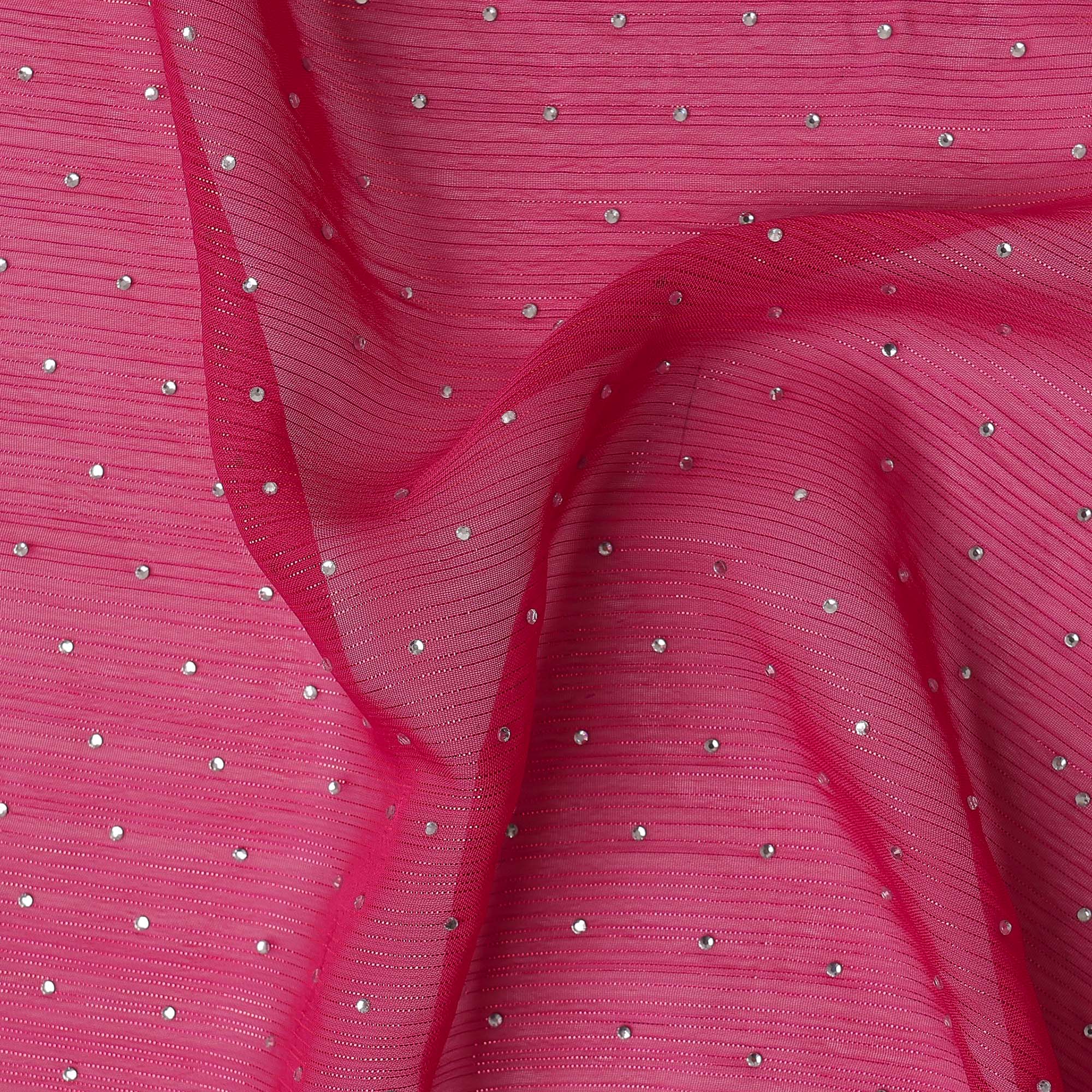 Hot Pink Synthetic Chiffon Traditional Sudanese Thobe with Stone Work, 4.5 Mtrs Piece, Width 110 Cms, Made in India-D26448