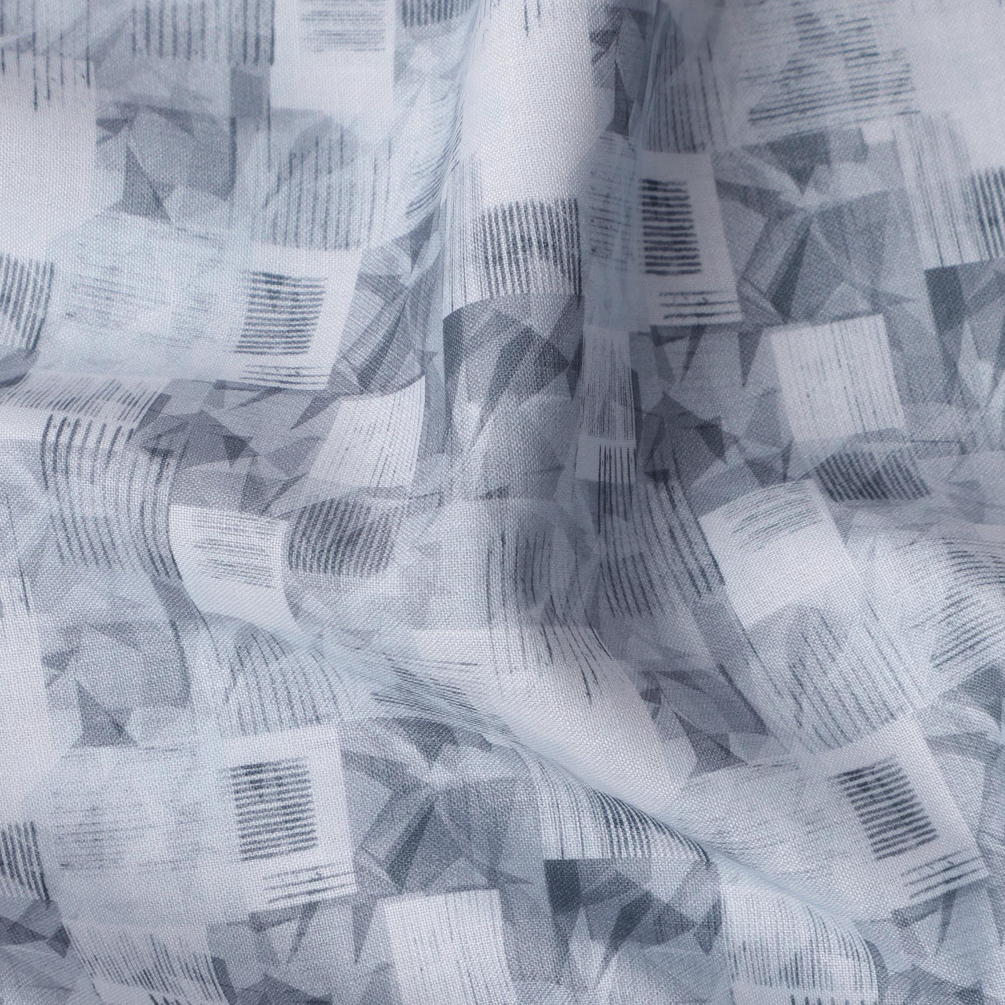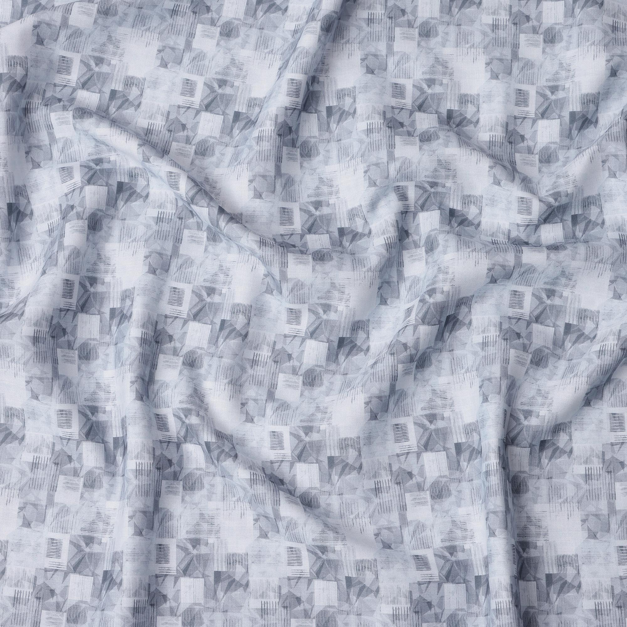 قماش كتان مخلوط بطبعة هندسية باللون الأزرق الجليدي، تصميم خطوط وأشكال تجريدية، عرض 140 سم، صنع في الهند - D23222