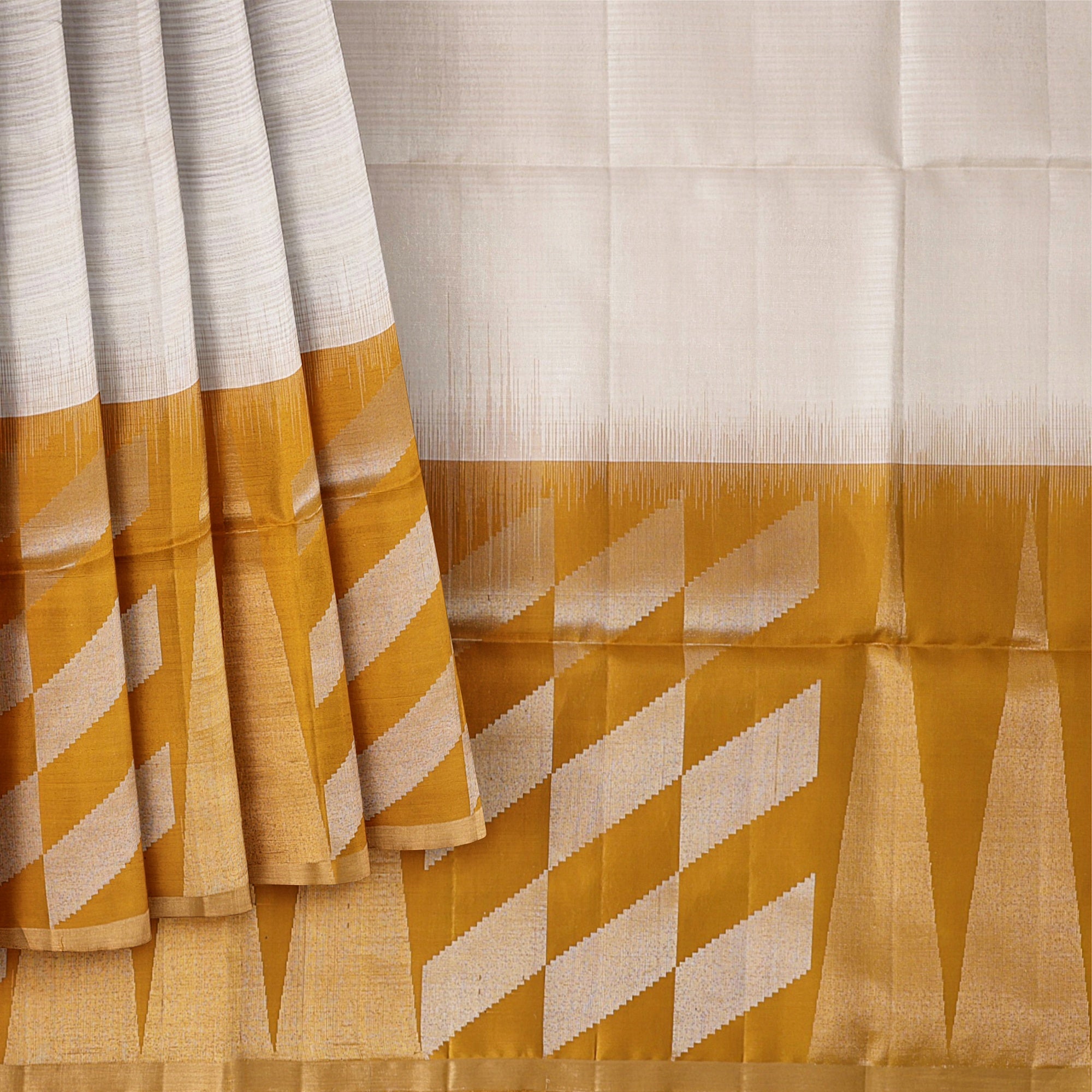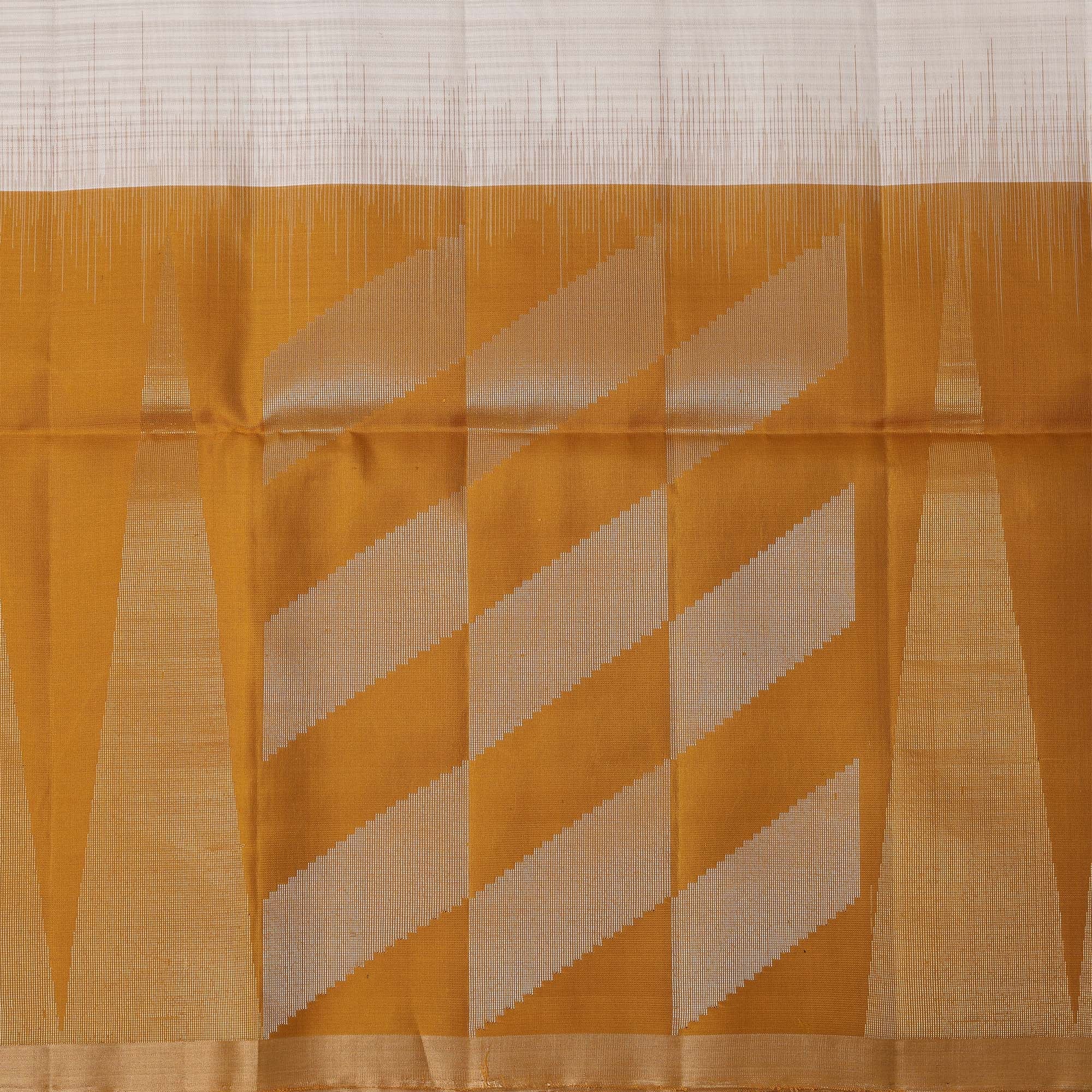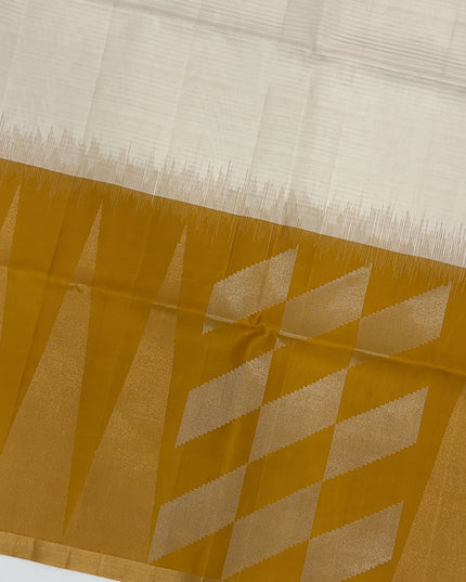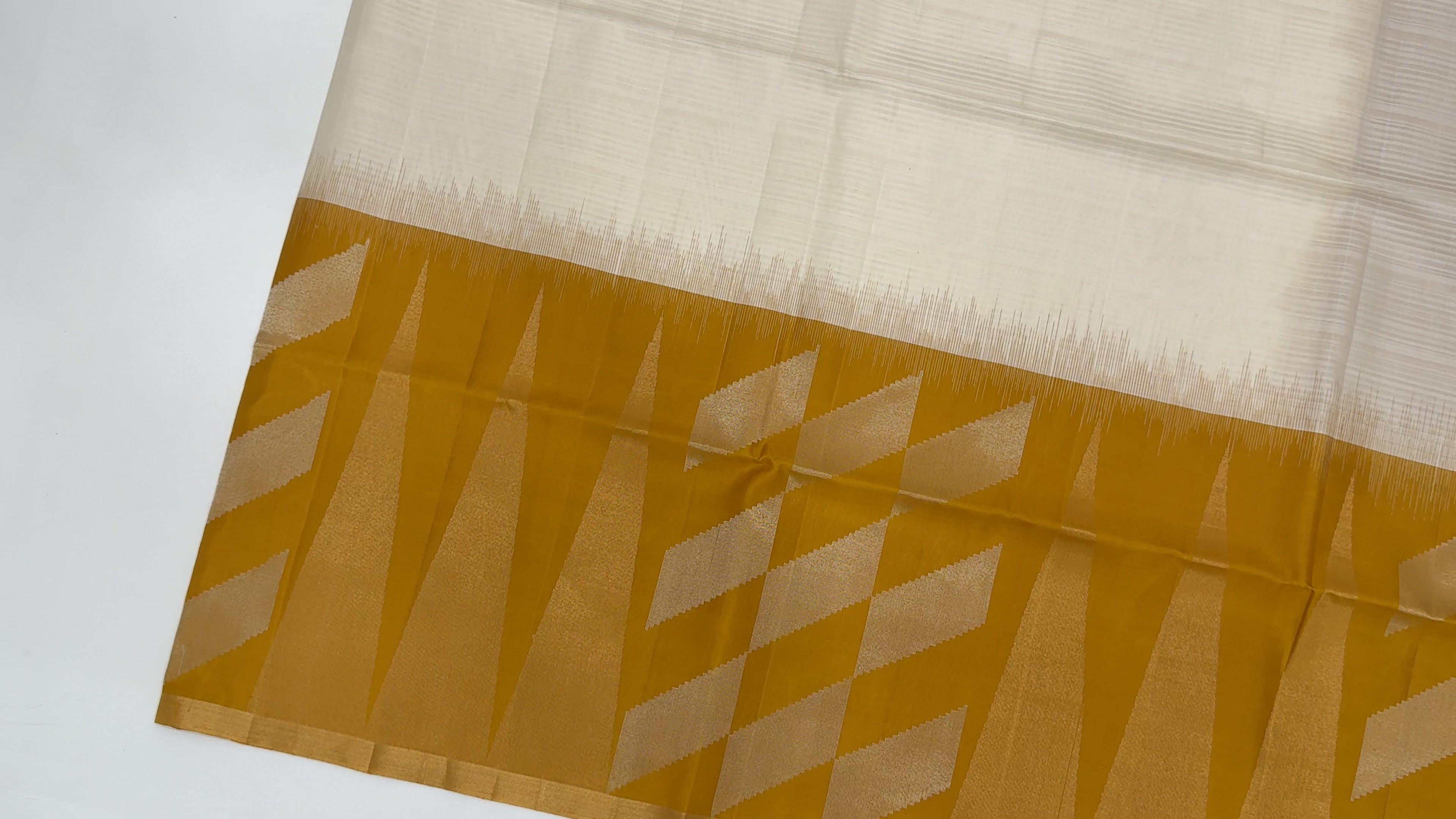 ساري زاري بالو الهندسي باللون العاجي والخردلي من الحرير الخالص الناعم مع حافة ذهبية، 5.5 متر مع قطعة بلوزة، أصله من الهند - D22683