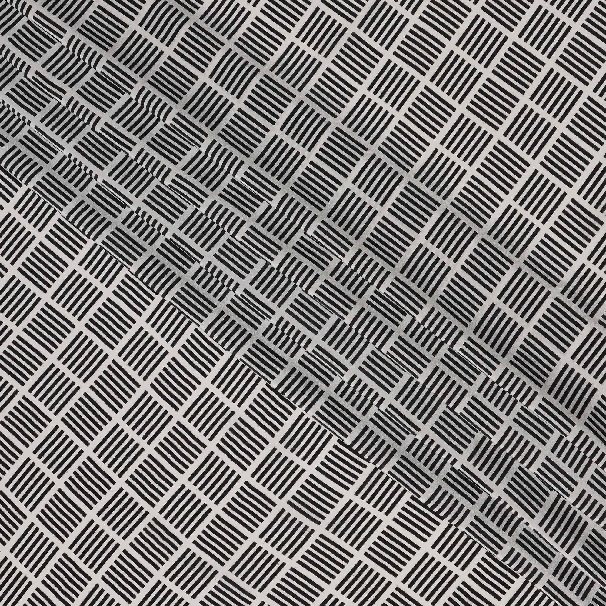 هذا القماش الكريب الحريري الخالص ذو القاعدة العاجية والخطوط السوداء المطبوعة على شكل صندوق هو مزيج فني من الأناقة الدقيقة... اقرأ أكثر اقرأ أكثر