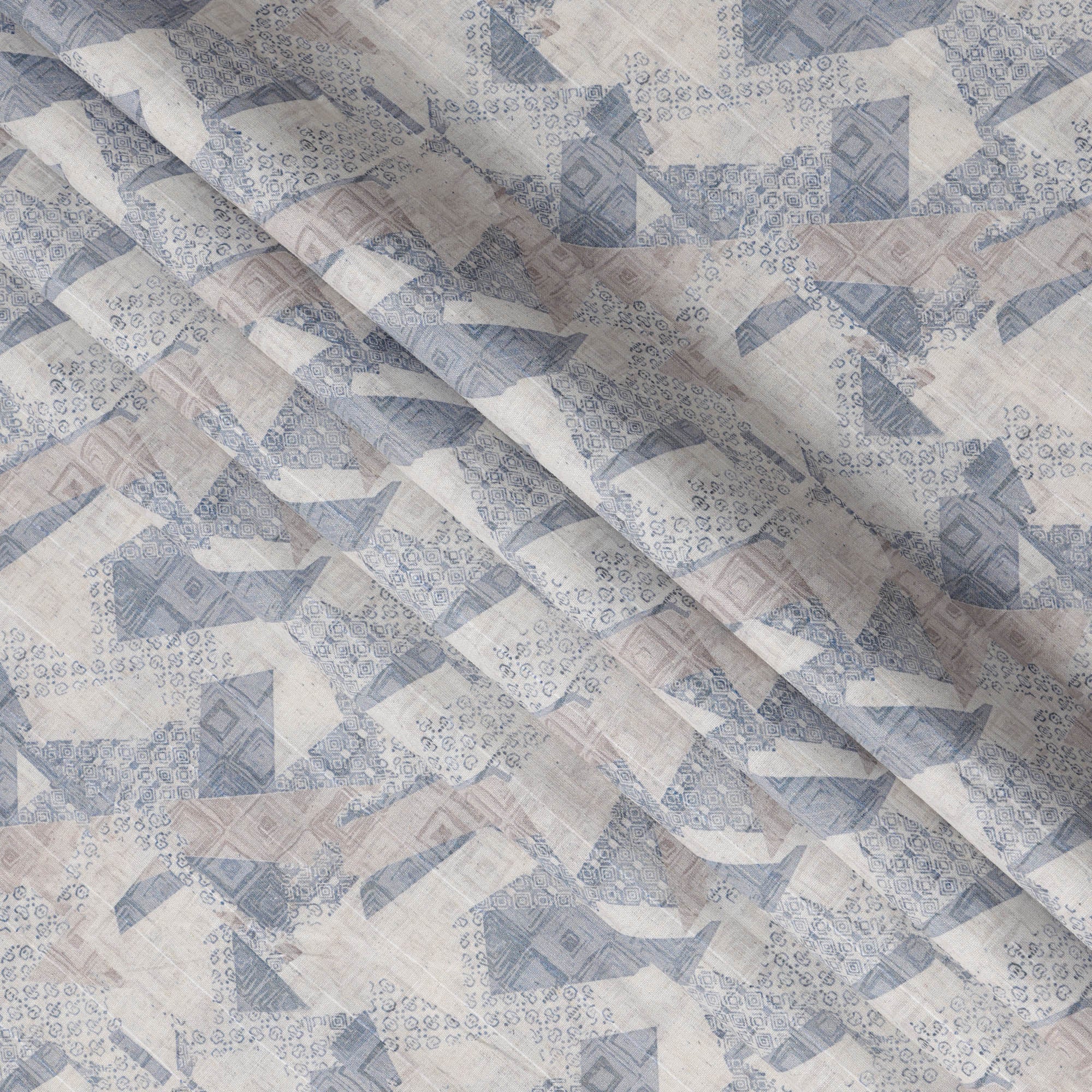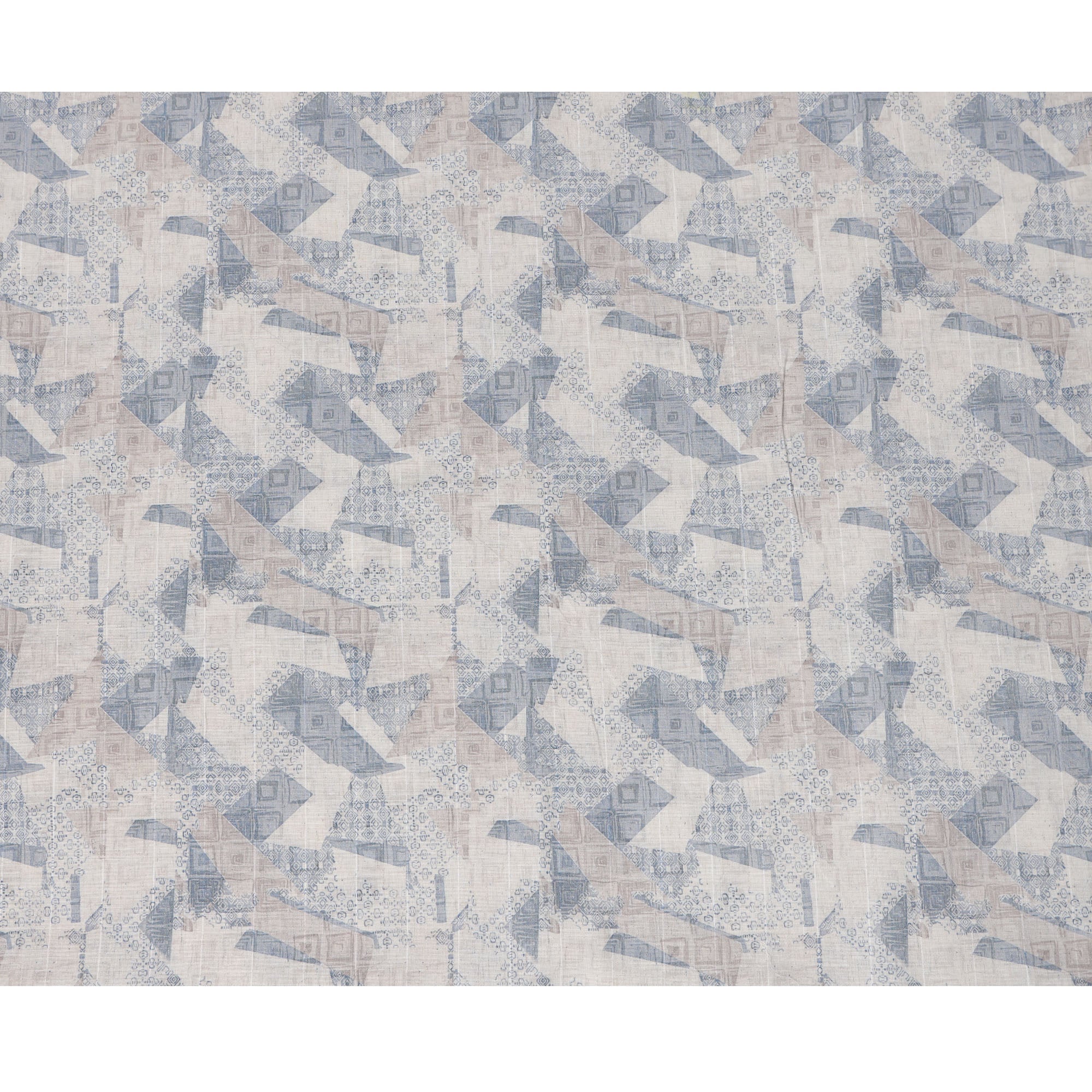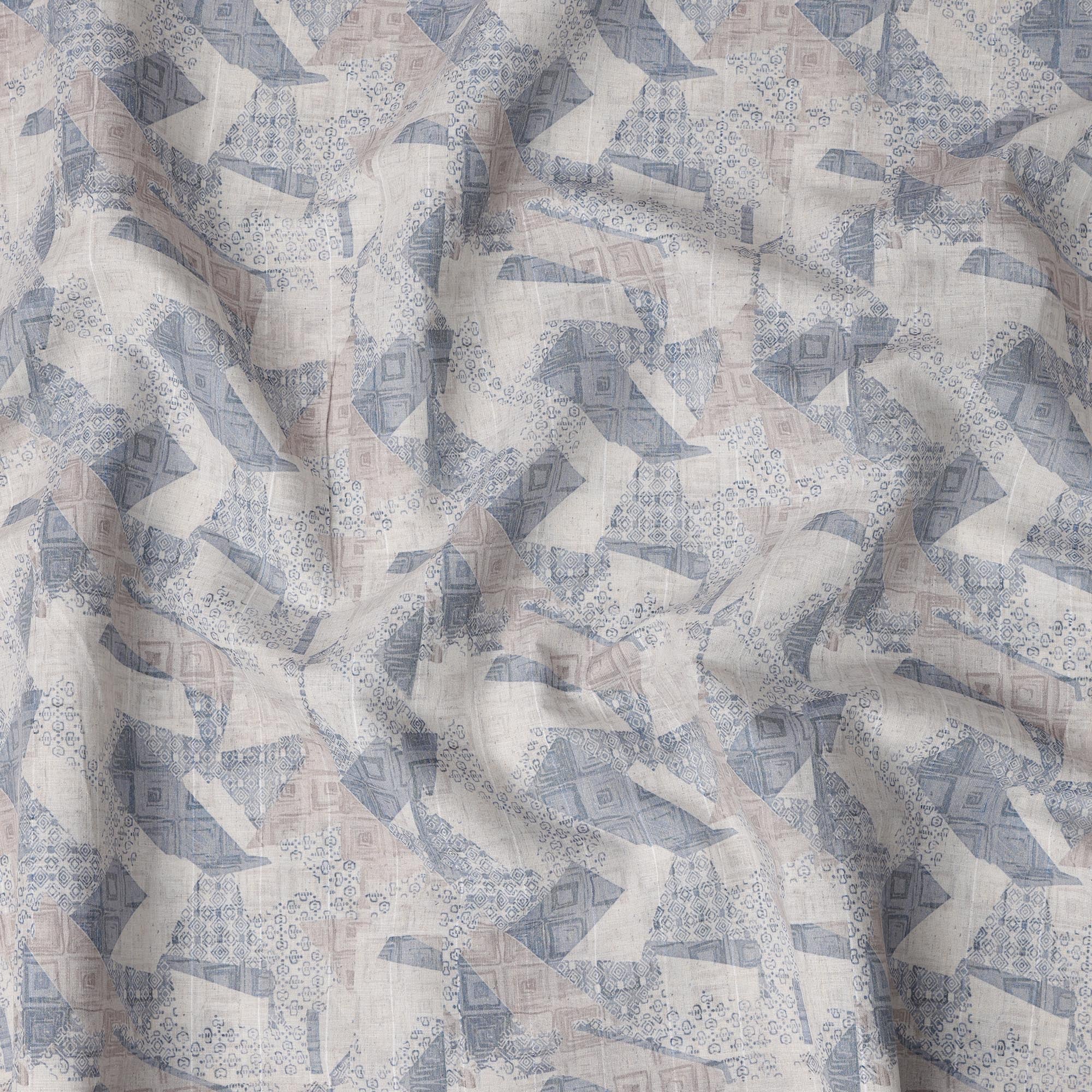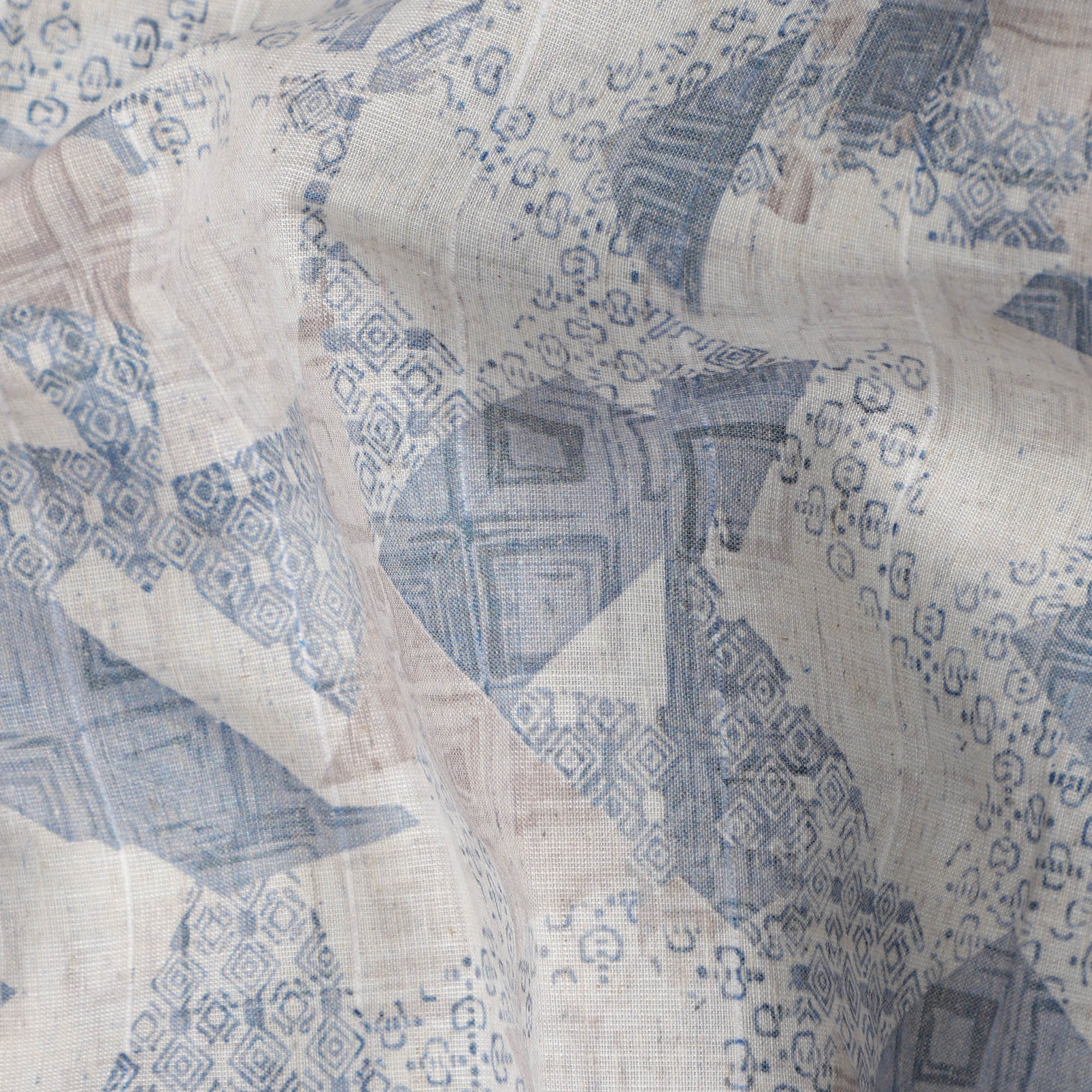 قماش كتان مخلوط مطبوع بنقش تجريدي باللون الأزرق العاجي - عرض 140 سم، صنع في الهند، يُباع بالمتر - D23081