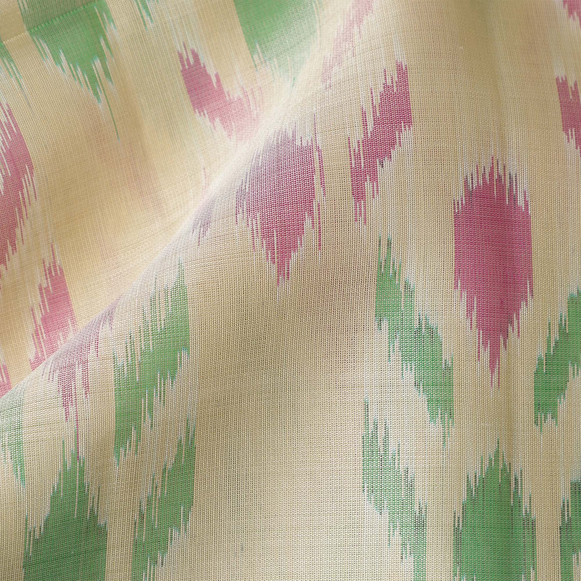 قاعدة من الحرير العاجي مع طبعات ناعمة متعددة الألوان مستوحاة من الإيكات