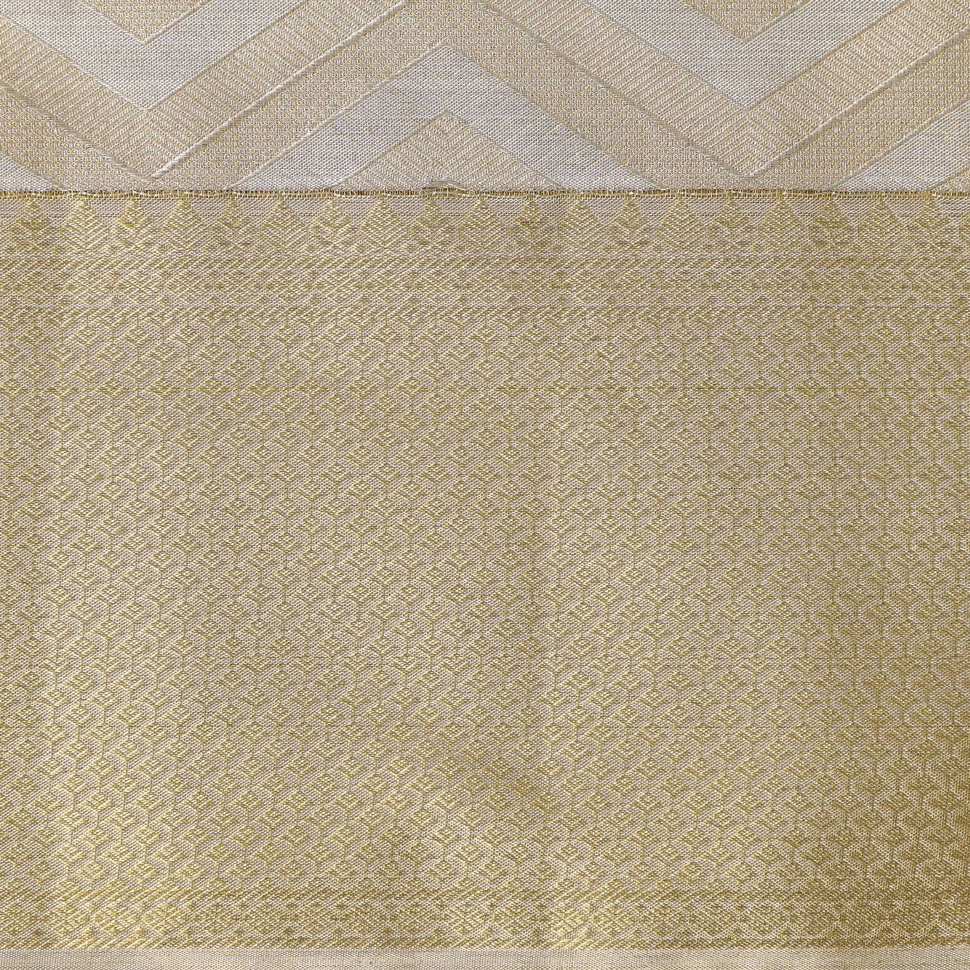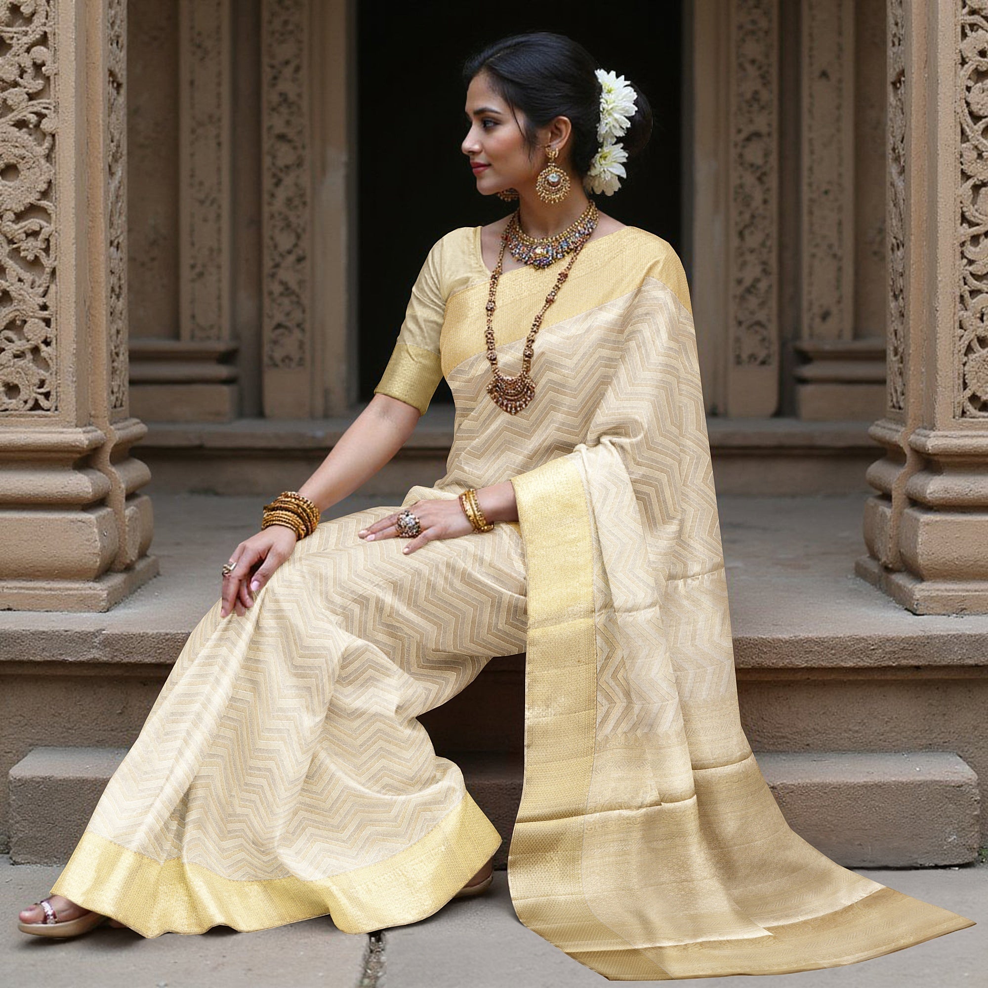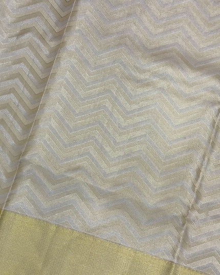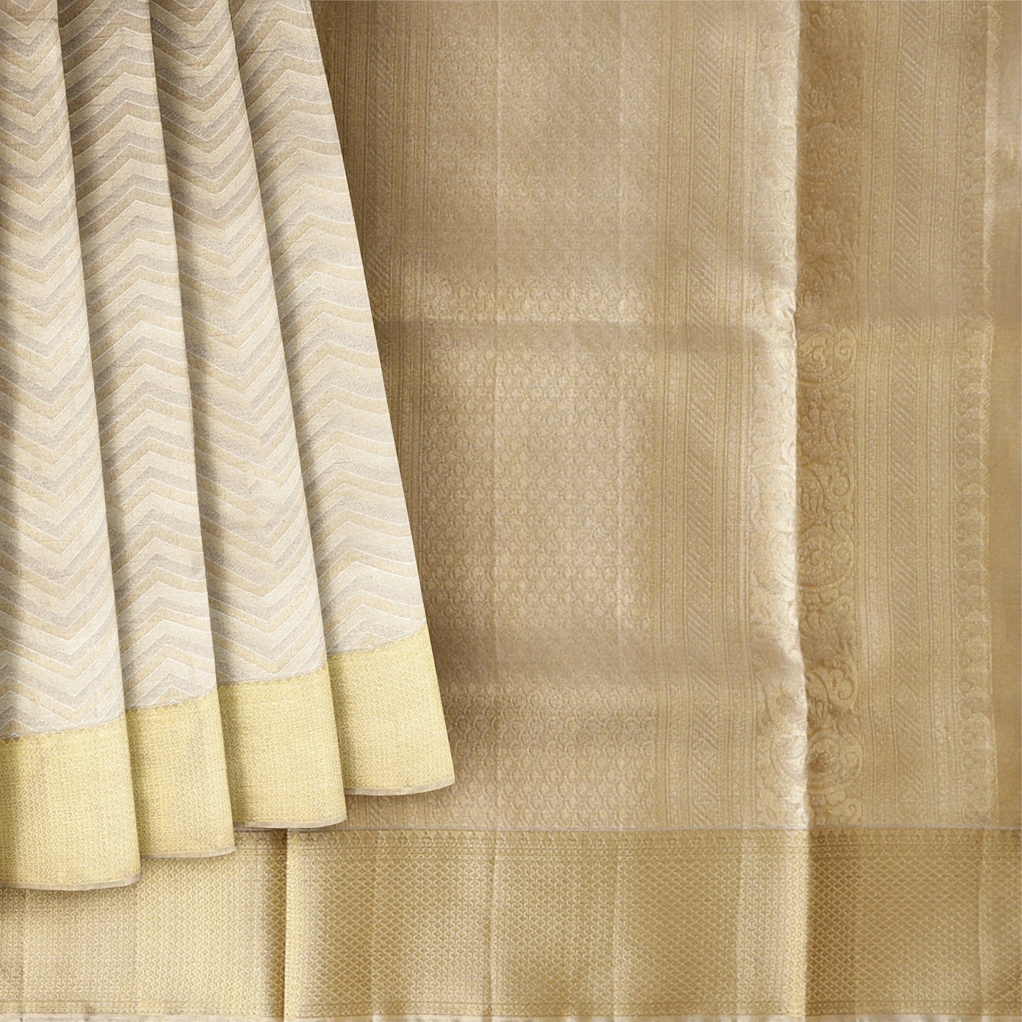 ساري كانجيفارام من الحرير الخالص، منسوج يدويًا من قماش زاري بلون كريمي عاجي، بطول 5.5 متر مع بلوزة، من الهند - D22736