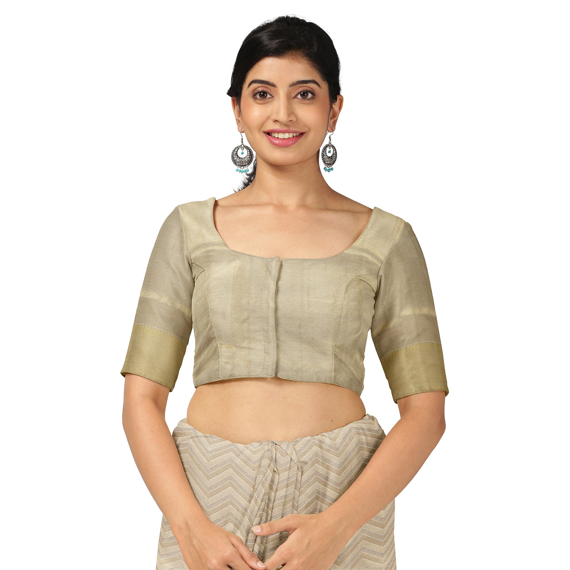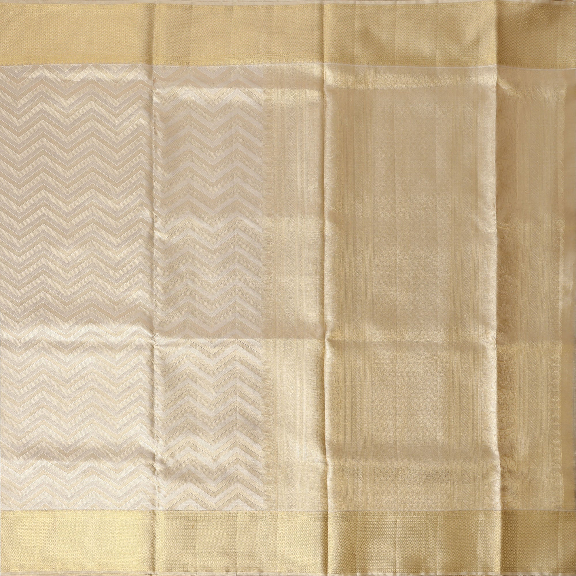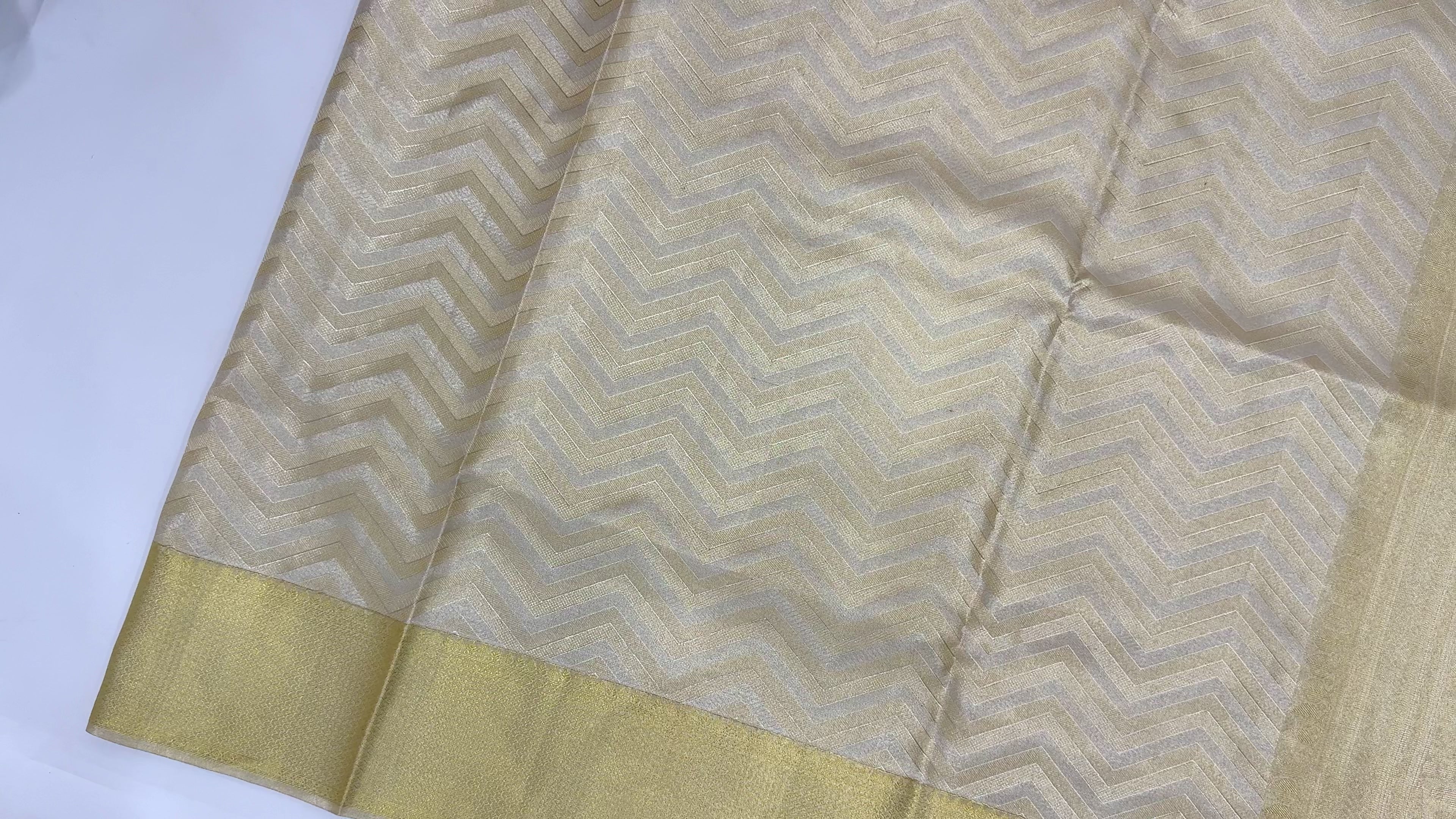 ساري كانجيفارام من الحرير الخالص، منسوج يدويًا من قماش زاري بلون كريمي عاجي، بطول 5.5 متر مع بلوزة، من الهند - D22736