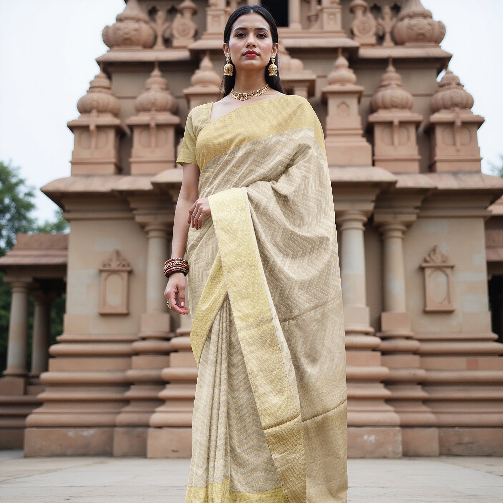 قاعدة من الحرير بلون كريمي عاجيّ مع نسج زاري شيفرون أنيق