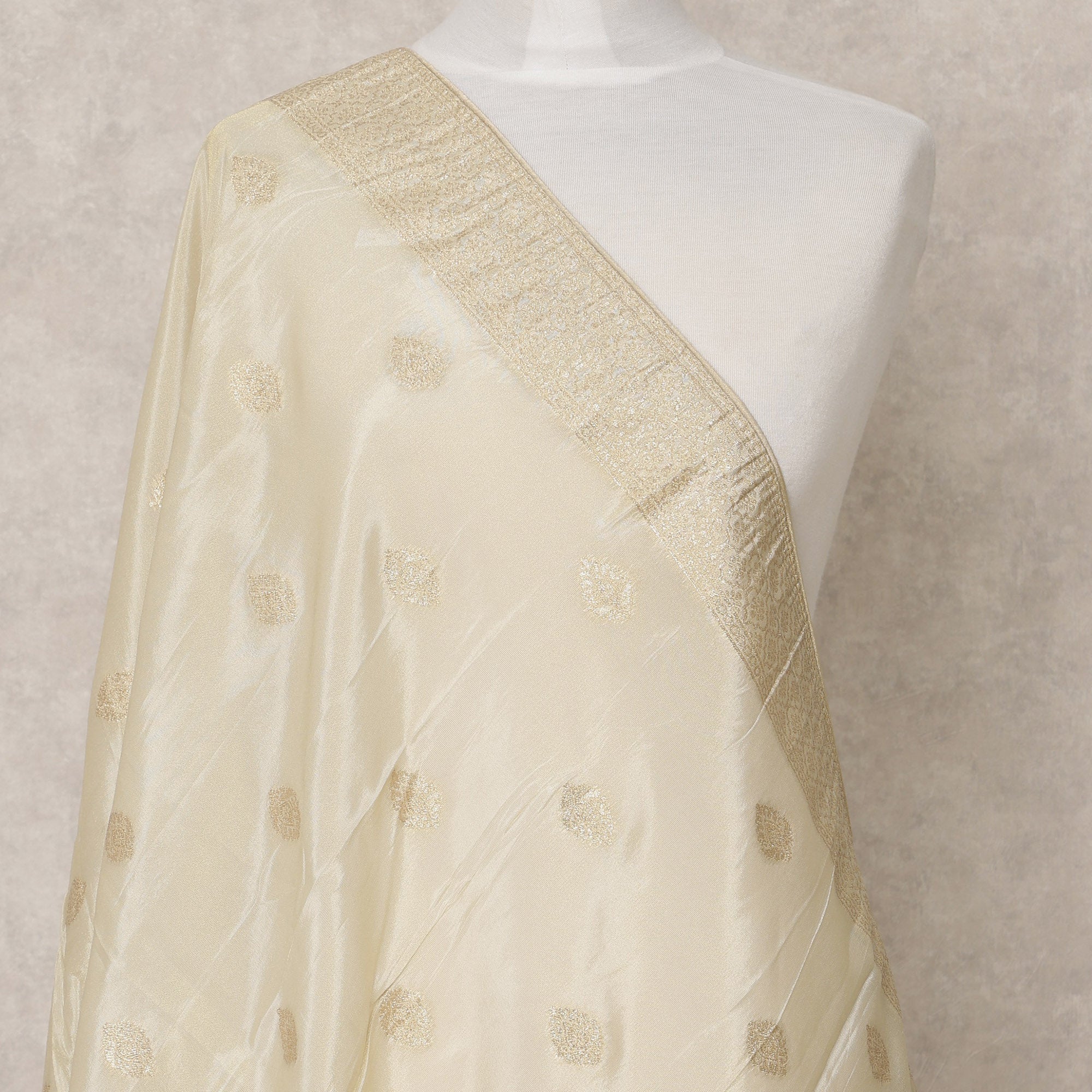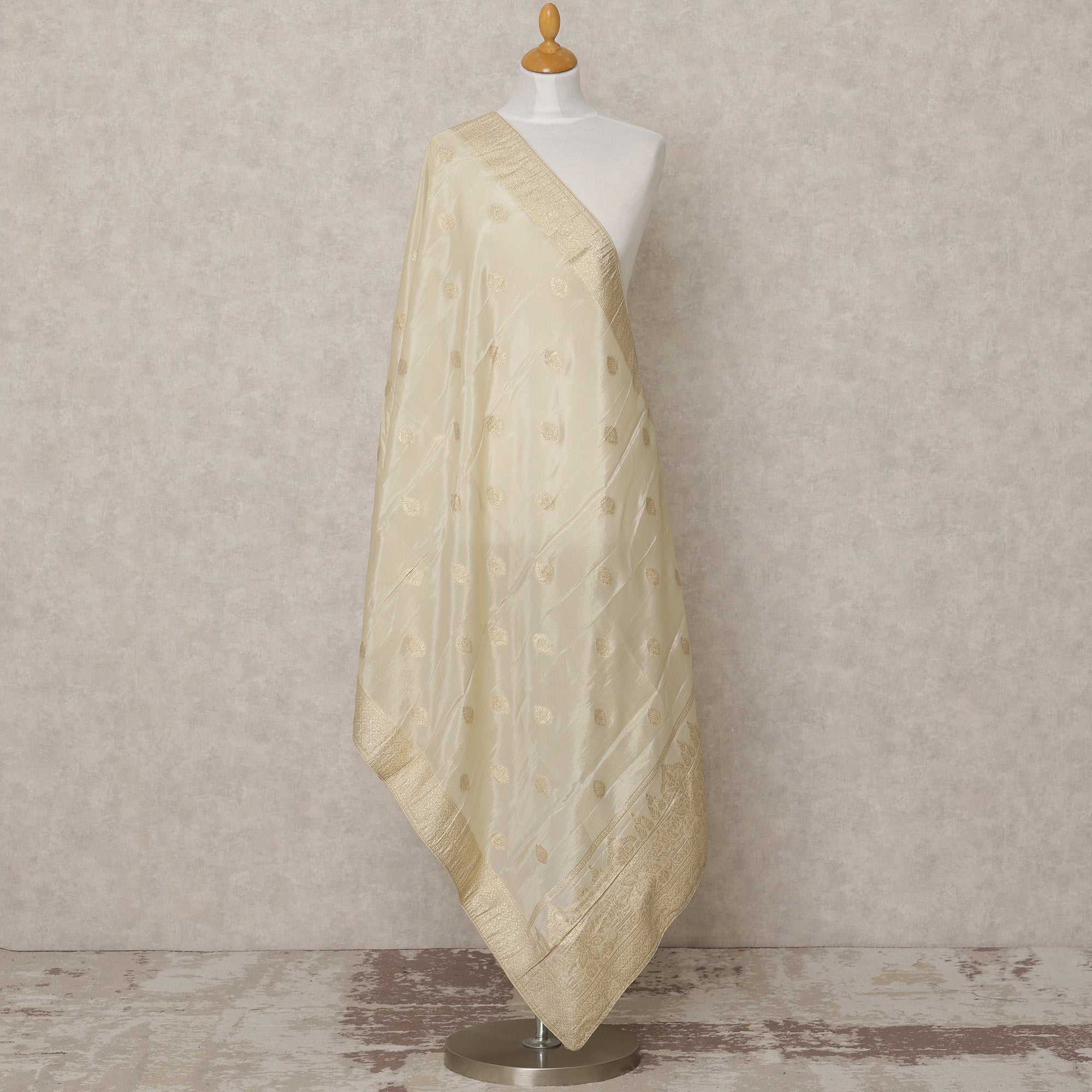 دوباتا من قماش بروكيد صناعي باللون الذهبي العاجي مع زخارف نباتية وحواف عريضة، 210 × 80 سم، صنع في الهند - D24114
