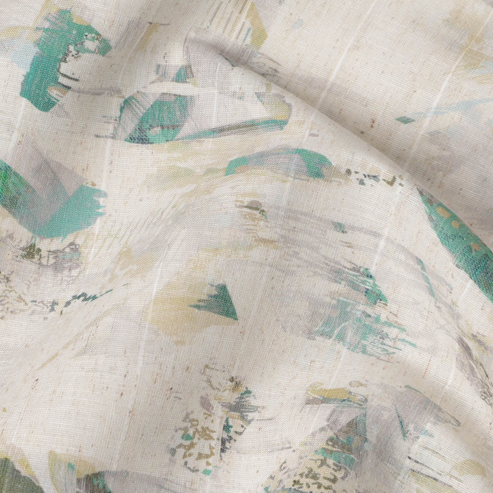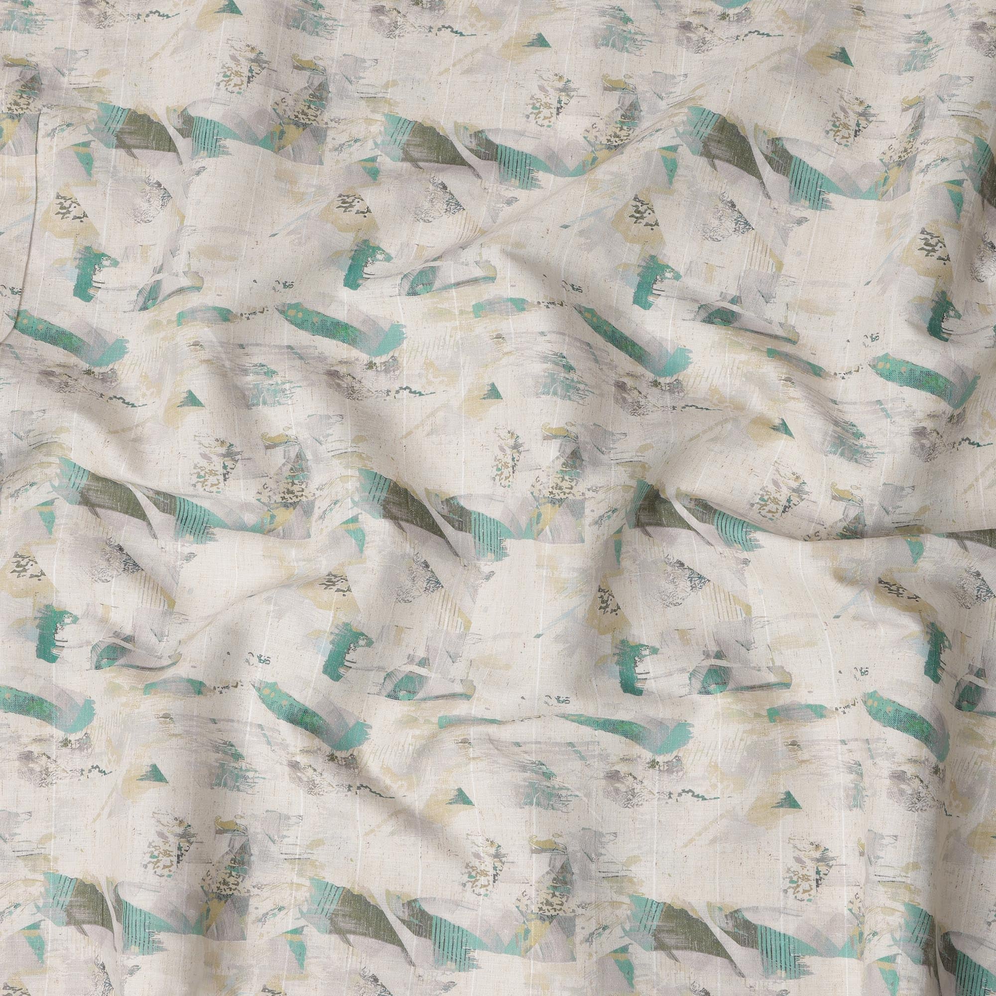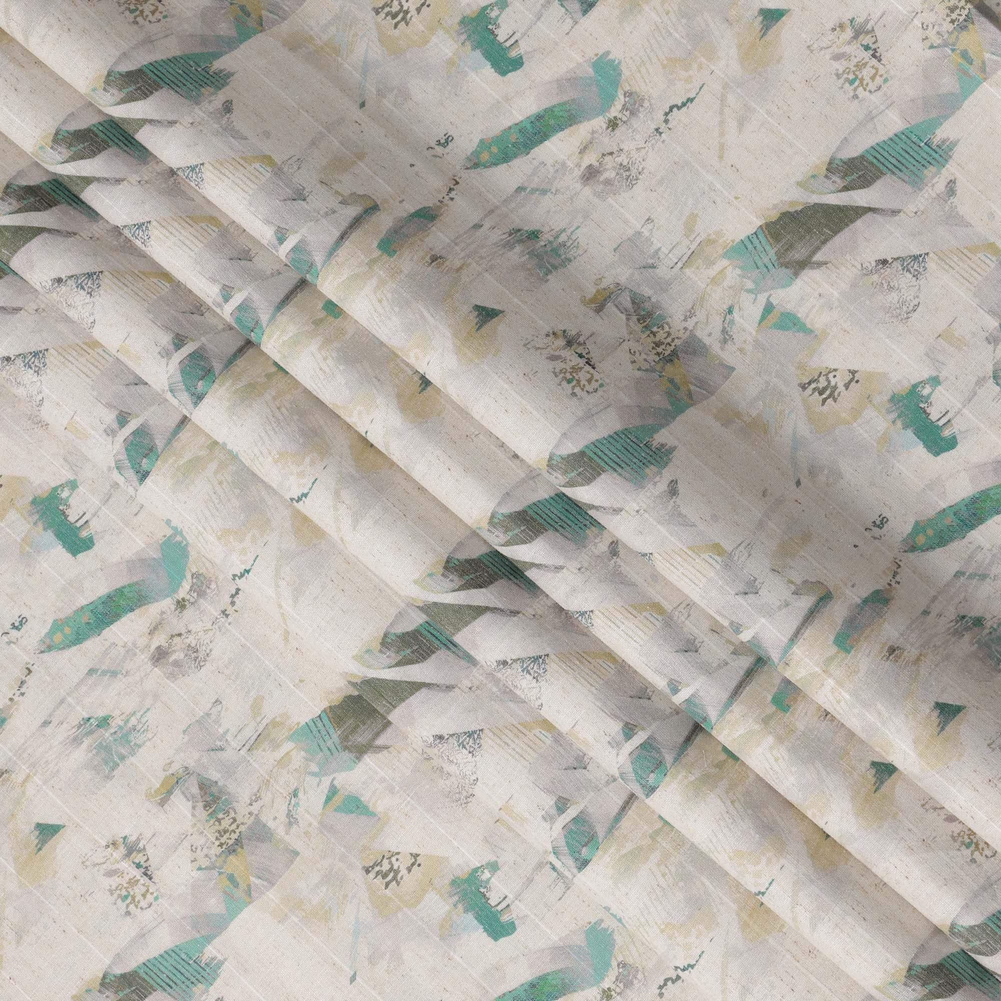 قماش كتان مخلوط عاجي مطبوع بنقش تجريدي متعدد الألوان - عرض 140 سم، صنع في الهند، يُباع بالمتر - D23078