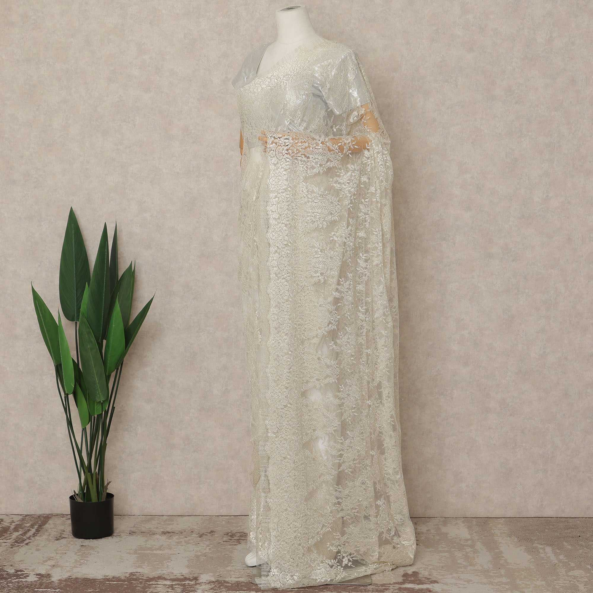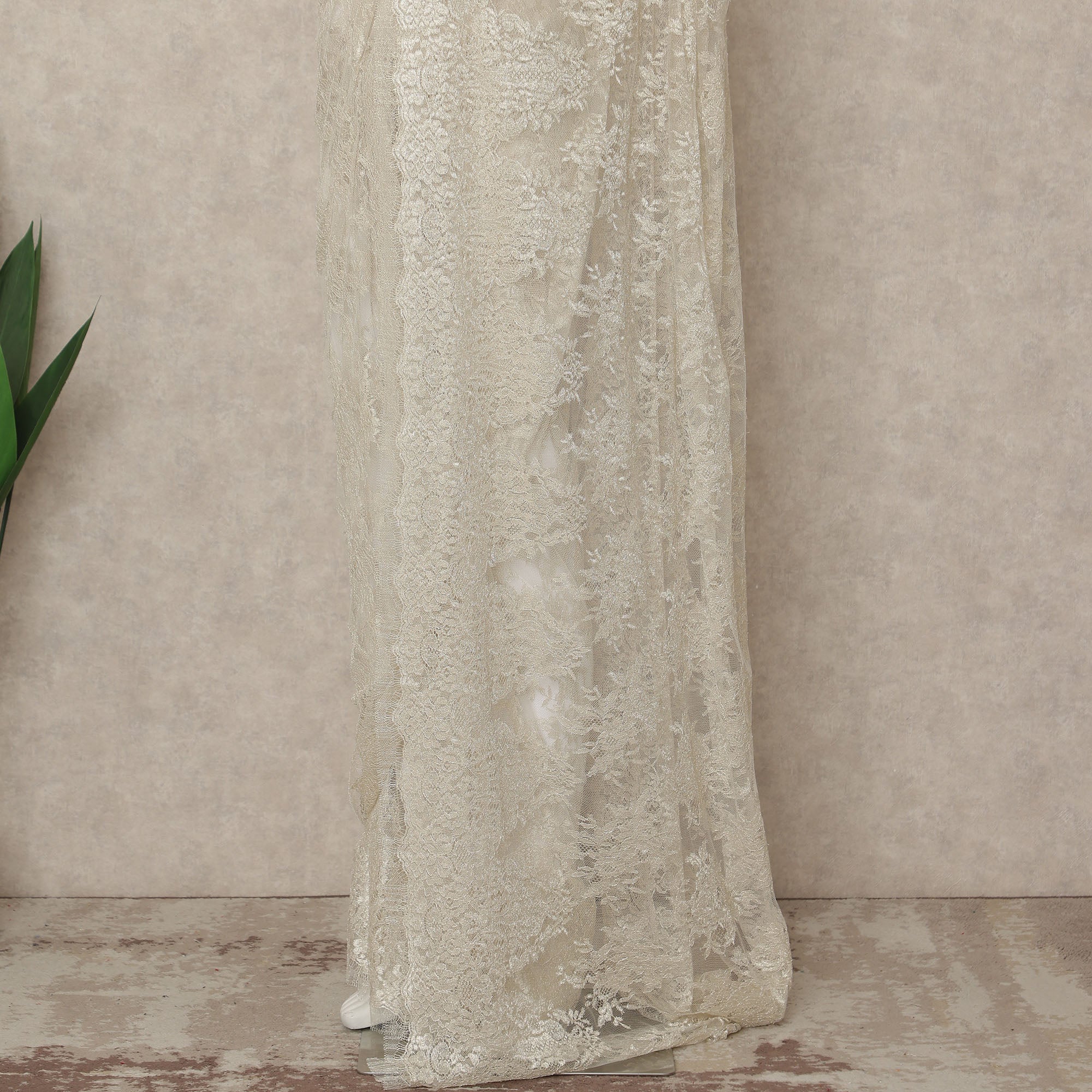 Ivory Premium French Metallic Chantilly Saree Lace 5.5 Mtrs 110 Cms Width France-D27764