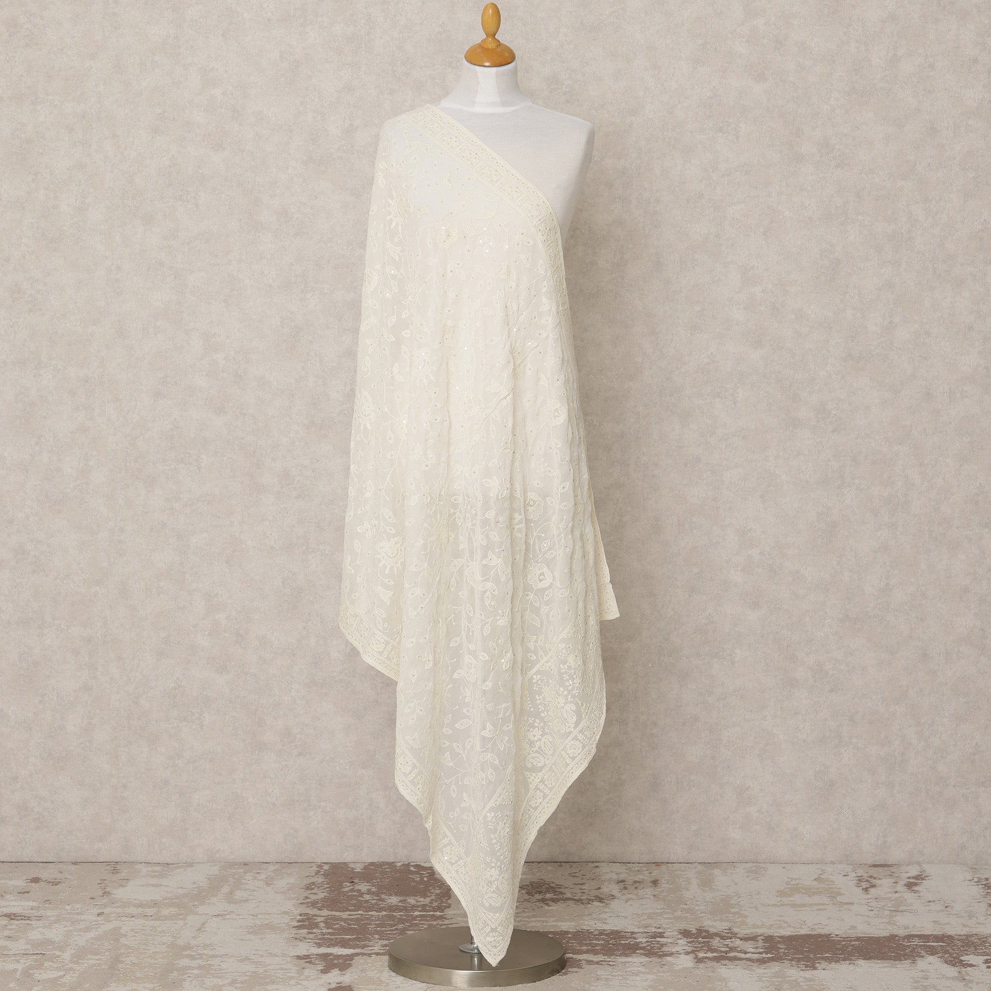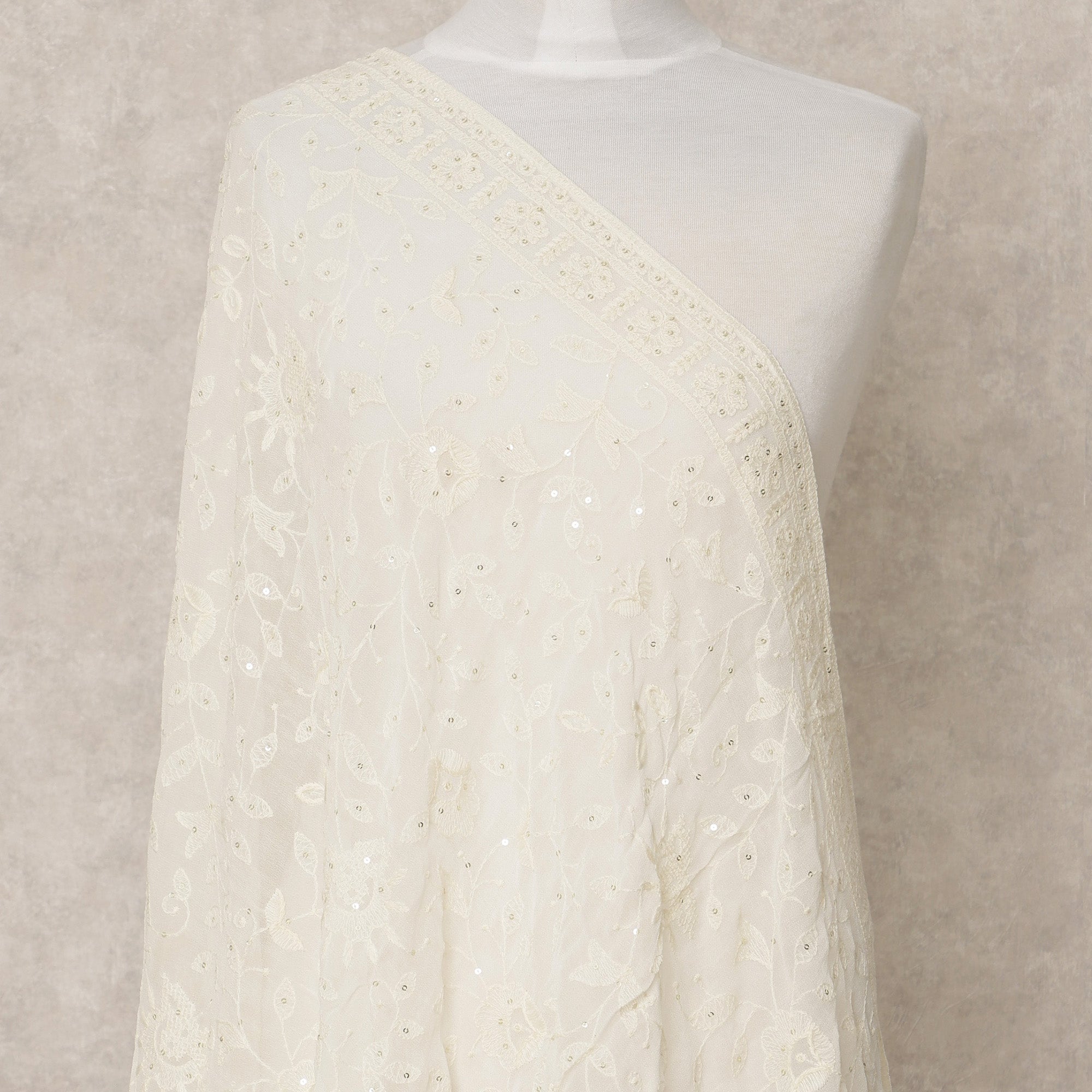 دوباتا جورجيت صناعي أبيض عاجي مطرز، 210 × 80 سم، صنع في الهند - D24095