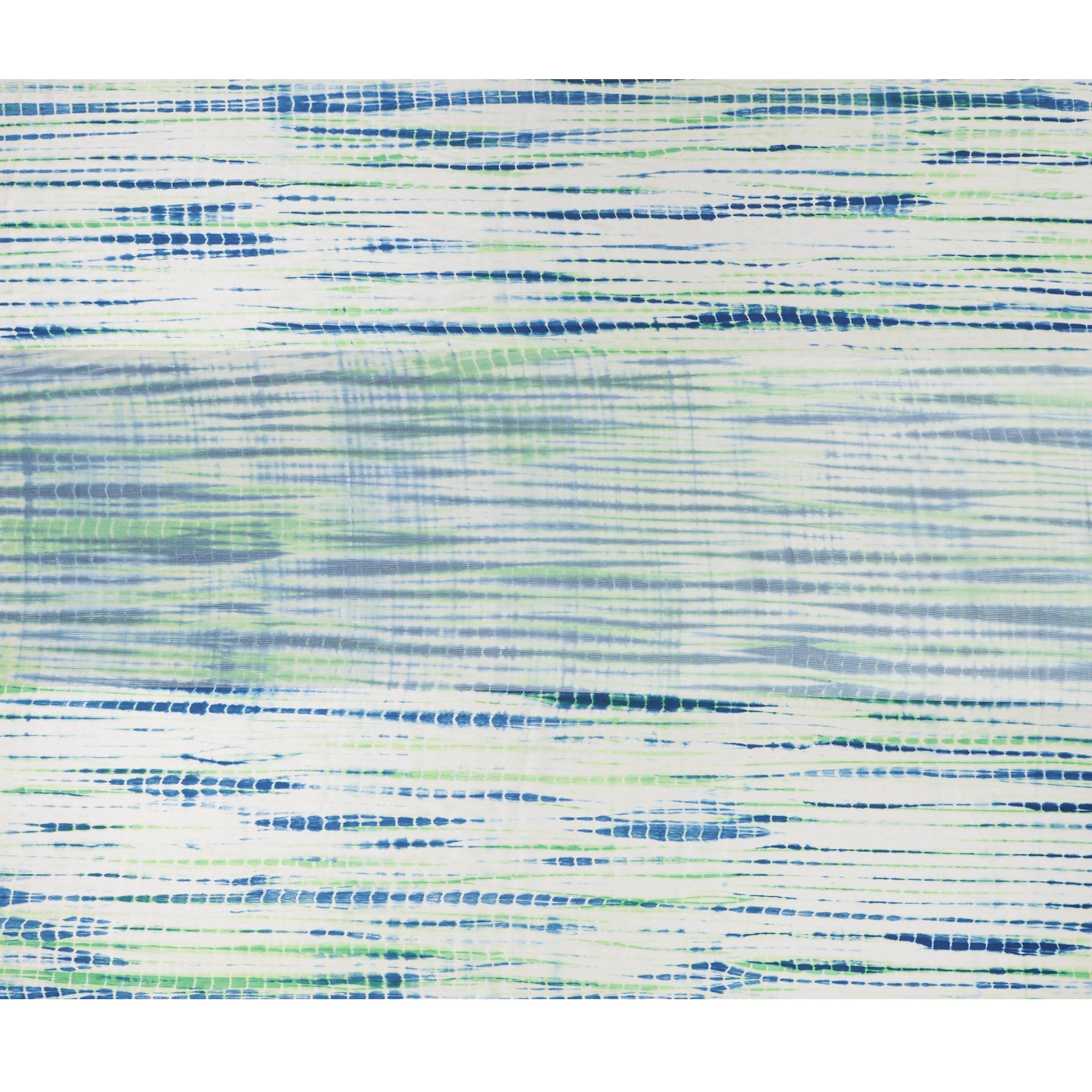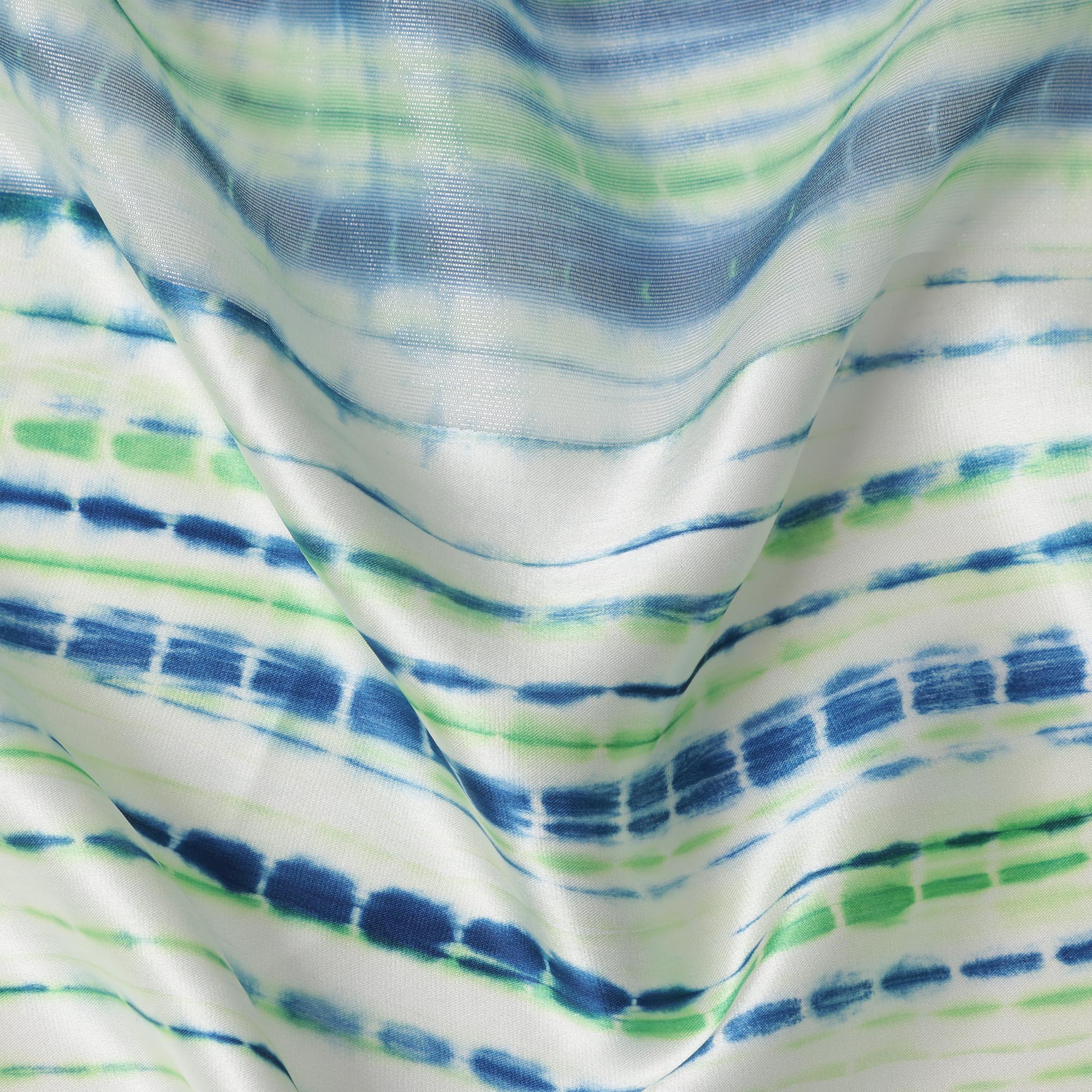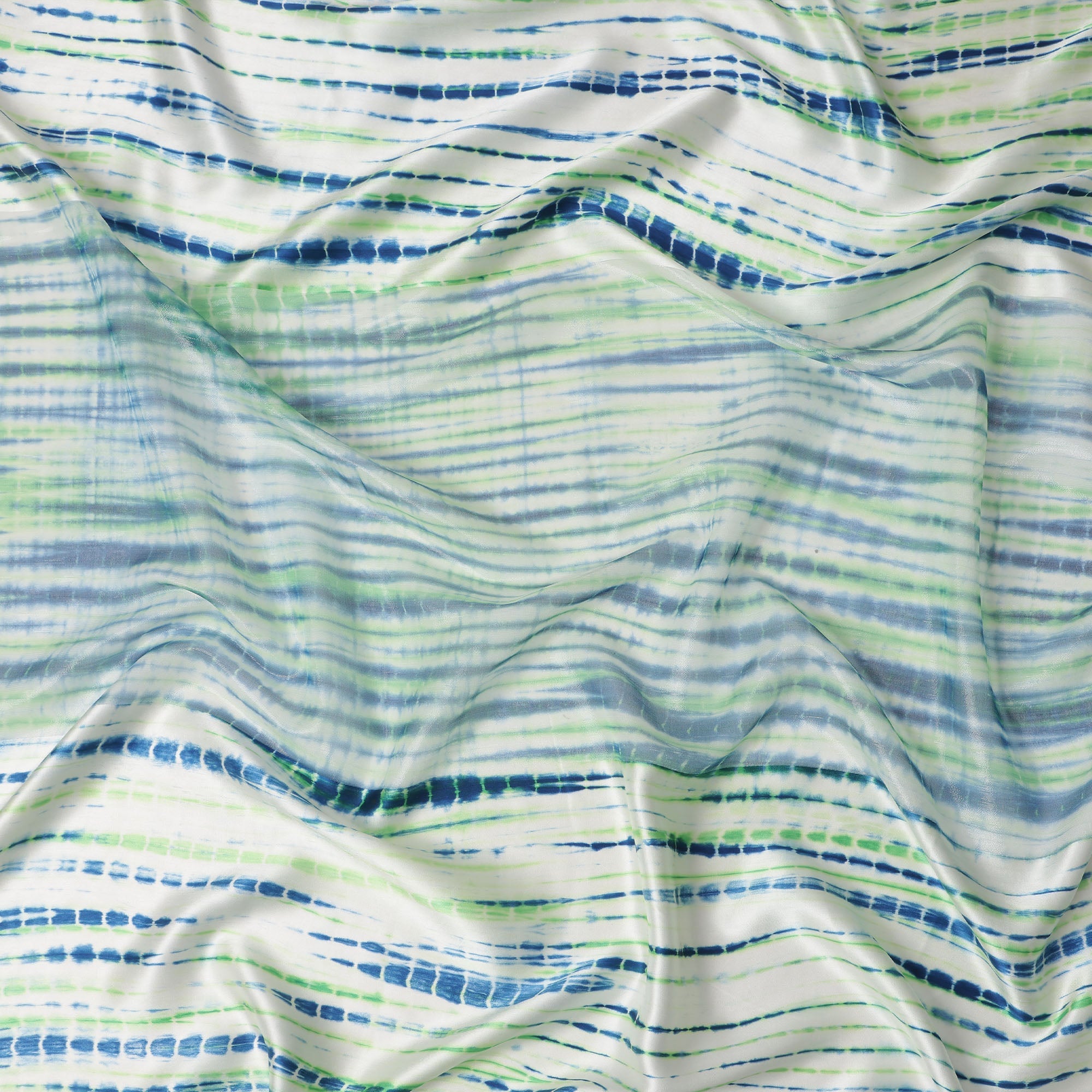 ساتان حريري عاجي بنمط خطوط زرقاء وخضراء مستوحاة من شيبوري